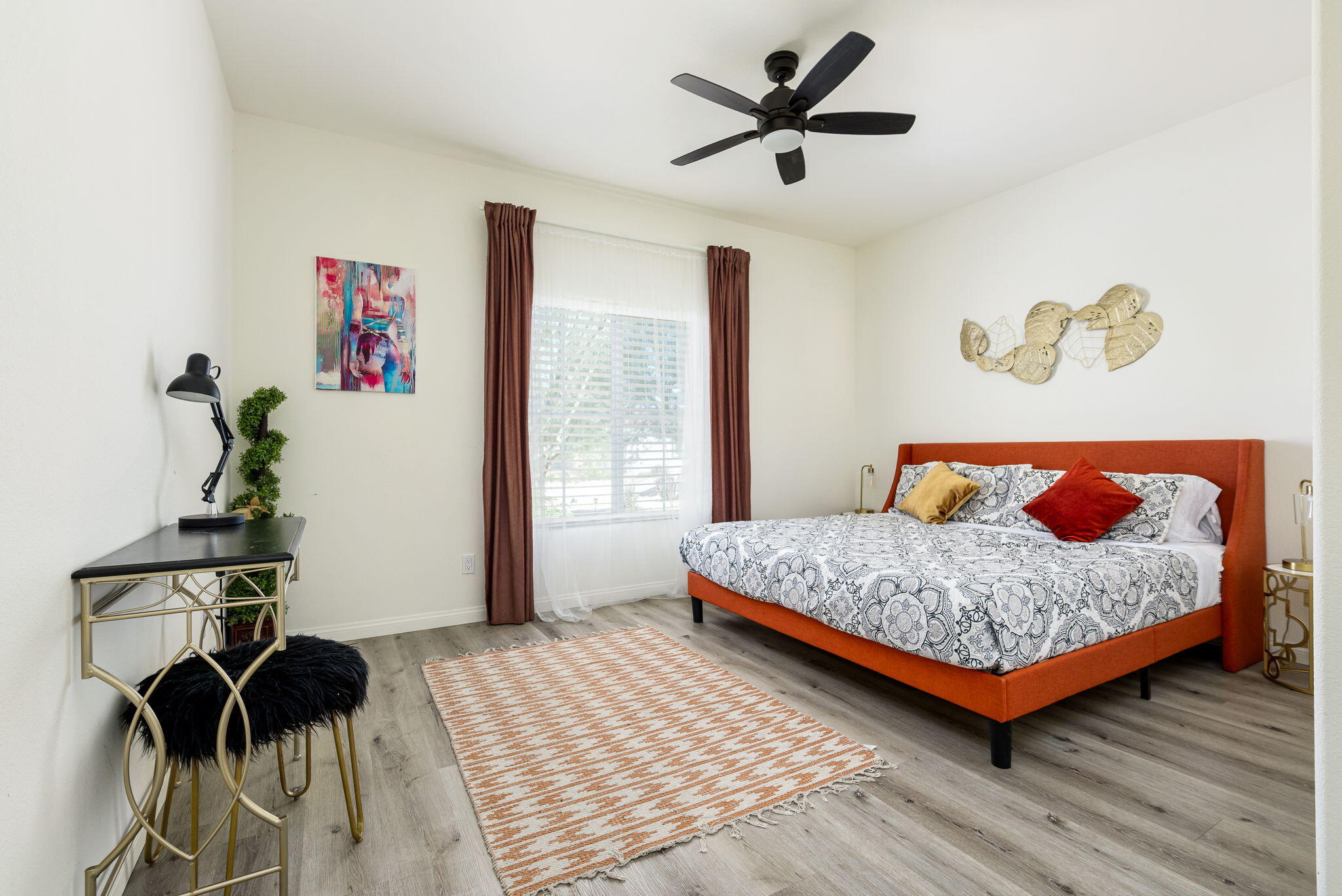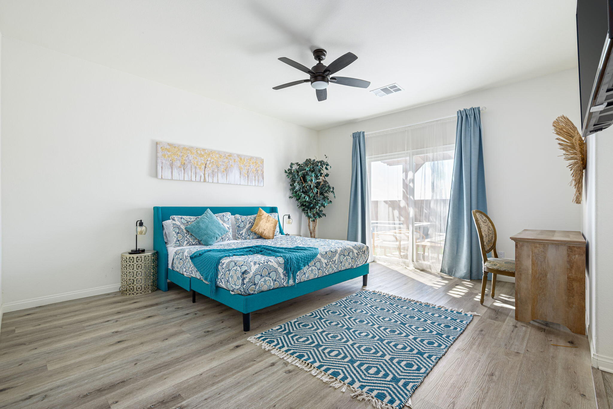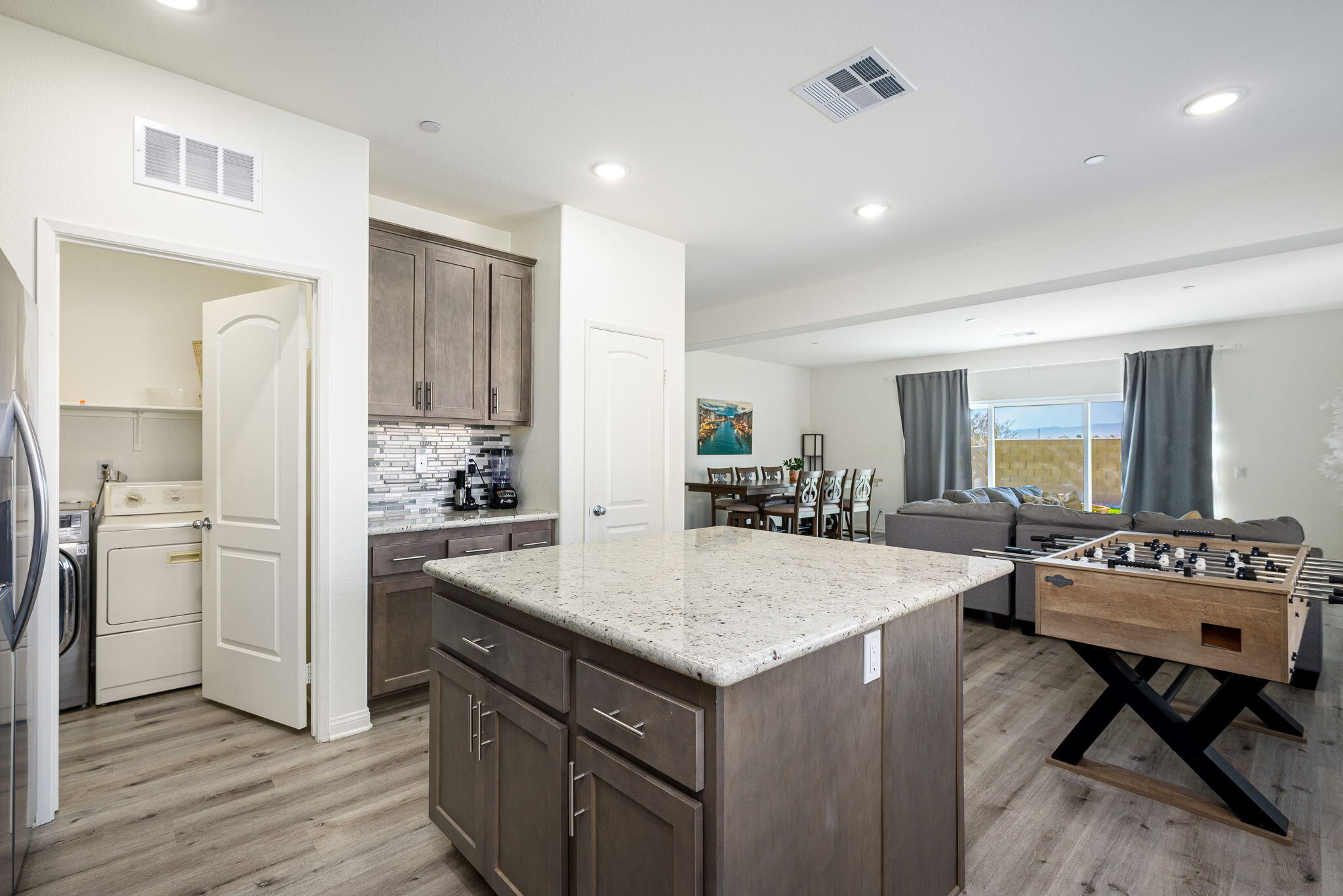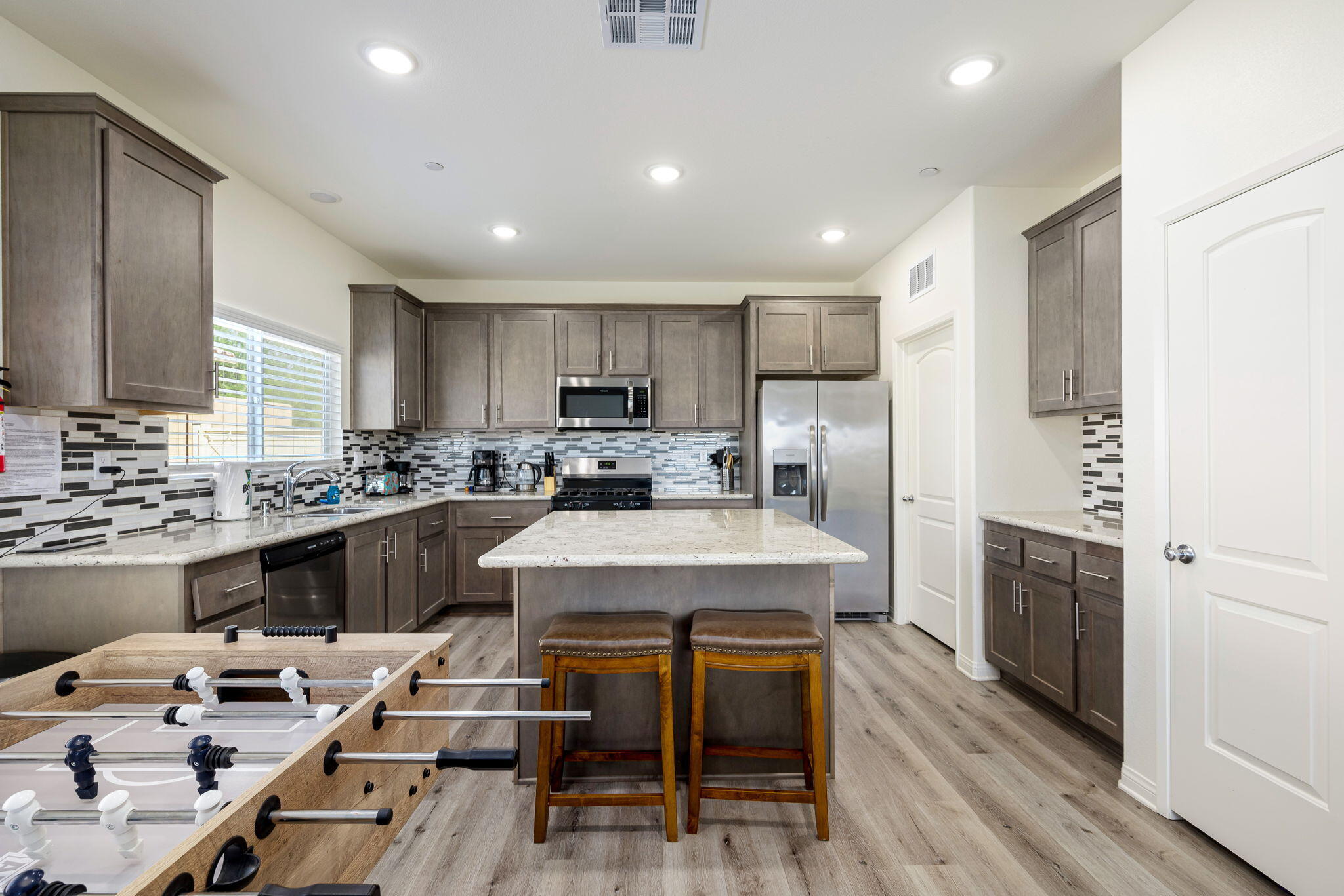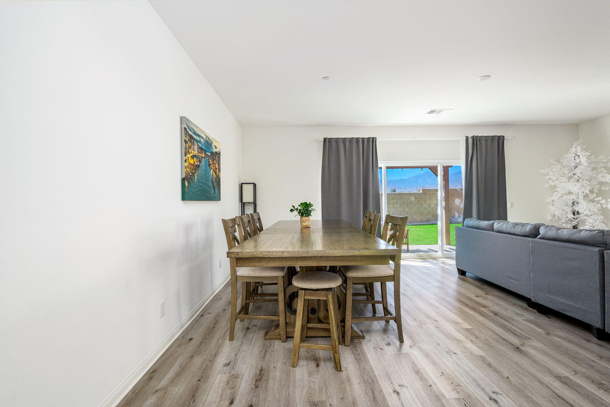 Fantastic short term rental income producing property, this Mediterranean Masterpiece with Panoramic San Jacinto Mountain Views. Experience desert living at its finest with this beautiful Mediterranean-style home, perfectly situated in the exclusive Sunset Springs community, just minutes from Palm Springs, CA. This 4-bedroom, 3-bathroom residence offers unmatched San Jacinto Mountain views that are best appreciated in person. Spanning 2,125 square feet, the home boasts a thoughtful design with high ceilings and recessed lighting that create an open, airy atmosphere. The sophisticated interior features luxury vinyl flooring throughout, adding a modern touch. The gourmet kitchen is a chef's dream, complete with granite countertops, a custom backsplash, and ample cabinetry for storage. Outdoors, the property shines with a brand-new custom-built saltwater pool, perfect for those looking to unwind and enjoy low-maintenance desert living. The yard features turf grass for ease of care, while the spacious driveway includes RV parking, catering to all your recreational needs. This home is being sold turn-key, fully furnished, and move-in ready, making it a perfect option for investors interested in breaking into the short-term rental market or for families looking for a vacation retreat. Situated next to Mission Lakes Country Club and only a short drive to the world-renowned amenities of Palm Springs.Interested in this Listing?