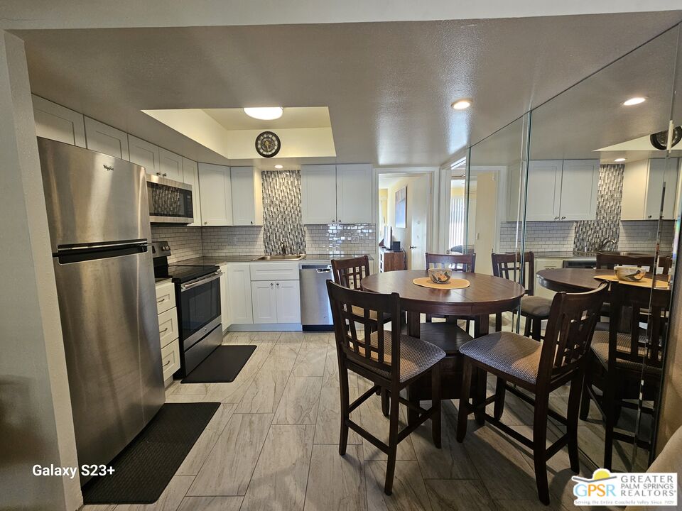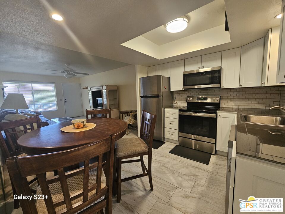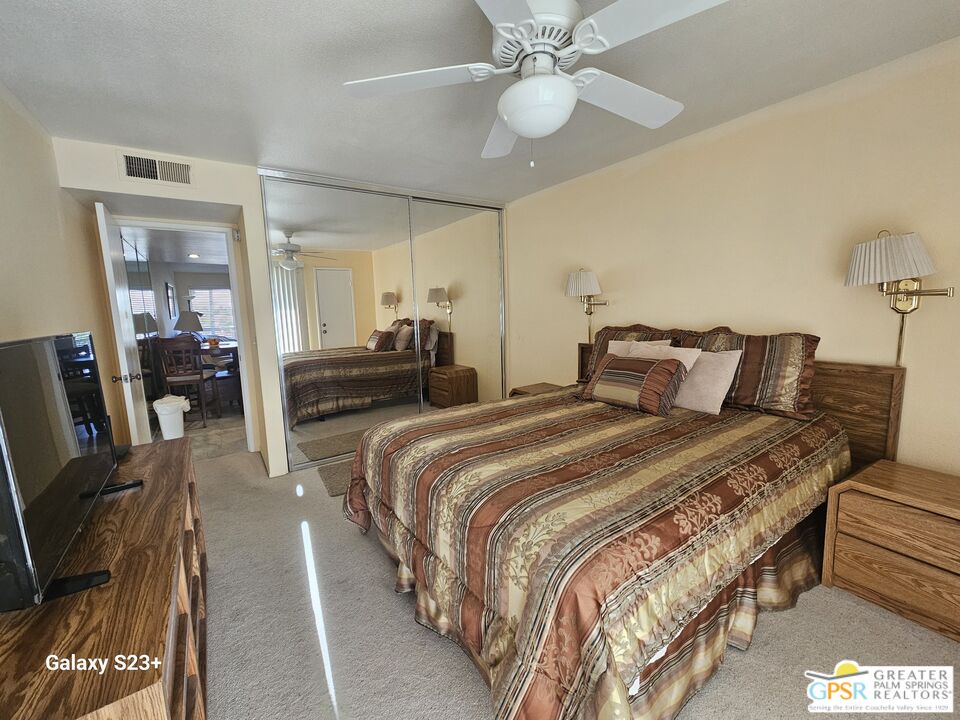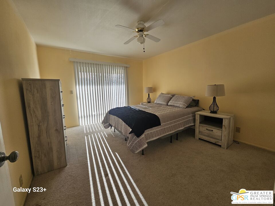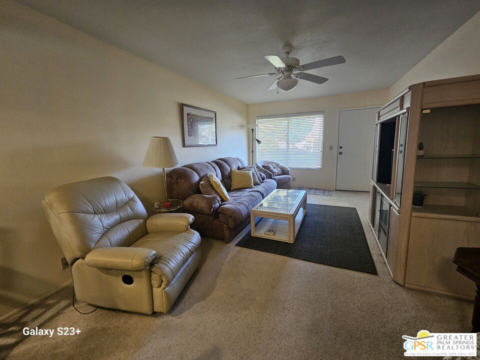 This comfy, cozy 2 bedroom, 1 bath condo is perfect for your desert escape. This upper level unit has front and rear balconies with beautiful panoramic views of the windmills and mountains. Located in Mission Lakes Country Club, condo ownership provides golf privileges for two. Amenities include pool and spas, restaurant, cocktail lounge and bar, cafe, 8-room inn for guests, golf shop, fitness center, tennis and pickleball courts and banquet facilities. Condo amenities include an on-site pool and spa, laundry room and picnic areas. HOA dues cover cable, internet, water, trash, pest control, grounds maintenance and roving security patrol. Total HOA dues are $784 per month plus an annual $480 food and beverage fee for use at the clubhouse. Per HOA rules, 30-day minimum rental. No age restrictions and no land lease. Just 15 minutes to Palm Springs and 30 minutes to Joshua Tree National Park. Close to hiking trails, casinos, museums, shopping, and restaurants. Condo community is not FHA loan eligible.Interested in this Listing?
