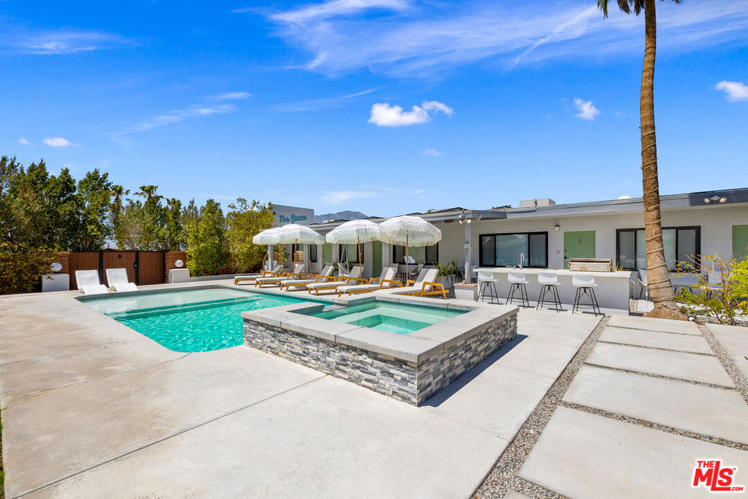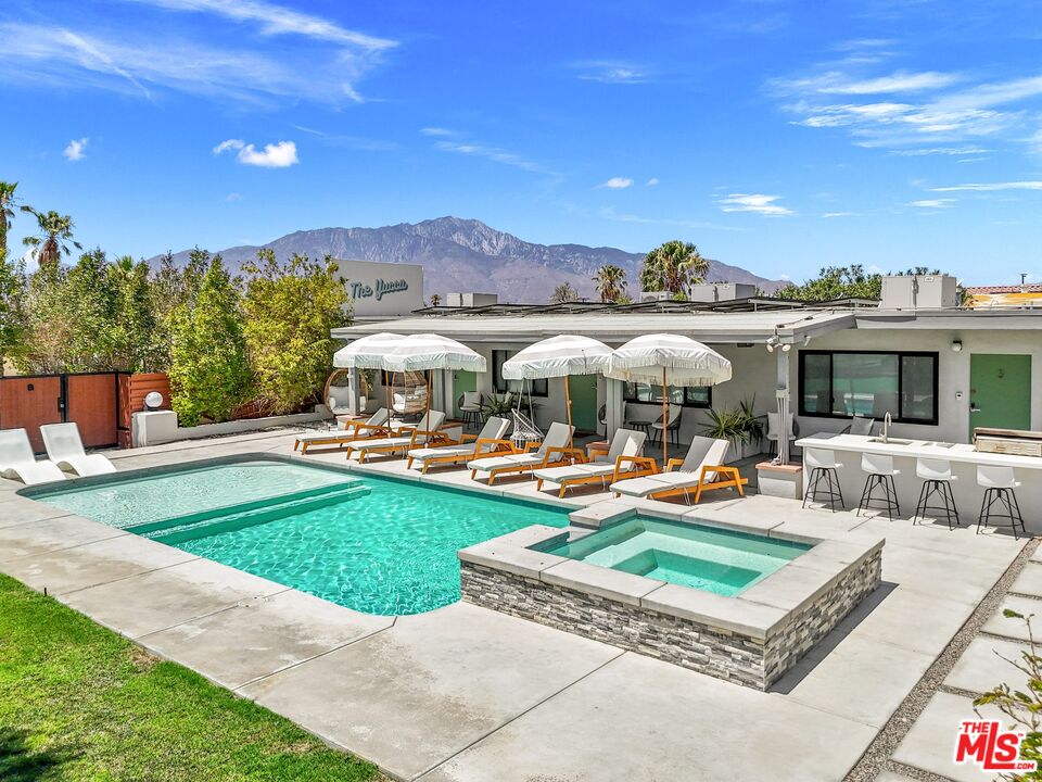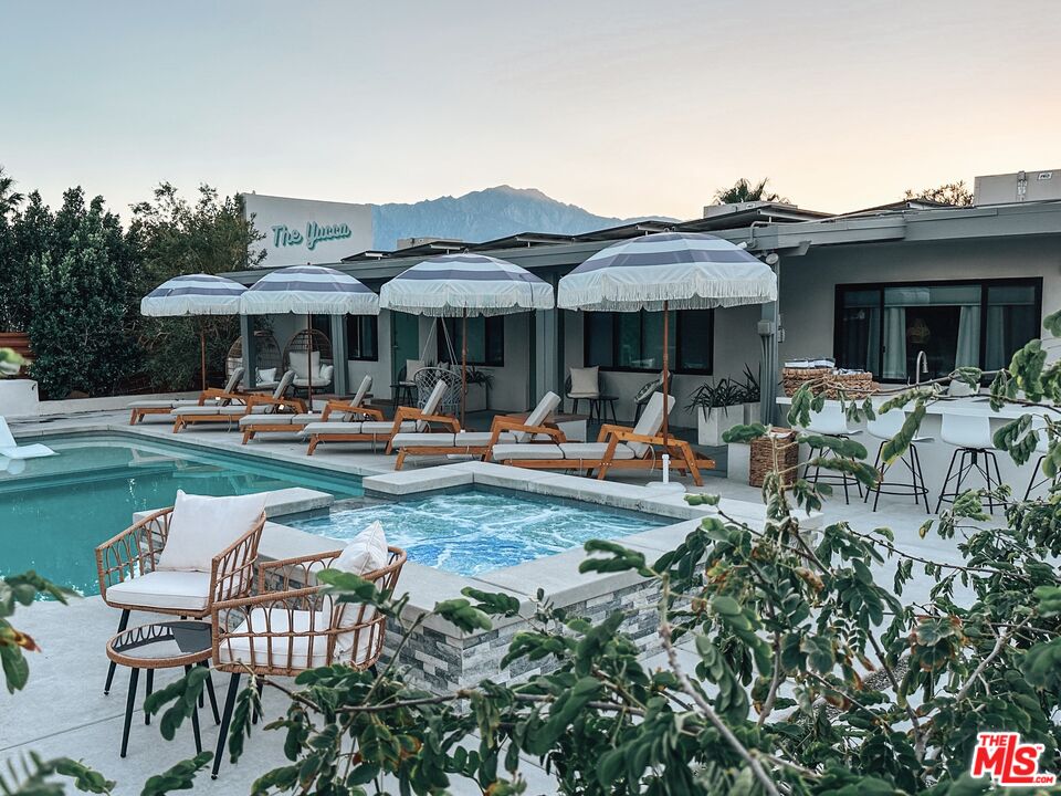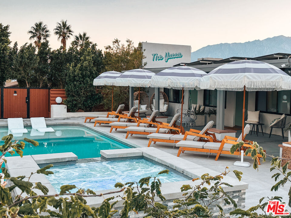 The beautifully reimagined and tastefully transformed 1950's Willets Motel, perfectly situated between Palm Springs & Joshua Tree, offers a serene desert oasis with all the modern amenities while also preserving its vintage Mid Century Modern character & charm. Just beyond the lush landscaping and private, gated exterior you are welcomed into the mix of expansive mountain views, sparkling outdoor pool & spa, furnished lounge and grass areas with the 5 individual units and 3 bedroom main house harmoniously surrounding it all. This tranquil half acre + retreat offers ultimate flexibility in terms of use--currently operating as an 8 unit luxury boutique hotel it could be utilized in a multitude of creative ways. The vast lot offers expansion opportunities as well. Other features include a BBQ area, remote controlled driveway gate, 2 car attached garage and room for RV parking, spacious fully equipped gym, coded entry to the units with each having its own AC, new electrical, plumbing, roof, solar and appliances. Come experience it all for yourself as words just don't do this desert paradise justice!Interested in this Listing?