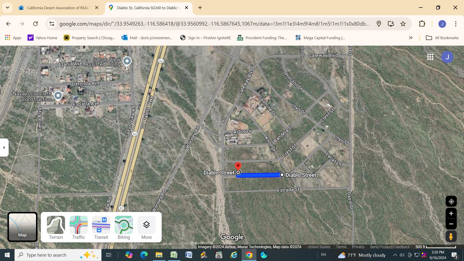 From I-10 exit north on HWY 62, turn right on Painted Hills Rd., turn left on Worsley Rd, turn right on Desert City, turn right on Gateway Blvd, trun left on Diablo St., and the lot in the 2nd parcel from Diablo St. |