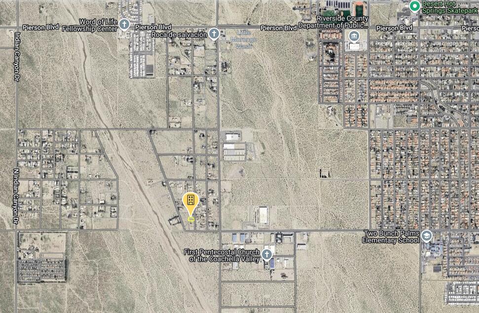 On Palm Dr make a left turn on Two Bunch Palms Trail. Right turn on United Rd. |