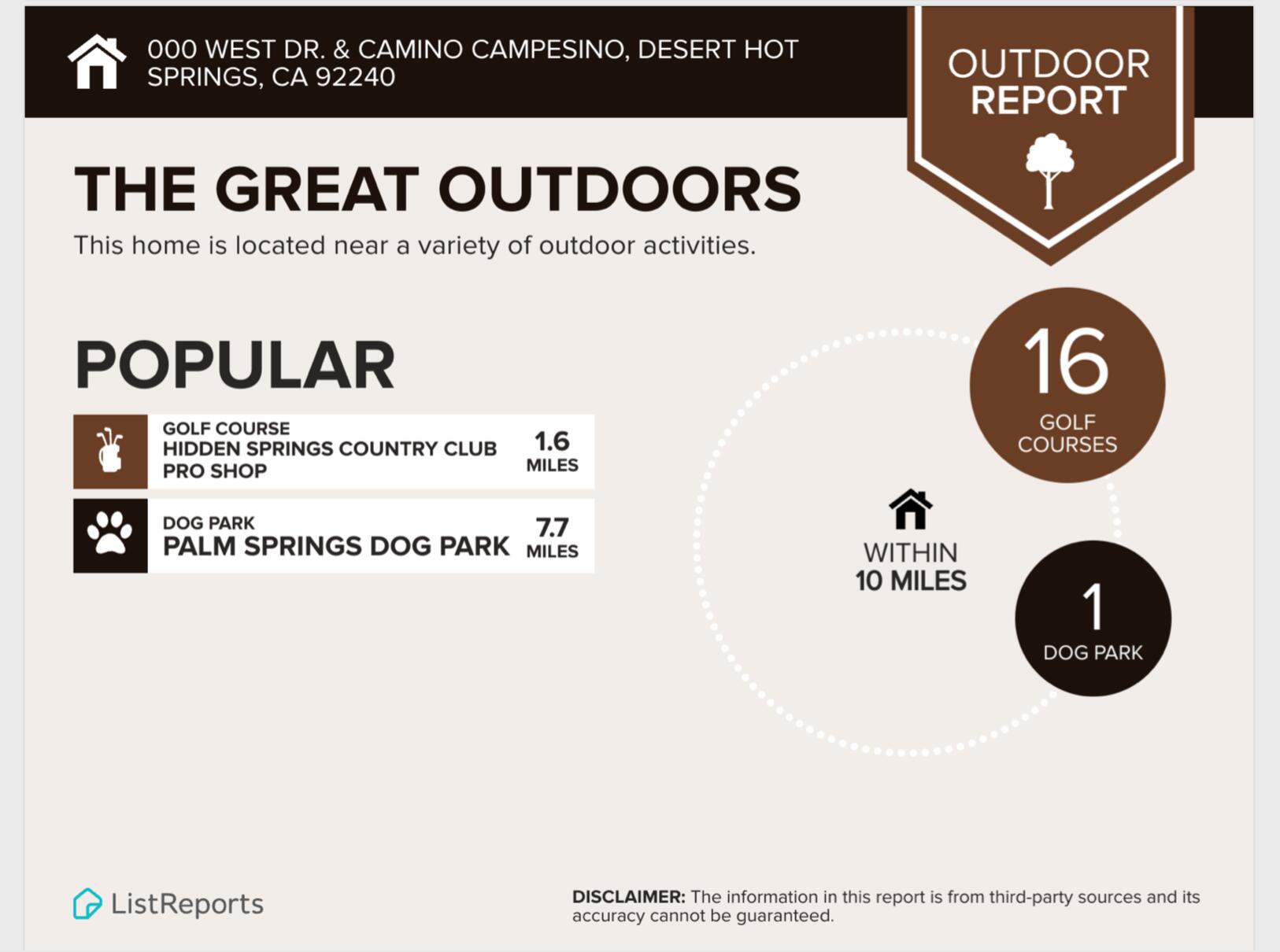 | Directions: | Palm Dr. North to Two Bunch Palms head west, then turn left or south on West Dr. Lot is on the intersection of West Dr. & Camino Campesino |