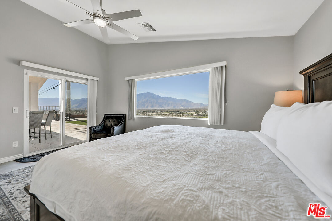 PRISTINE HILLSIDE CUSTOM HOME FOR RENT! Custom built, with vaulted ceilings, skylights and unobstructed views for miles on end, from Palm Springs to the San Gorgonio pass and beyond. This home includes many smart features, such as Samsung dishwasher, refrigerator, stove, microwave, and thermostat, as well as front load clothes washer and dryer. There is also a smart LiftMaster garage door opener, Schlage door locks, Ring doorbell, additional cameras and exterior roll-up shutters for convenience, safety and peace of mind. The home also features ceiling fans throughout to keep cool and fresh air circulating year-round. In the kitchen you will be delighted to find a reverse osmosis (RO) water filtration dispenser to provide you with crystal clear water for cooking and drinking. The master suite features a panoramic picture window to the west and an independent sliding glass door to the covered patio which features an outdoor fireplace for unwinding in those cool winter nights as you watch one-of-a-kind sunsets in comfort. This is a unique property and must be seen to be fully appreciated. Please call the listing agent directly for details and showing.Interested in this Listing?
