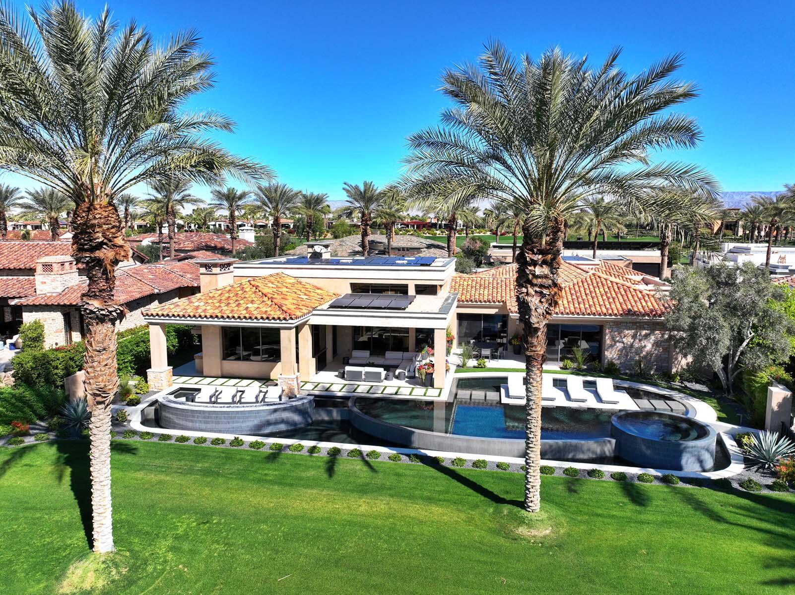 Introducing a unique estate in the exclusive Toscana Country Club, offering breathtaking panoramic views of the club's south-course and majestic mountains. This property is an ideal retreat for those seeking elegance and tranquility.The home underwent an extensive exterior renovation in Fall 2023, transforming it into a masterpiece. Designed by Seattle-based architect Regan McClellan, the backyard features a custom zero-edge infinity pool and spa, blending water and fire elements. The eclipse-shaped pool mirrors the fire pit pad, while stepping stones lead to a lounging pad submerged in just a quarter-inch of water, creating a floating effect. The outdoor space also includes stunning landscaping, custom hardscapes, and a redesigned front walk-up, completed by West Coast Builders and Mirador Landscape.Recognized as one of the ''Greatest Pools of 2024'' by Pebble Technology, the estate's $1.8 million exterior transformation is a standout. The property also boasts a 14.76-kilowatt solar system, producing an estimated 23,000 kWh annually. Newly installed HVAC units ensure year-round comfort.Inside, the home features spacious living areas, elegant finishes, and exquisite Restoration Hardware Outdoor furnishings. The secondary bedrooms are very spacious and thoughtfully designed with beautiful built-ins, offering a perfect retreat for guests. A separate office with stunning views of the South Mountains overlooks the pool and outdoor area, providing an inspiring space to work. This ultra-luxury home offers modern amenities, dramatic views, and an extraordinary outdoor oasis, making it the height of Southern California living.Interested in this Listing?