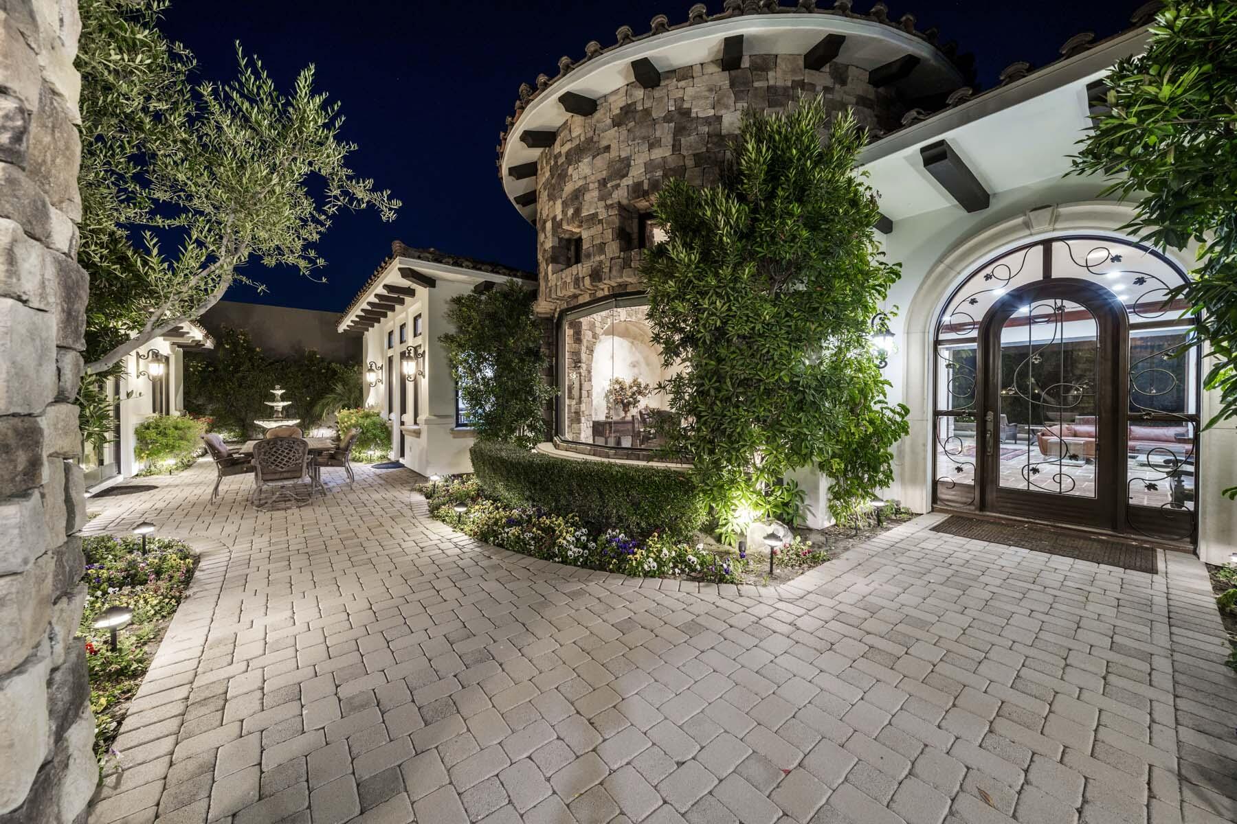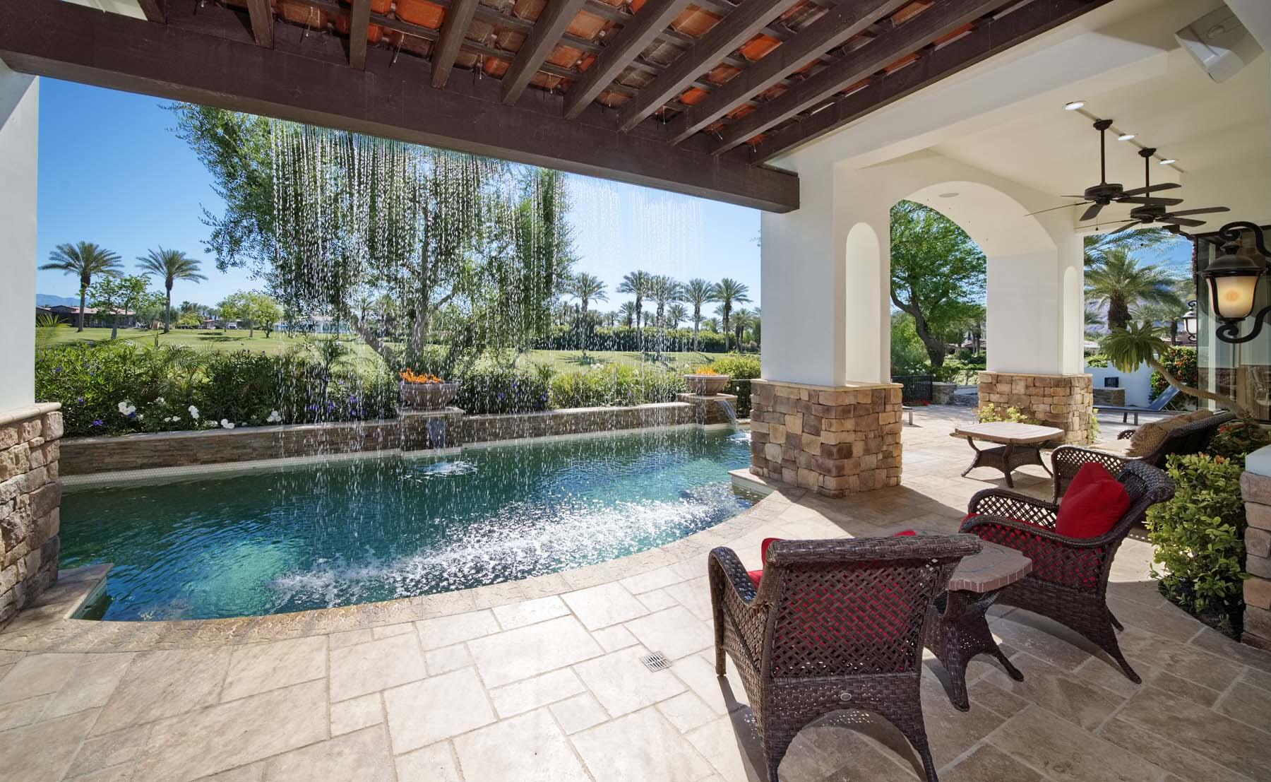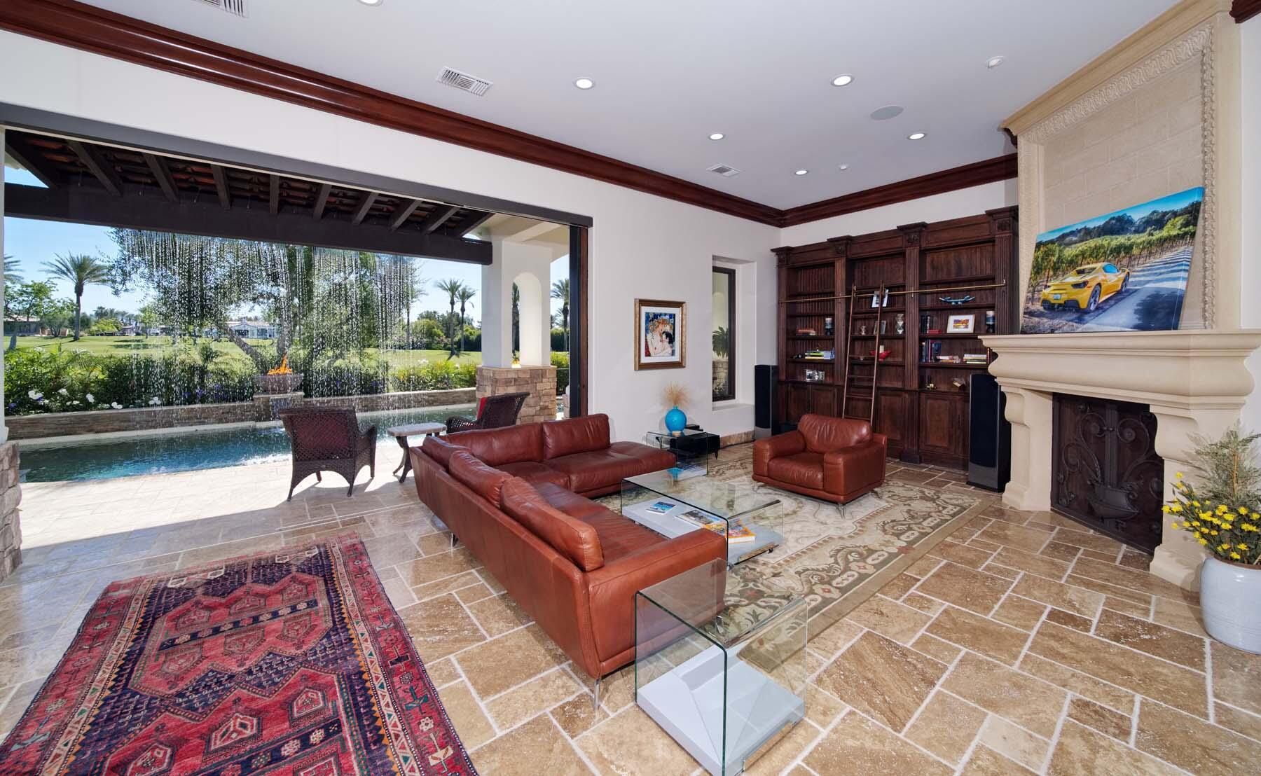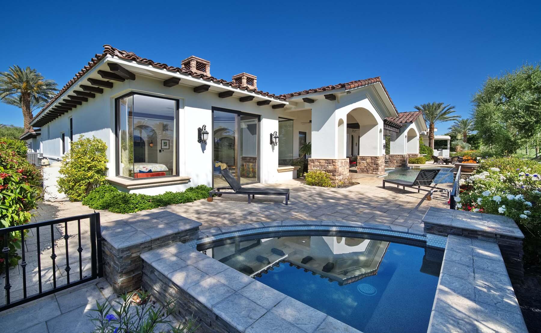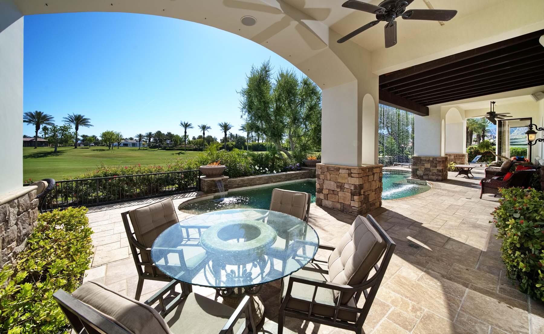 Situated on the 18th hole of Toscana's coveted South Course, this custom estate offers breathtaking panoramic views of the fairway and surrounding mountains. Designed for seamless indoor-outdoor living, the home features travertine floors, elegant crown molding, and two sets of pocketing glass sliders that open to a stunning backyard retreat. The outdoor space is a true showstopper, complete with a custom pool showcasing water and fire features, a built-in barbecue, new landscaping, and decorative wrought iron fencing--perfect for both relaxing and entertaining. A detached two-bedroom guest house with a sitting area and kitchenette provides luxurious accommodations for visitors. The versatile floor plan includes a bonus room that can serve as a fifth bedroom or a media room, offering flexible living space to suit your needs. Recent enhancements include four new high-efficiency HVAC systems with NEST thermostats--three serving the main residence and one for the guest house--plus ductless mini-split systems in both garages. A new refrigeration system with advanced controls supports the temperature-controlled wine cellar. The home is fully outfitted with recessed LED smart lighting, Lutron switches and outlets, and a 14-zone audio system with 16 speaker pairs, all managed through four wall-mounted iPads offering integrated SMART control of lighting, pool features, cameras, thermostats, and audio. Additional features include full interior and exterior paint, dual COVE dishwashers, LG washer and dryer, and owned solar for maximum energy efficiency.Interested in this Listing?