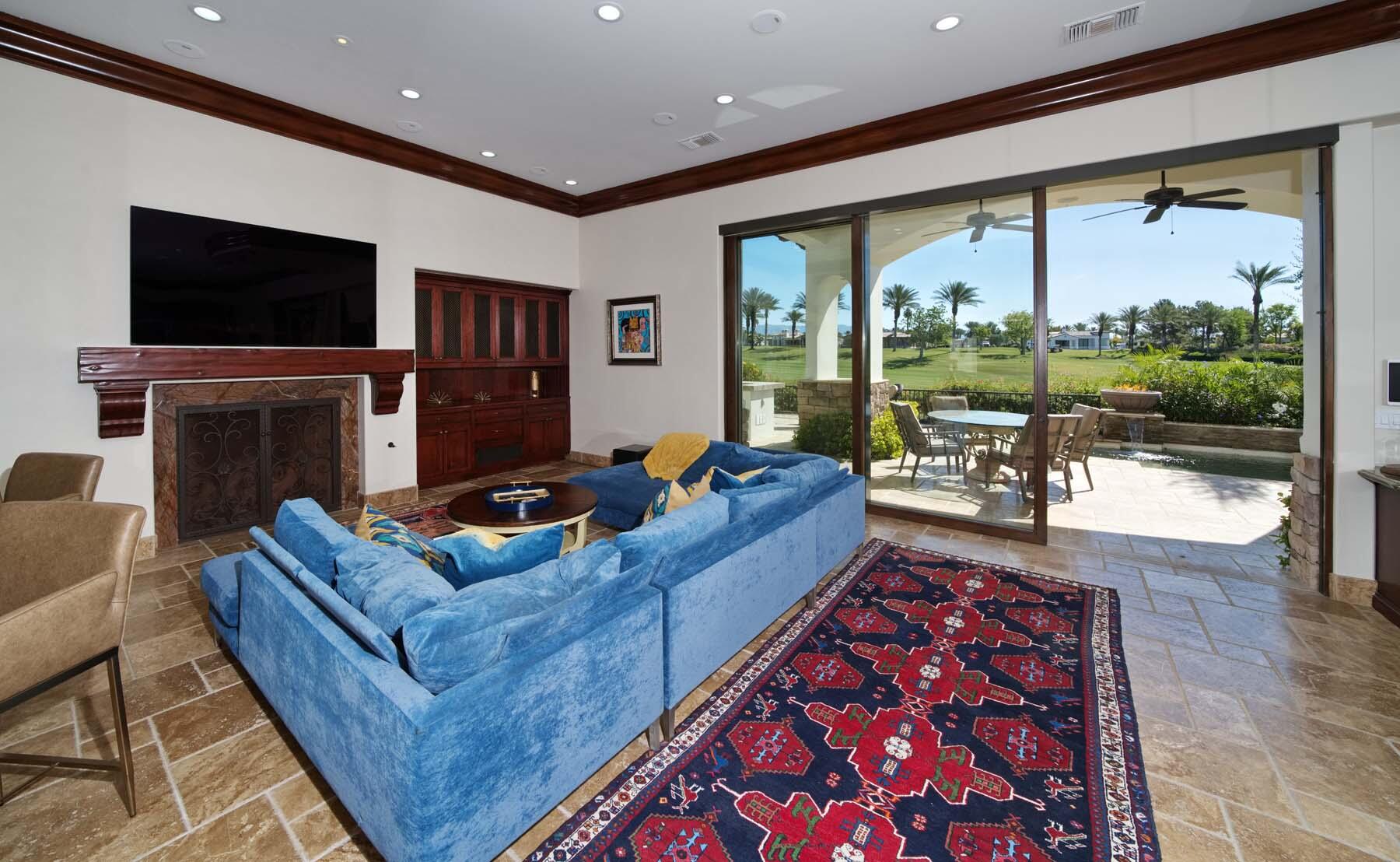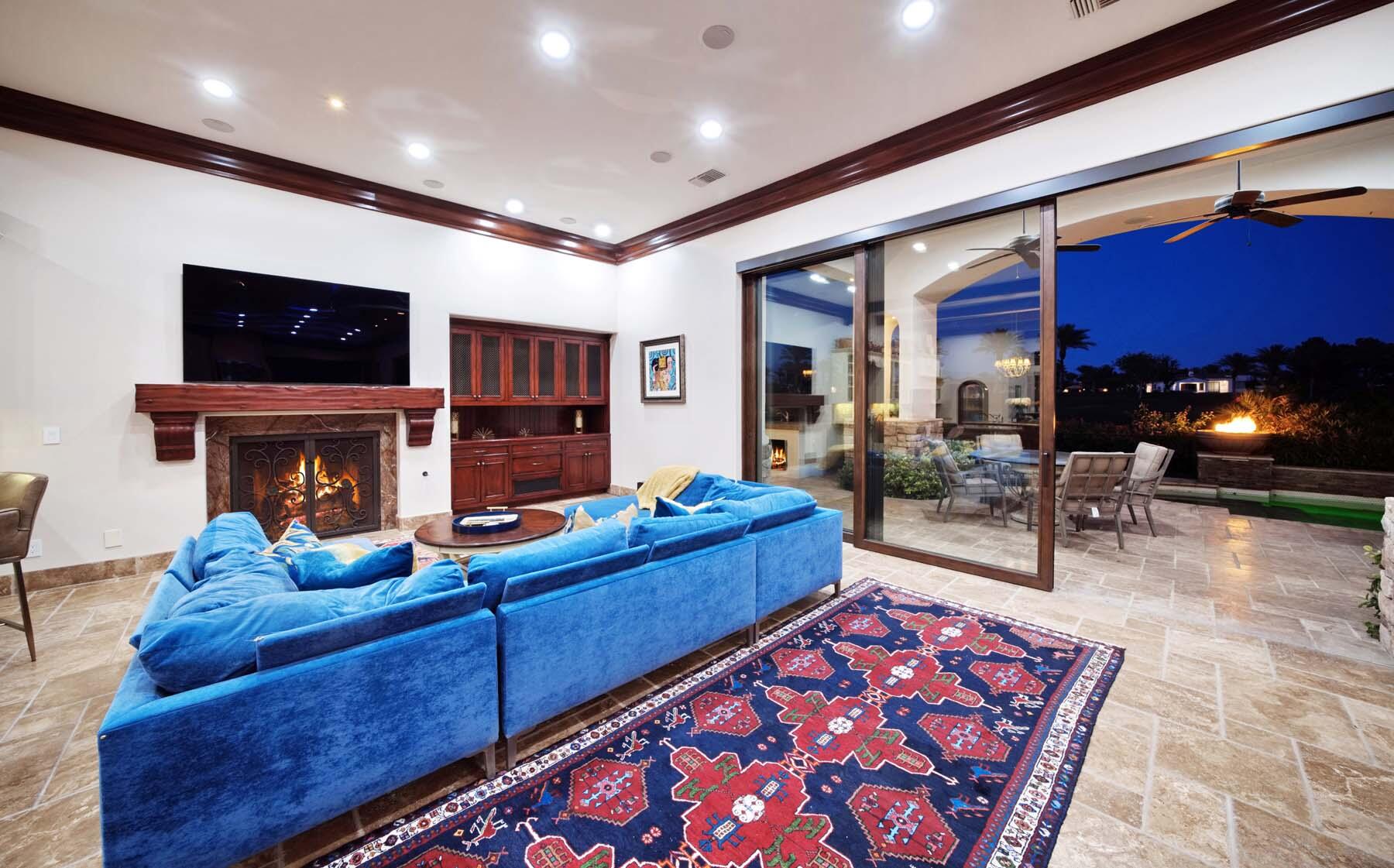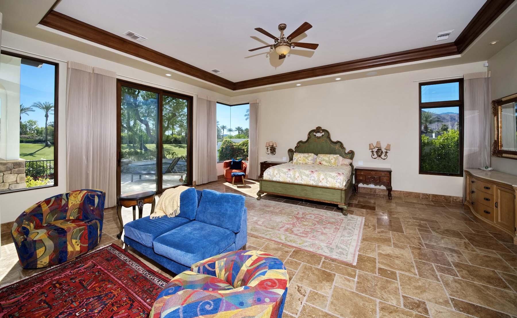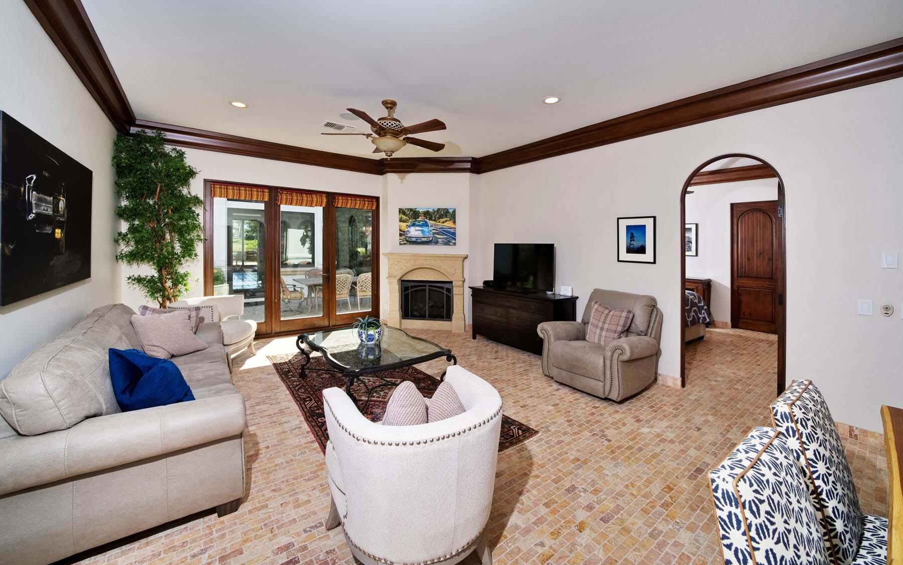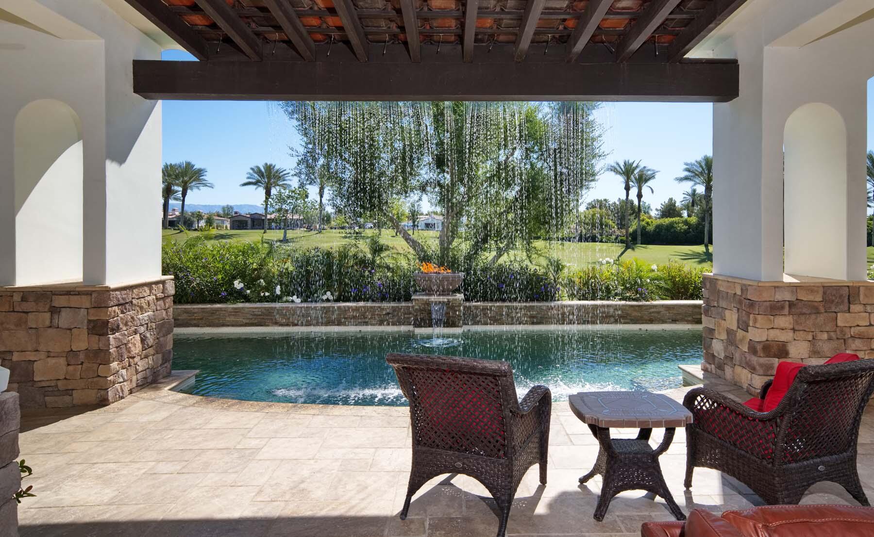 Situated on the 18th hole of Toscana's coveted South Course, this custom estate offers breathtaking panoramic views of the fairway and surrounding mountains. Designed for seamless indoor-outdoor living, the home features travertine floors, elegant crown molding, and two sets of pocketing glass sliders that open to a stunning backyard retreat. The outdoor space is a true showstopper, complete with a custom pool showcasing water and fire features, a built-in barbecue, new landscaping, and decorative wrought iron fencing--perfect for both relaxing and entertaining. A detached two-bedroom guest house with a sitting area and kitchenette provides luxurious accommodations for visitors. The versatile floor plan includes a bonus room that can serve as a fifth bedroom or a media room, offering flexible living space to suit your needs. Recent enhancements include four new high-efficiency HVAC systems with NEST thermostats--three serving the main residence and one for the guest house--plus ductless mini-split systems in both garages. A new refrigeration system with advanced controls supports the temperature-controlled wine cellar. The home is fully outfitted with recessed LED smart lighting, Lutron switches and outlets, and a 14-zone audio system with 16 speaker pairs, all managed through four wall-mounted iPads offering integrated SMART control of lighting, pool features, cameras, thermostats, and audio. Additional features include full interior and exterior paint, dual COVE dishwashers, LG washer and dryer, and owned solar for maximum energy efficiency.Interested in this Listing?