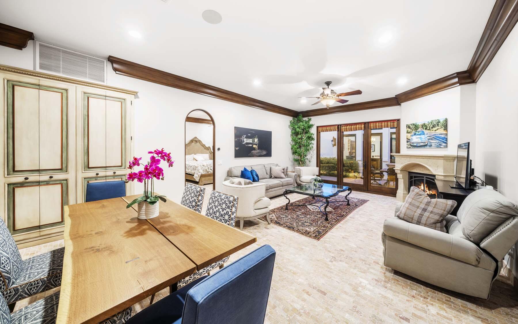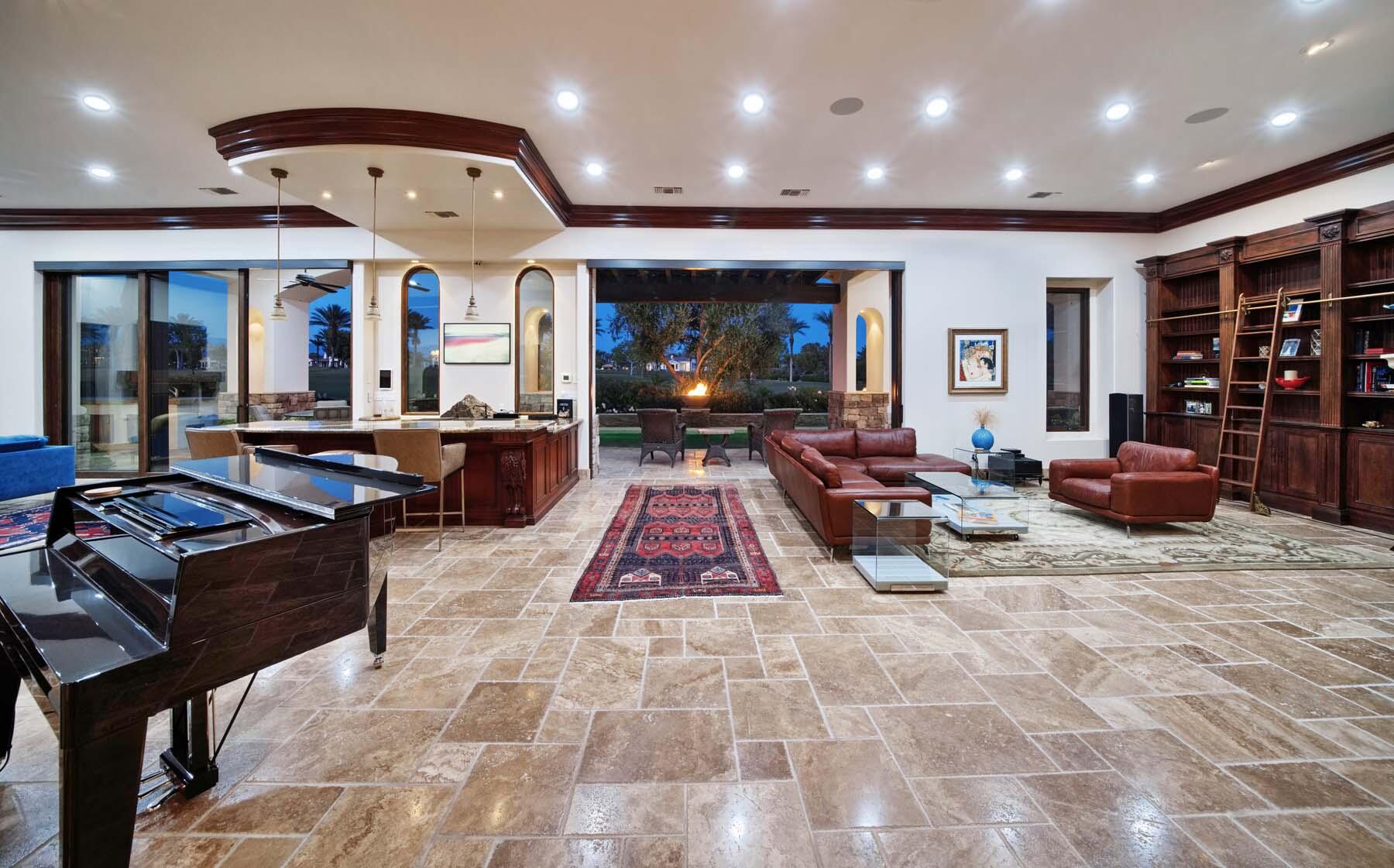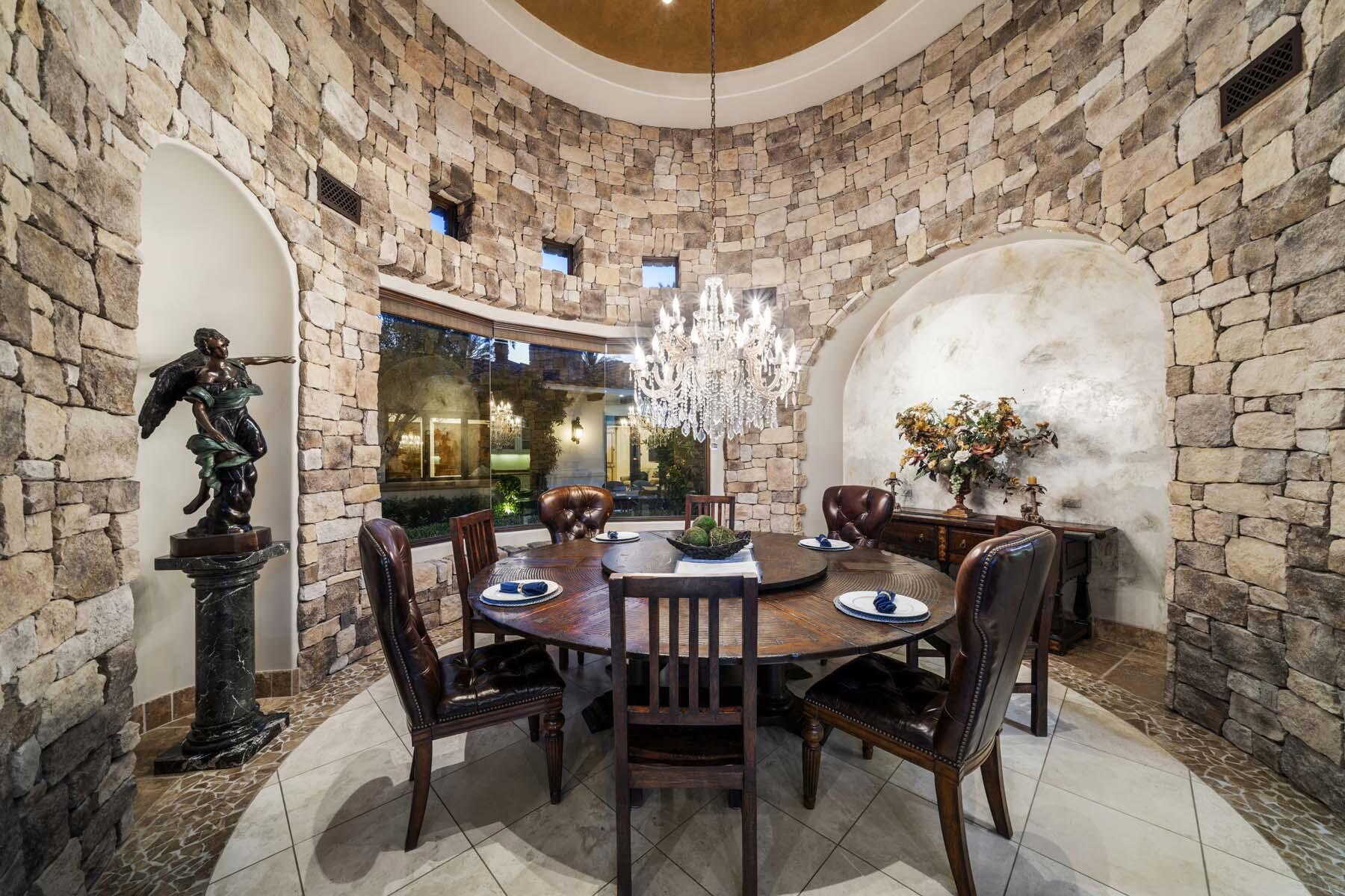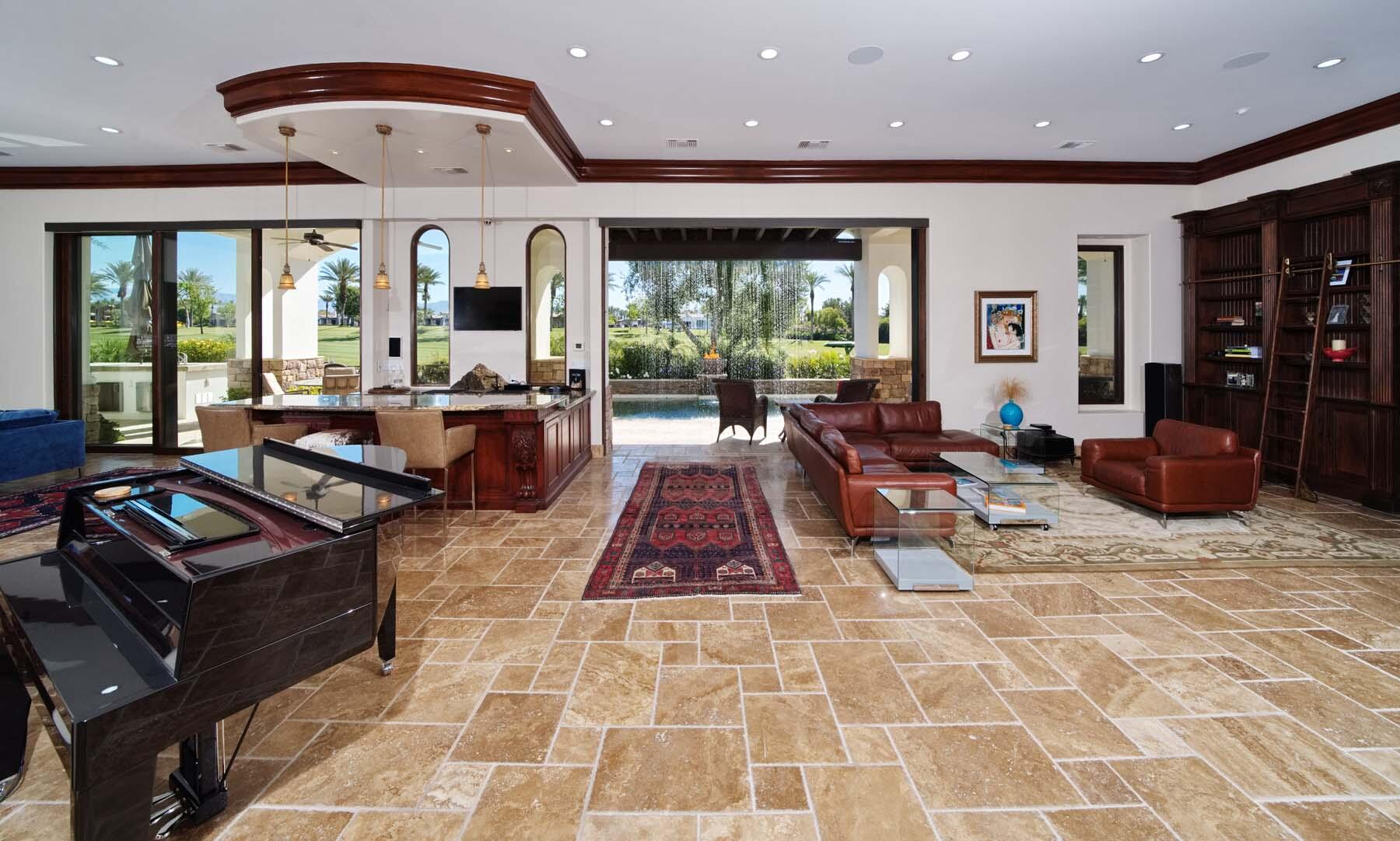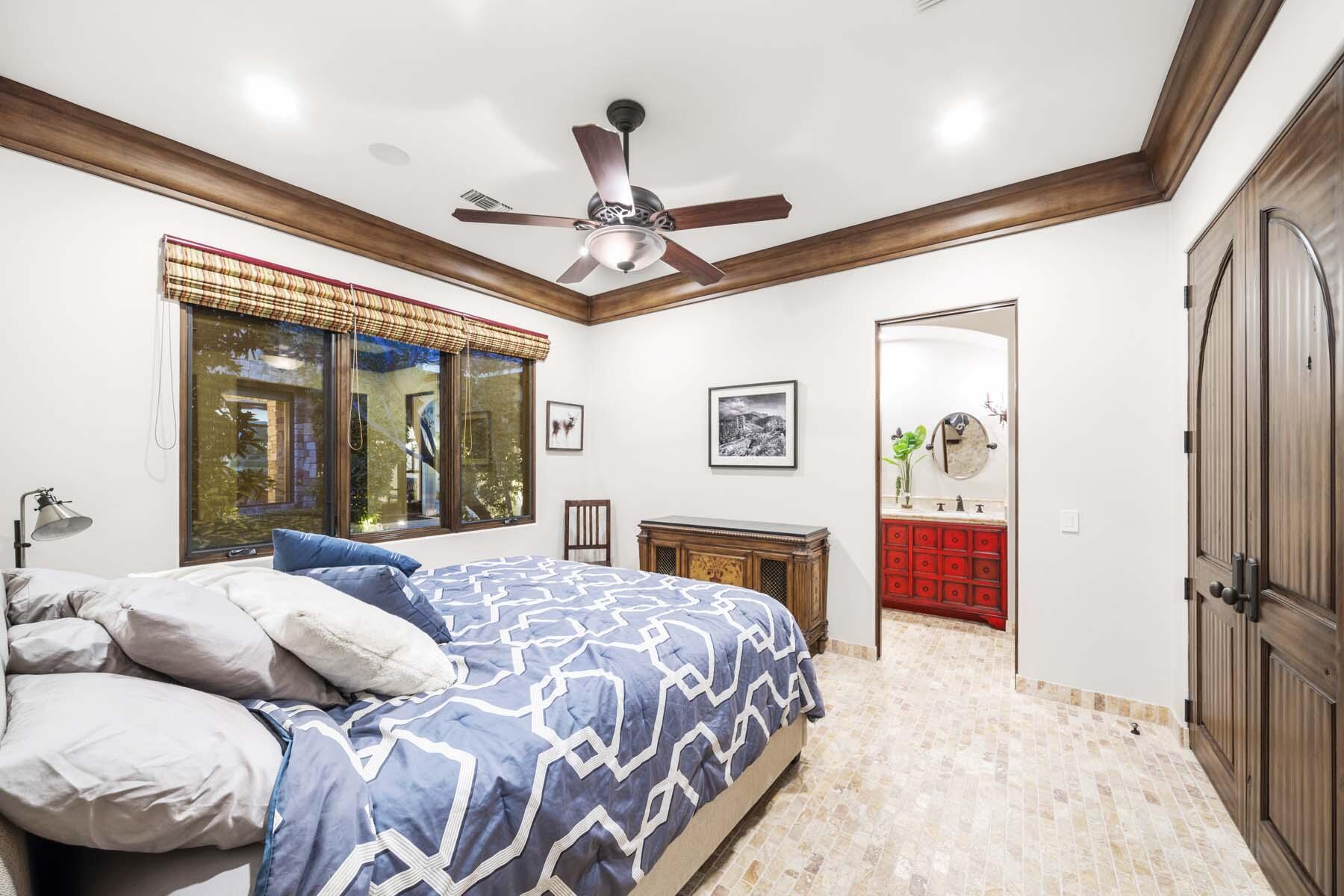 Situated on the 18th hole of Toscana's coveted South Course, this custom estate offers breathtaking panoramic views of the fairway and surrounding mountains. Designed for seamless indoor-outdoor living, the home features travertine floors, elegant crown molding, and two sets of pocketing glass sliders that open to a stunning backyard retreat. The outdoor space is a true showstopper, complete with a custom pool showcasing water and fire features, a built-in barbecue, new landscaping, and decorative wrought iron fencing--perfect for both relaxing and entertaining. A detached two-bedroom guest house with a sitting area and kitchenette provides luxurious accommodations for visitors. The versatile floor plan includes a bonus room that can serve as a fifth bedroom or a media room, offering flexible living space to suit your needs. Recent enhancements include four new high-efficiency HVAC systems with NEST thermostats--three serving the main residence and one for the guest house--plus ductless mini-split systems in both garages. A new refrigeration system with advanced controls supports the temperature-controlled wine cellar. The home is fully outfitted with recessed LED smart lighting, Lutron switches and outlets, and a 14-zone audio system with 16 speaker pairs, all managed through four wall-mounted iPads offering integrated SMART control of lighting, pool features, cameras, thermostats, and audio. Additional features include full interior and exterior paint, dual COVE dishwashers, LG washer and dryer, and owned solar for maximum energy efficiency.Interested in this Listing?