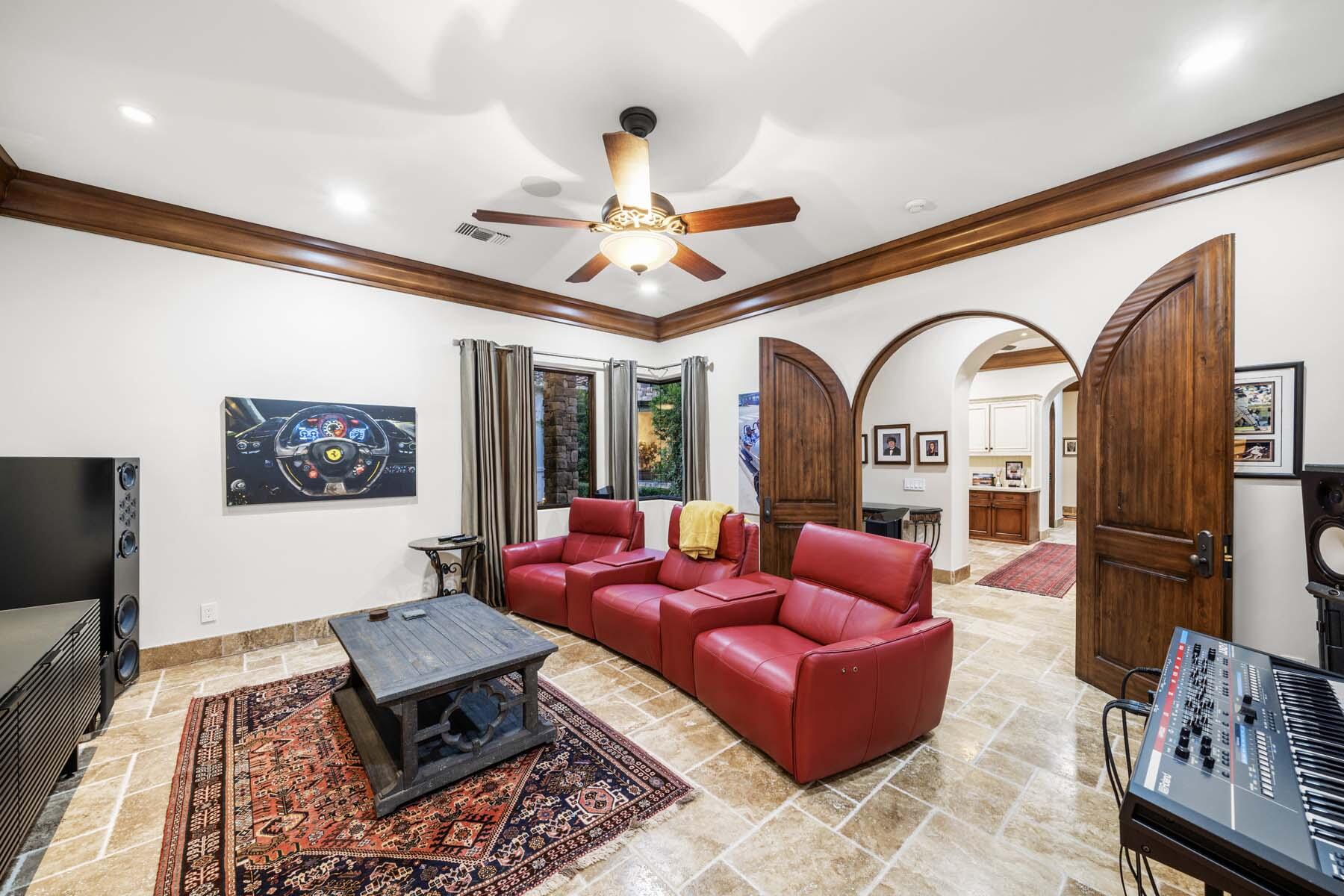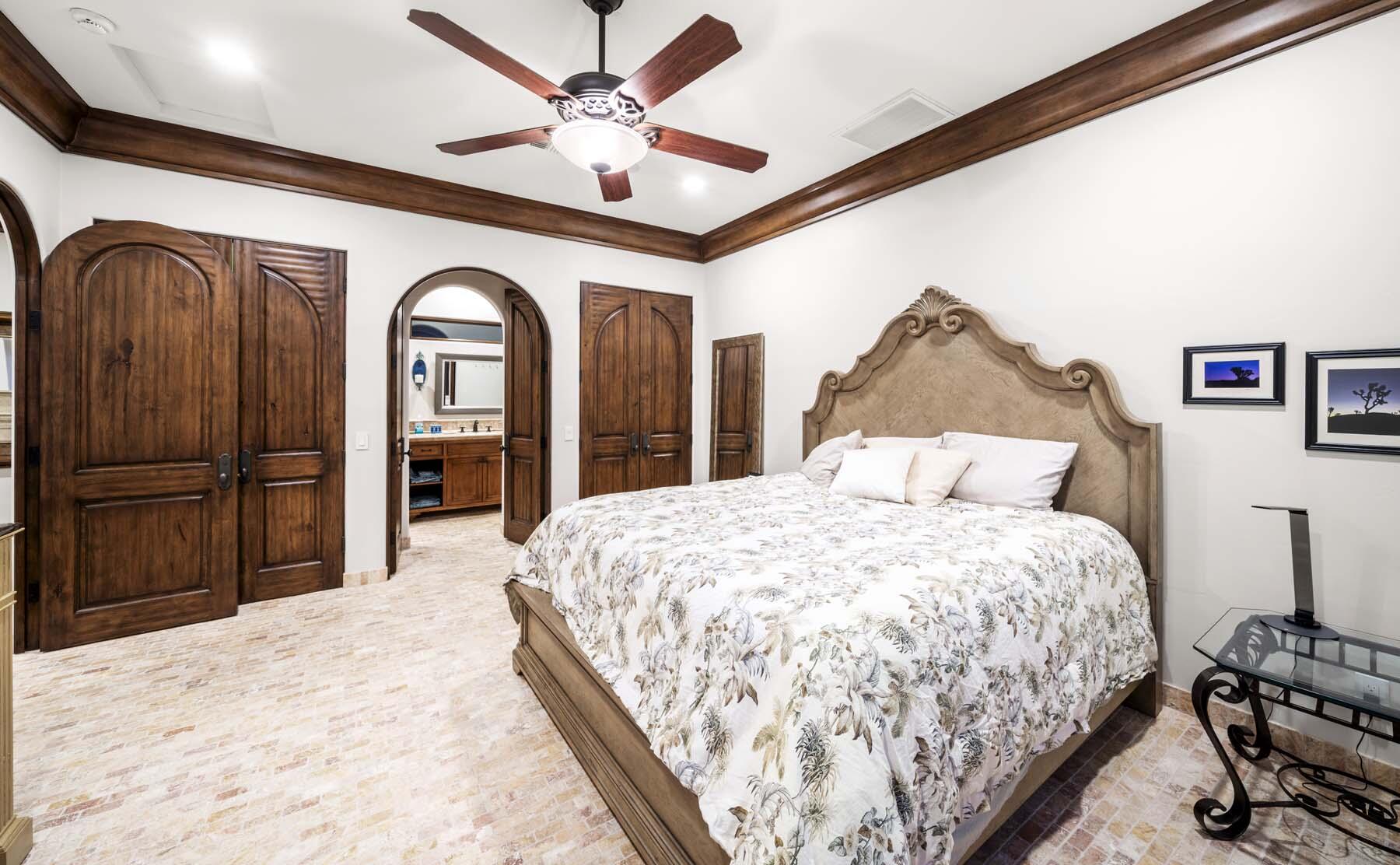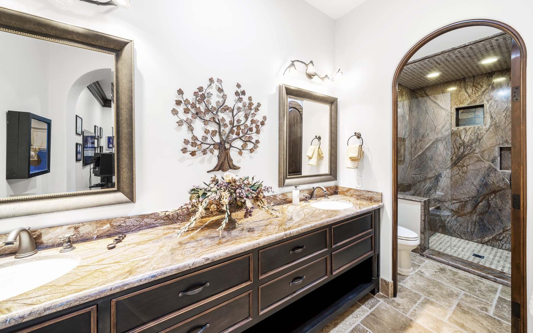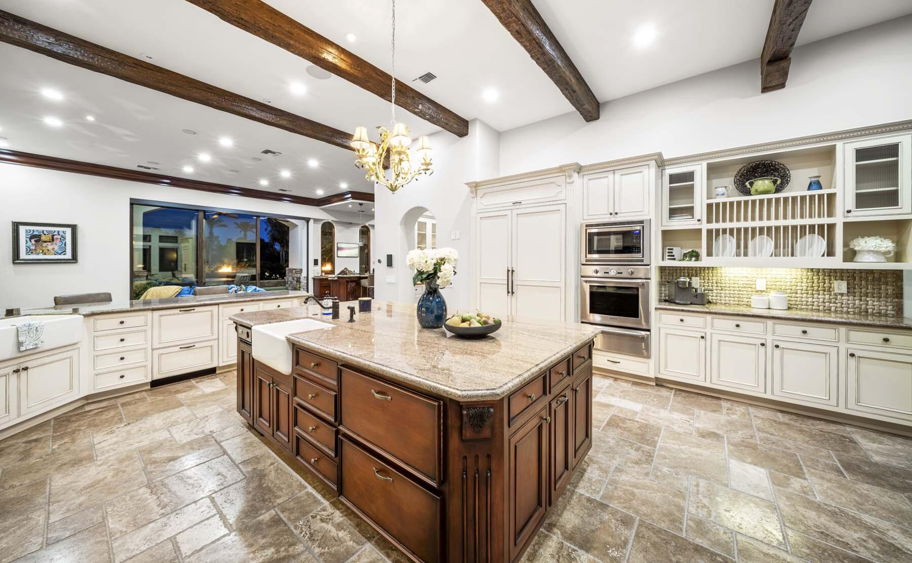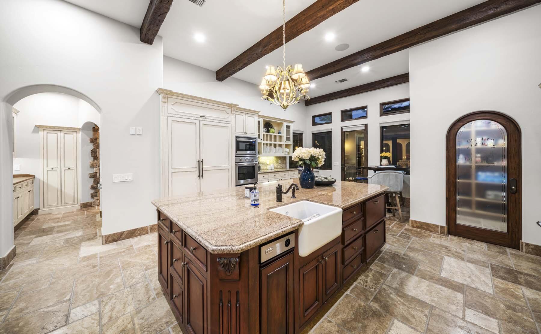 Situated on the 18th hole of Toscana's coveted South Course, this custom estate offers breathtaking panoramic views of the fairway and surrounding mountains. Designed for seamless indoor-outdoor living, the home features travertine floors, elegant crown molding, and two sets of pocketing glass sliders that open to a stunning backyard retreat. The outdoor space is a true showstopper, complete with a custom pool showcasing water and fire features, a built-in barbecue, new landscaping, and decorative wrought iron fencing--perfect for both relaxing and entertaining. A detached two-bedroom guest house with a sitting area and kitchenette provides luxurious accommodations for visitors. The versatile floor plan includes a bonus room that can serve as a fifth bedroom or a media room, offering flexible living space to suit your needs. Recent enhancements include four new high-efficiency HVAC systems with NEST thermostats--three serving the main residence and one for the guest house--plus ductless mini-split systems in both garages. A new refrigeration system with advanced controls supports the temperature-controlled wine cellar. The home is fully outfitted with recessed LED smart lighting, Lutron switches and outlets, and a 14-zone audio system with 16 speaker pairs, all managed through four wall-mounted iPads offering integrated SMART control of lighting, pool features, cameras, thermostats, and audio. Additional features include full interior and exterior paint, dual COVE dishwashers, LG washer and dryer, and owned solar for maximum energy efficiency.Interested in this Listing?
