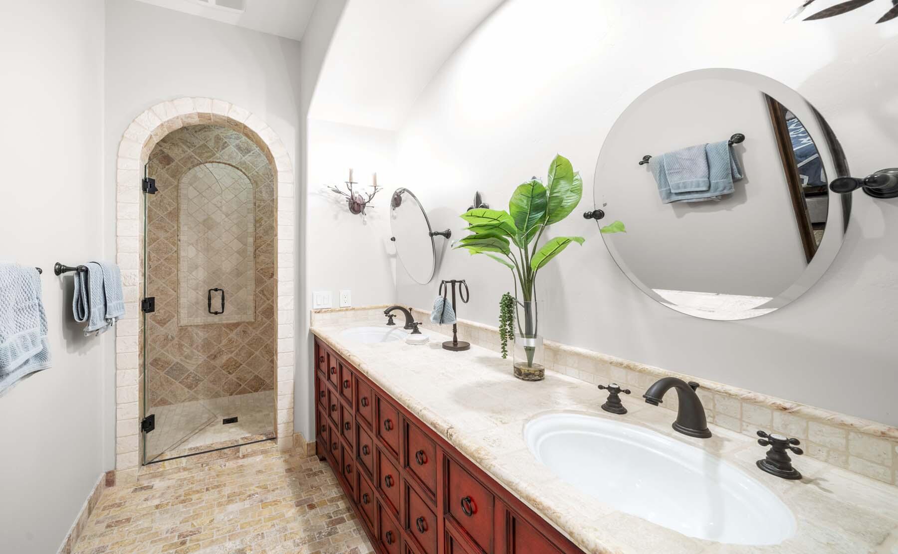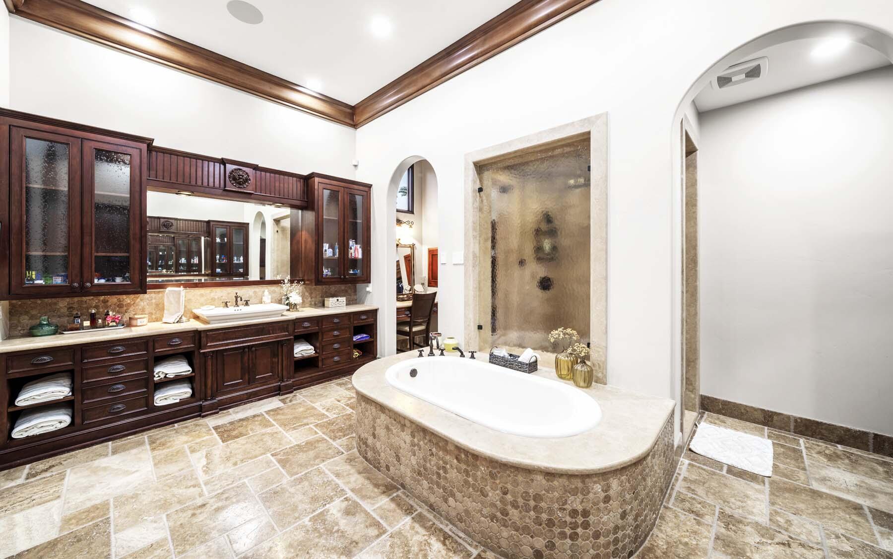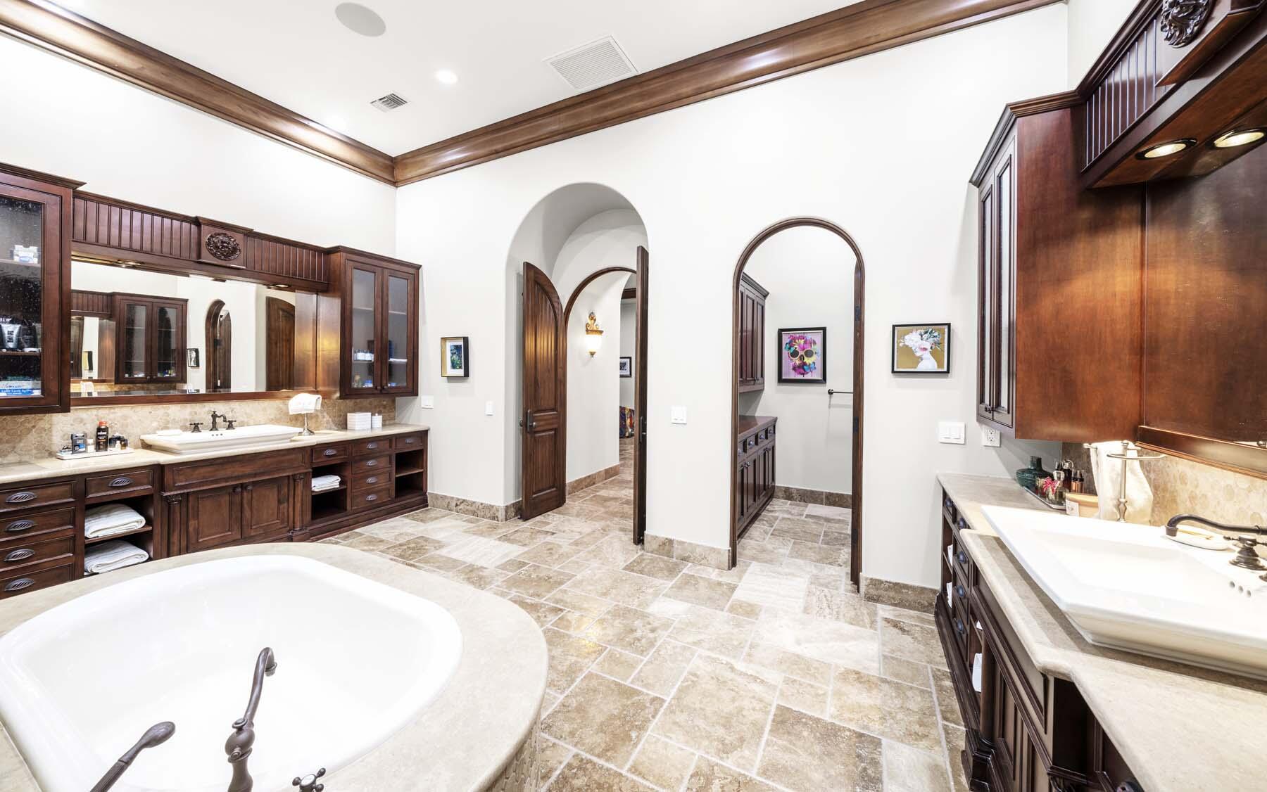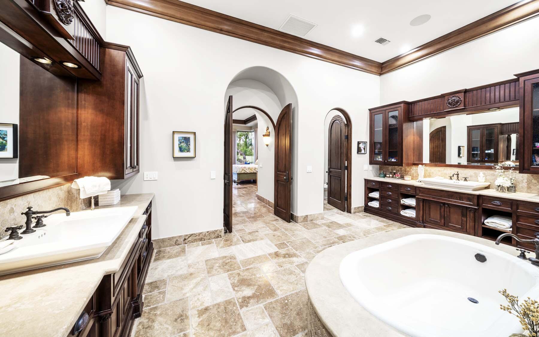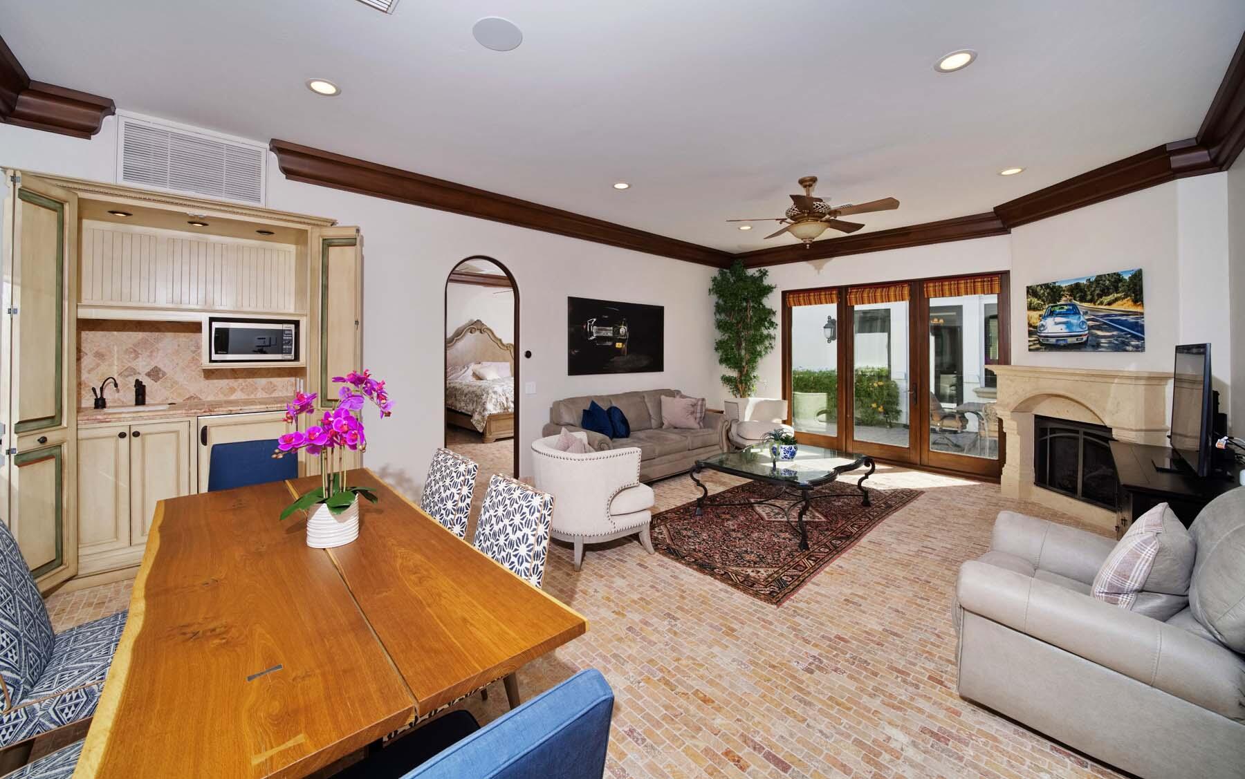 Situated on the 18th hole of Toscana's coveted South Course, this custom estate offers breathtaking panoramic views of the fairway and surrounding mountains. Designed for seamless indoor-outdoor living, the home features travertine floors, elegant crown molding, and two sets of pocketing glass sliders that open to a stunning backyard retreat. The outdoor space is a true showstopper, complete with a custom pool showcasing water and fire features, a built-in barbecue, new landscaping, and decorative wrought iron fencing--perfect for both relaxing and entertaining. A detached two-bedroom guest house with a sitting area and kitchenette provides luxurious accommodations for visitors. The versatile floor plan includes a bonus room that can serve as a fifth bedroom or a media room, offering flexible living space to suit your needs. Recent enhancements include four new high-efficiency HVAC systems with NEST thermostats--three serving the main residence and one for the guest house--plus ductless mini-split systems in both garages. A new refrigeration system with advanced controls supports the temperature-controlled wine cellar. The home is fully outfitted with recessed LED smart lighting, Lutron switches and outlets, and a 14-zone audio system with 16 speaker pairs, all managed through four wall-mounted iPads offering integrated SMART control of lighting, pool features, cameras, thermostats, and audio. Additional features include full interior and exterior paint, dual COVE dishwashers, LG washer and dryer, and owned solar for maximum energy efficiency.Interested in this Listing?