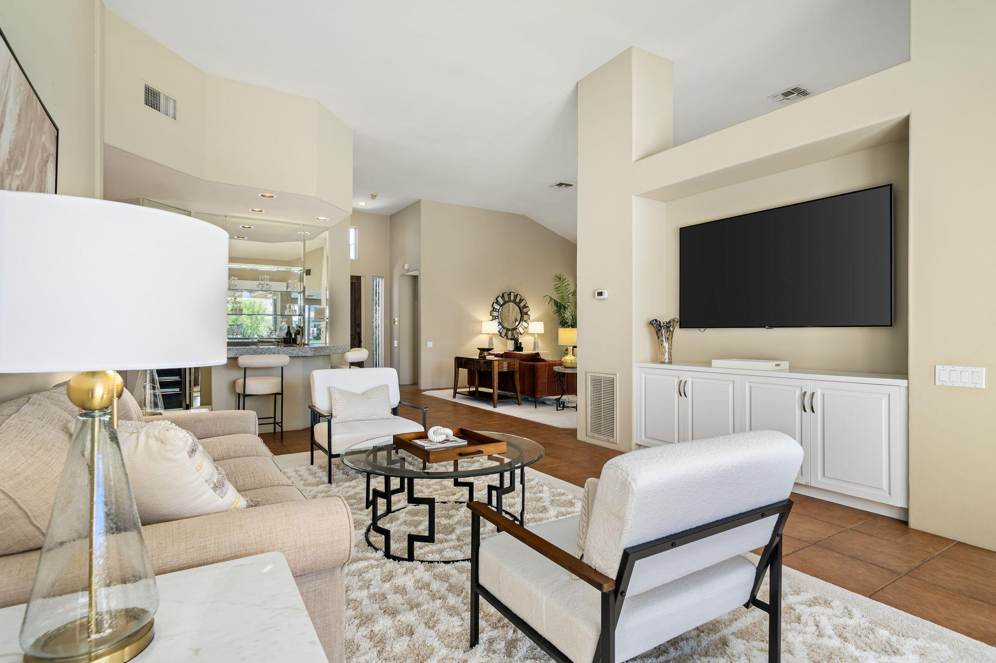 Experience desert luxury at its finest in this charming Indian Wells residence, tucked behind the gates of prestigious Desert Horizons Country Club. From the moment you arrive, a gated front courtyard sets the tone, welcoming you into a home that is equal parts sanctuary and entertainer's delight.Inside, soaring ceilings and a gracious living area are anchored by an elegant fireplace. The updated kitchen and family room showcase breathtaking, south-facing views of a picturesque lake complete with blooming water lilies and the Santa Rosa Mountains beyond. These are views you'll never tire of.The Troon floor plan offers both comfort and flexibility, with two spacious primary suites and a third bedroom currently configured as a cozy den, ideal for quiet moments or media. Designed for seamless indoor-outdoor living, the layout invites al fresco dining, relaxed entertaining, or tranquil evenings under the stars.Whether hosting family and friends or savoring peaceful solitude, this home is filled with ambiance, privacy, and timeless elegance.Just a short golf cart ride away, the newly completed clubhouse, a stunning desert-modern masterpiece, features a restaurant and bar, 8,000 sq ft wellness center, pro shop, and a courts pavilion with 11 pickleball and 2 tennis courts. Immerse yourself in unbeatable desert living--your next chapter begins here. Call today for private showing.Interested in this Listing?