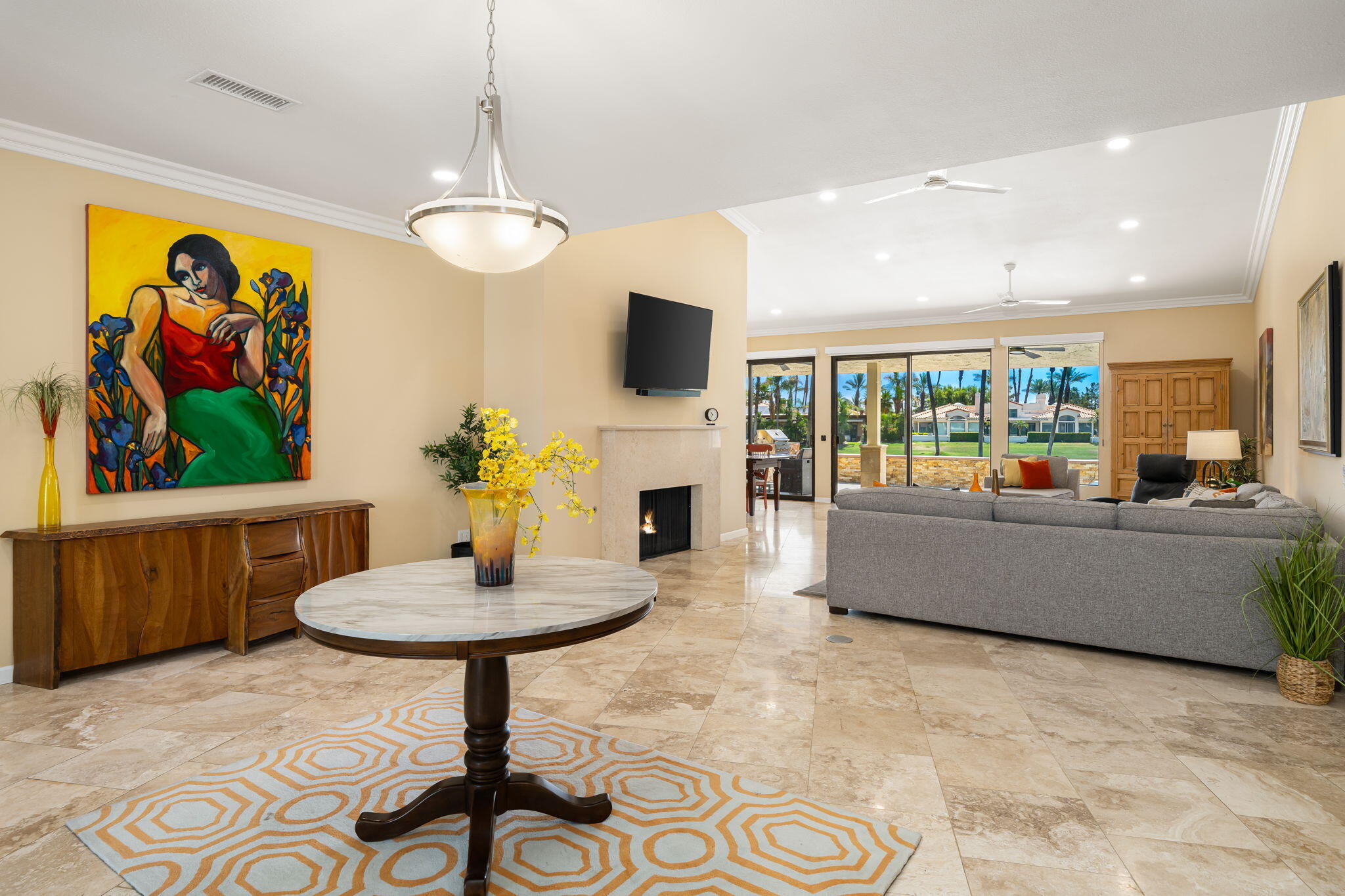 Paid Solar! Beautifully updated 3-bedroom, 3-bath home within Desert Horizons Country Club. Offering stunning views overlooking the 3rd Green, lush Fairway, and majestic Mountains beyond. Welcoming you into the spacious private gated courtyard through the Double Front leaded Doors sets the tone for this remodeled Garden floor plan designed for seamless entertaining, the Open Living Concept flows effortlessly, making it perfect for gatherings. An expansive Living Room area features a stately Fireplace as its focal point. Culinary enthusiasts will delight in the Gourmet Kitchen with Quartz Countertops, stylish Backsplash, rich Cabinetry, pull-out shelving, 6 Burner Viking Range, Double Ovens, Wine Cooler and a large side by side Electrolux built in Refrigerator/Freezer. Luxurious Primary Suite with its own Patio access, large Shower, walk-in closet offering a private retreat. The 2nd Guest Room includes an en-suite bath while the 3rd Guest room has full bath access, both offer custom vanities and stylish hardware. Upgrades & Modern Touches; New AC units, ceiling fans, crown molding, baseboards, gorgeous Travertine Flooring throughout main areas and new Porcelain tile flooring in the Bedrooms and Baths. Relax and unwind as you step outdoors to the extended back patio complete with a custom built BBQ~ and encased in Slate Rock providing picturesque Views of the 3rd Green and surrounding Mountains. Just steps to the Community Pool. A 2 Car + Golf Cart garage completes your picture-perfect lifestyle at this premiere Indian Wells location. Come and enjoy what Desert Horizons has to offer, 18 Hole Private Golf, Dining, State of the Art Fitness Center, Tennis & Pickleball. Owner open to Leasing home for $10,000 (partially furnished) call for more details.Interested in this Listing?