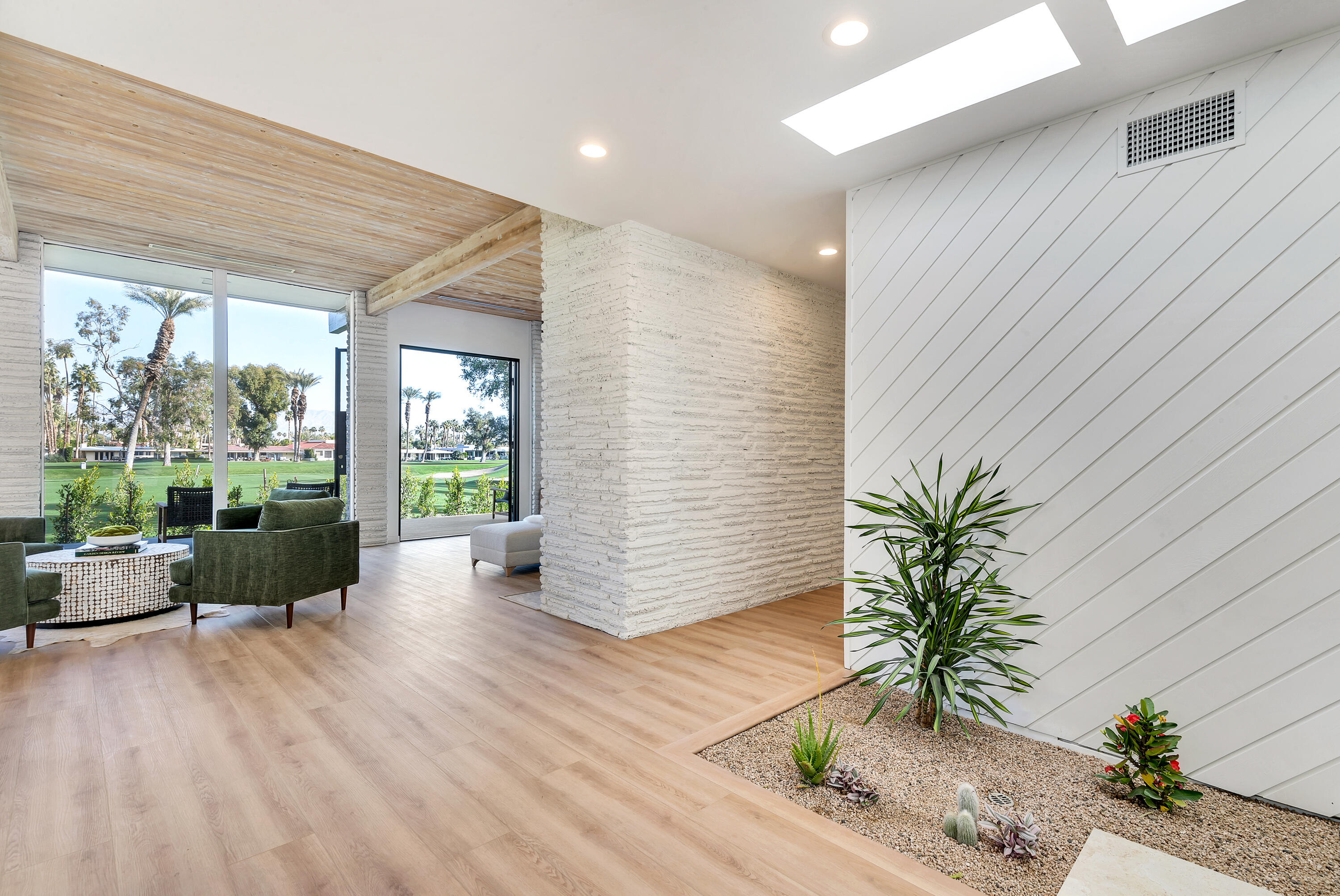 Fully remodeled Indian Wells Country Club golf course home with mountain views and no HOA!! Nestled in between the mountains and golf course sits this beautifully remodeled mid-century modern home. Reimagined for a modern convenient lifestyle, this home boasts all the latest comforts while retaining the classic architecture of the past. Views in every direction as you are surrounded by layers of mountains and the number 2 green of the historic Classic golf course played in the Bob Hope Classic. The backyard has been fully remodeled with new pool/spa and equipment, turf, Sonos speaker system, new exterior lighting, and landscape that provides privacy and views at the same time. Upon entry you will find 12 foot floor to ceiling solid glass pane windows. Natural light abounds throughout this open reconstructed design for ease of movement throughout the home. With new flooring, kitchen, and bathrooms, this light and bright home fulfill all of your needs. Entertain family and friends in the 3 main floor bedrooms with en suite bathrooms, or enjoy the basement bedroom with sitting/media/social room with a hidden wine cellar. There is also an office that could be used as a small fifth bedroom if needed. Creativity and craftsmanship has delivered this home to its current splendor. Live the Indian Wells golf course dream.Interested in this Listing?