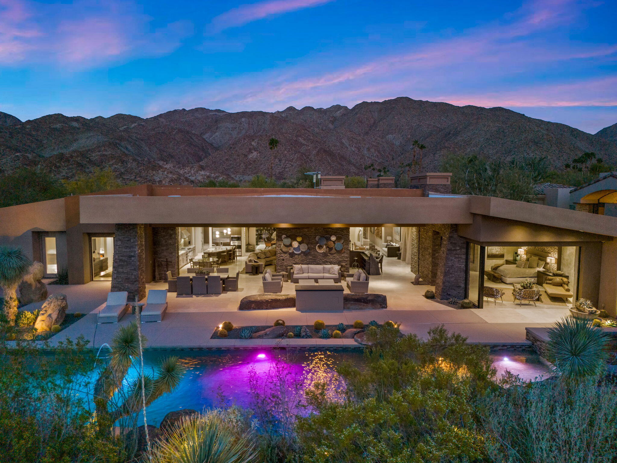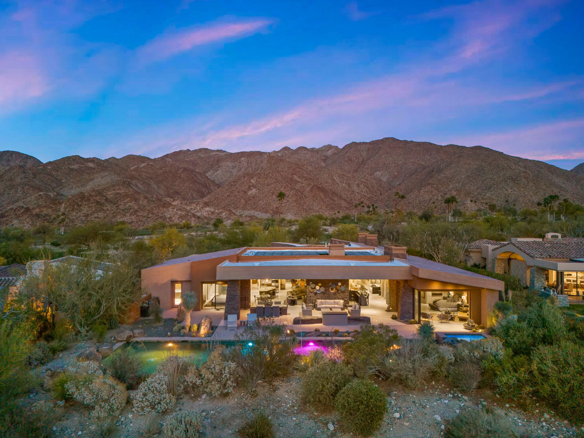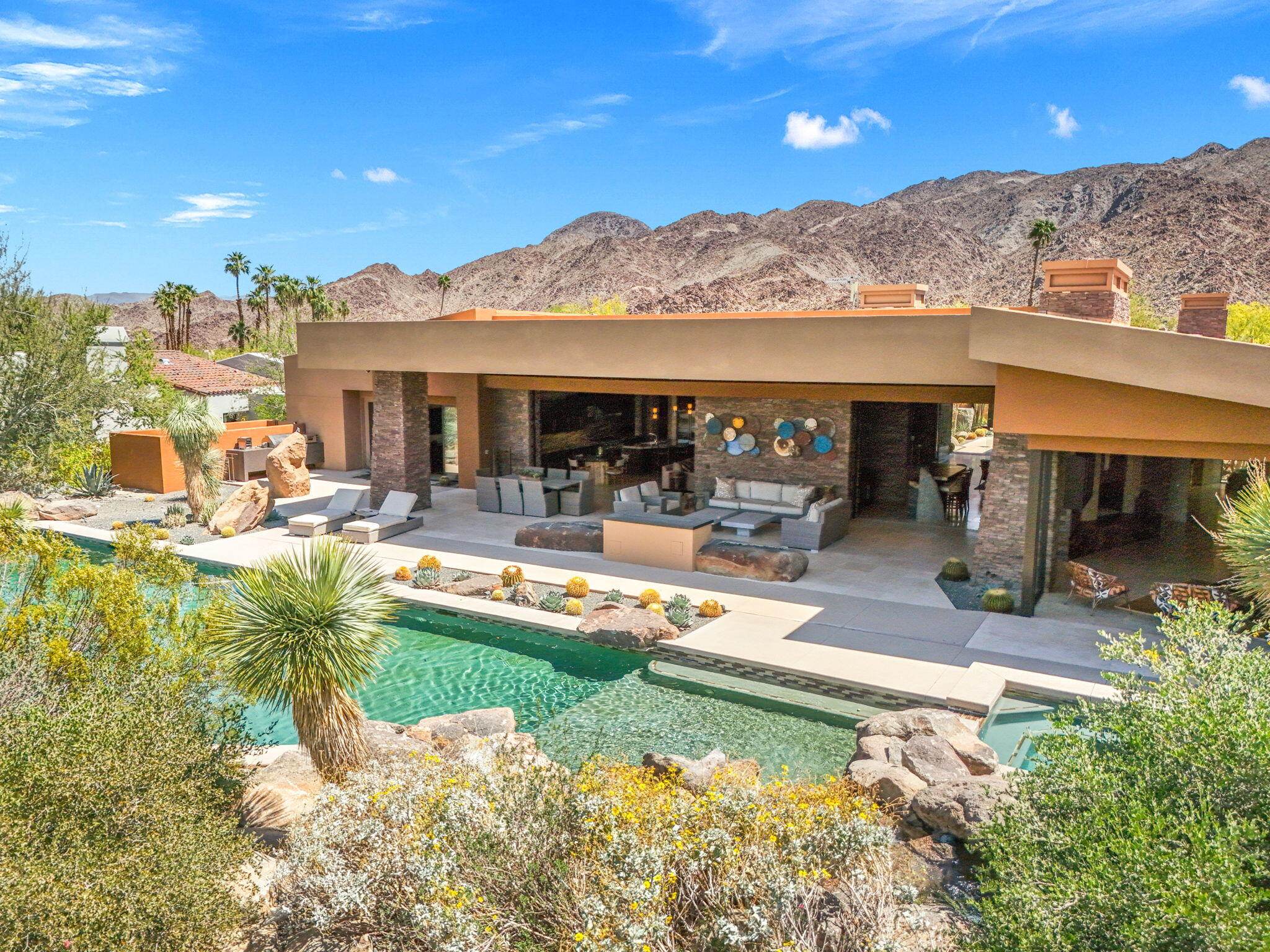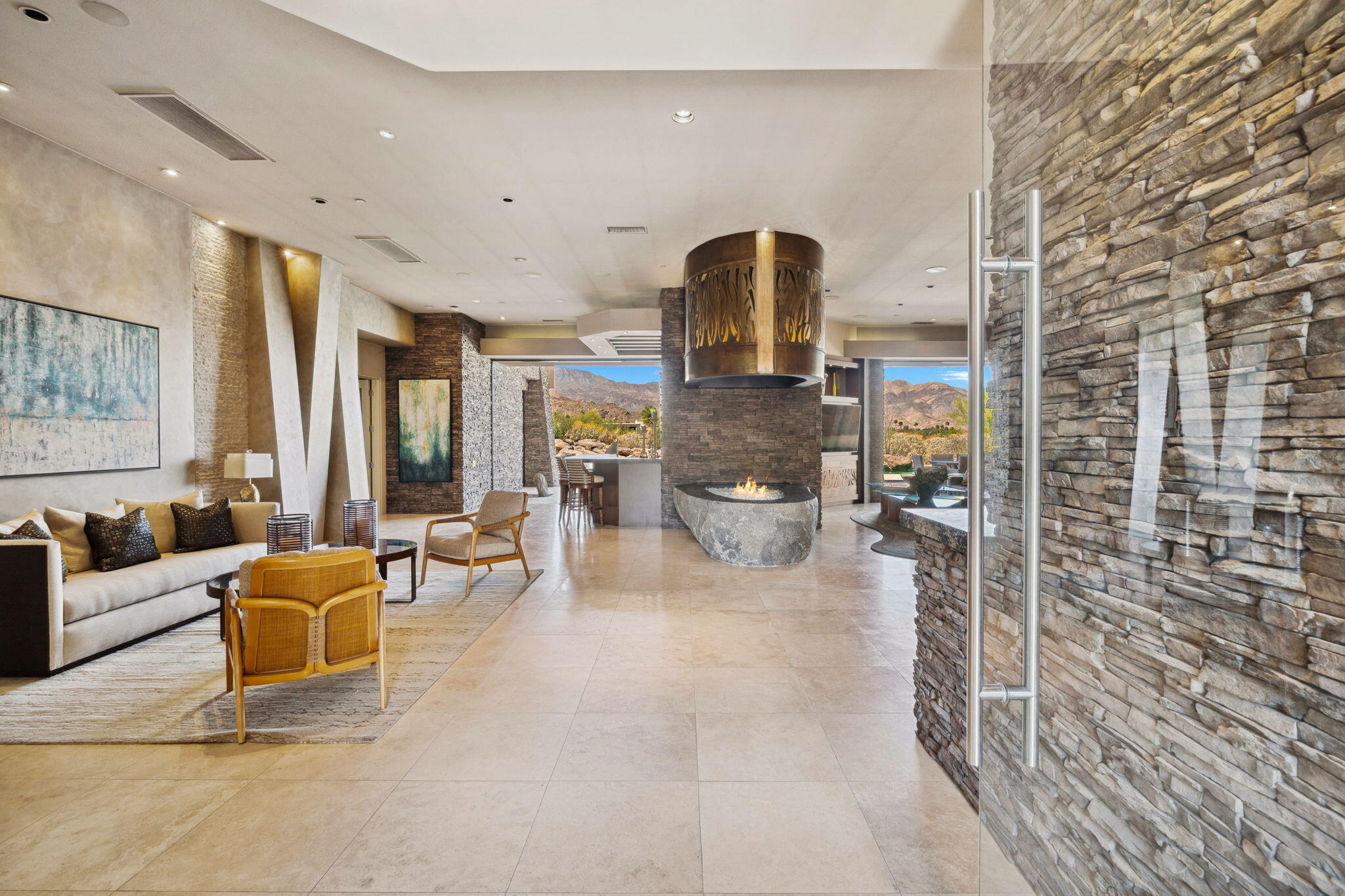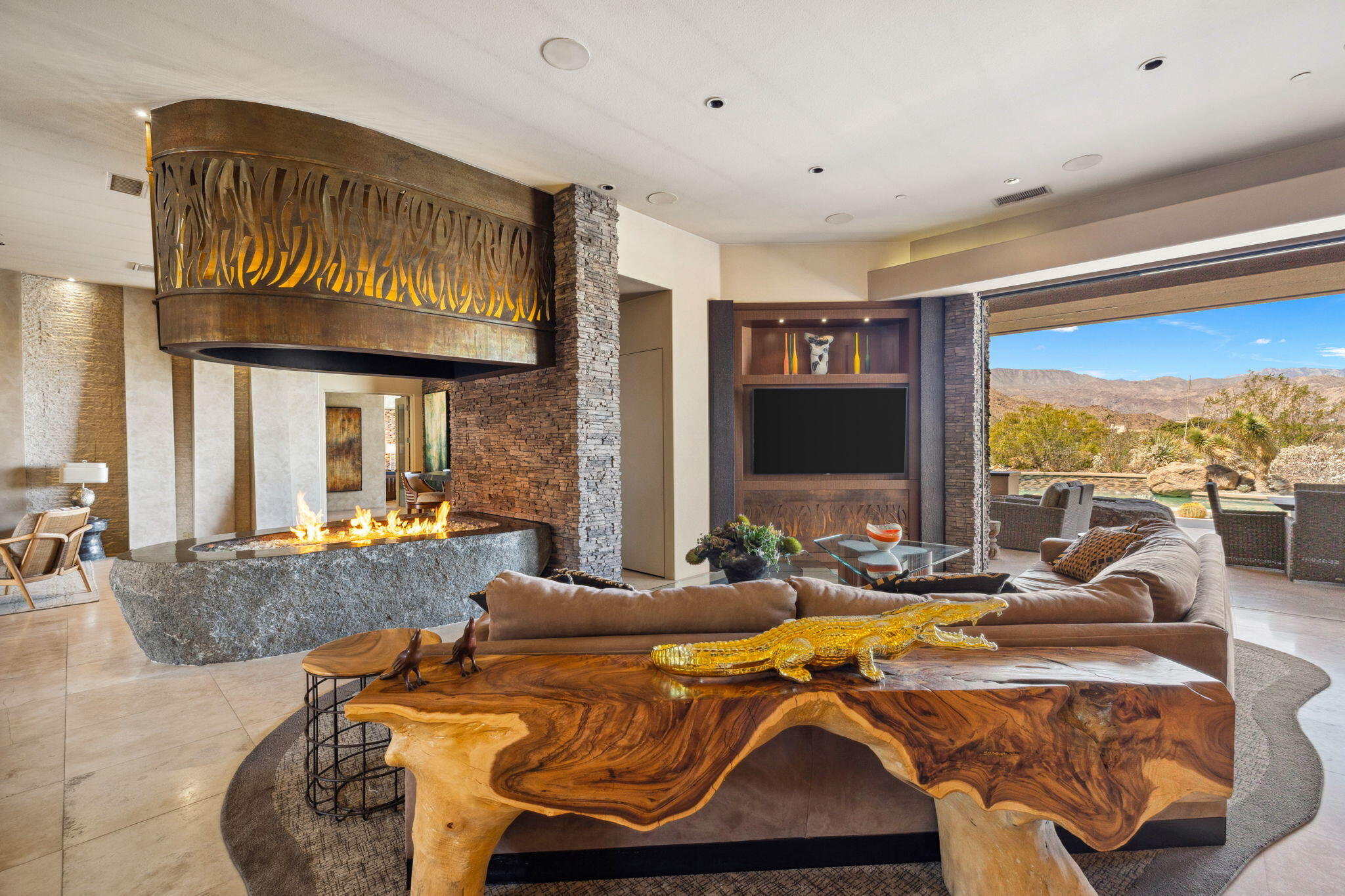 Welcome to a stunning architectural masterpiece by acclaimed luxury builder Foxx Constuction Company, with visionary design by Angela Wells. Perfectly situated on a 22,651 sq ft lot overlooking the 13th hole of the exclusive Reserve Club in Indian Wells, this custom 6,135 sq ft estate offers the pinnacle of desert luxury.Inside, you'll find five expansive en suite bedrooms and five and a half bathrooms, all set against a backdrop of elegant travertine tile flooring. Celebrated in multiple design publications for its bold architecture and integration of natural elements, this home is both a serene sanctuary and a sculptural work of art.At its core, a dramatic fireplace carved from a single, massive boulder creates a commanding focal point, anchoring the home's organic aesthetic. In the primary bath, an exquisite stone soaking tub--also carved from a natural boulder--offers a spa-like escape steeped in earthy tranquility.Thoughtfully designed for both relaxation and entertainment, the home features a soundproof theater, a temperature-controlled wine room, and a sleek wet bar. Expansive retractable doors blend indoor and outdoor living, opening to a private resort-style backyard.Outside, take in sweeping west-facing mountain views beside a spectacular lap pool with waterfall features, pop-up TV, dual fire pits, and a built-in gas BBQ. A misting system and built-in patio heaters ensure year-round comfort, while a secluded outdoor shower just off the primary suite provides the ultimate retreat.Residents of The Reserve Club enjoy an unmatched lifestyle with access to a world-class, 18-hole championship golf course designed by Tom Weiskopf & Jay Morrish, an award-winning clubhouse, a premier fitness and wellness center, tennis and pickleball courts, and a vibrant social scene--all within a private, guard-gated community.This is more than a residence--it's a refined expression of luxury, design, and desert serenity.Interested in this Listing?