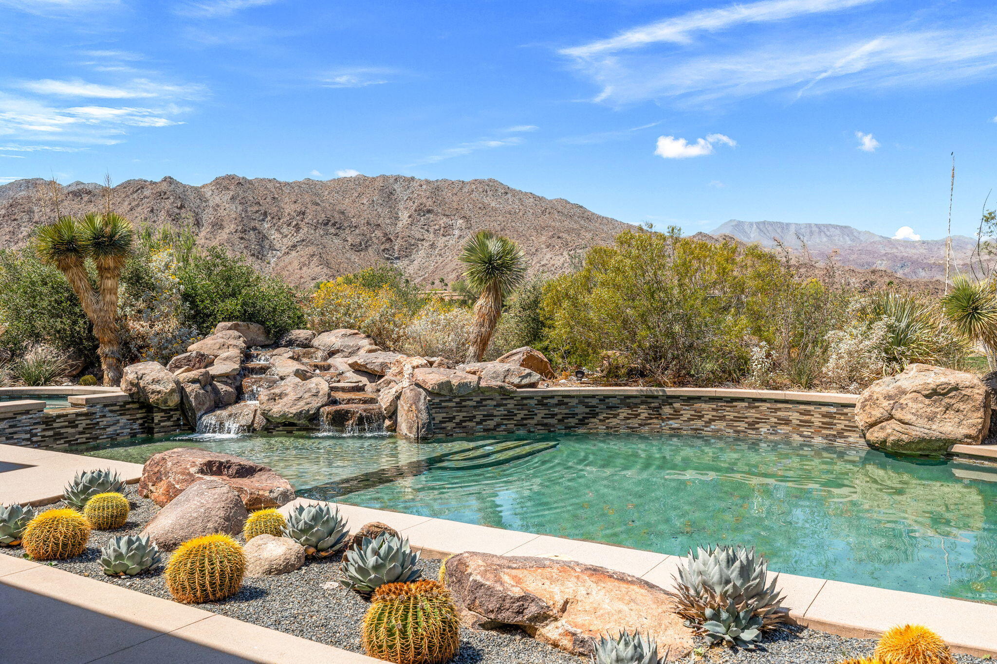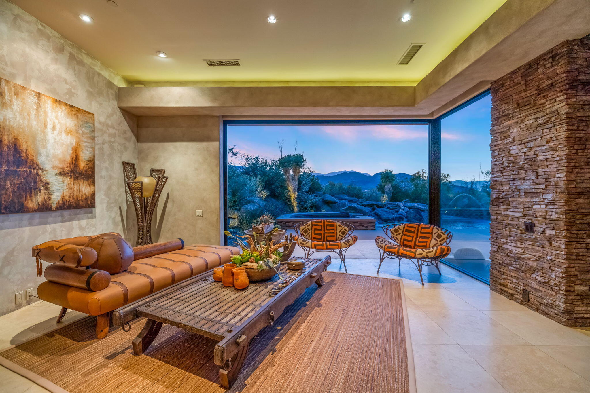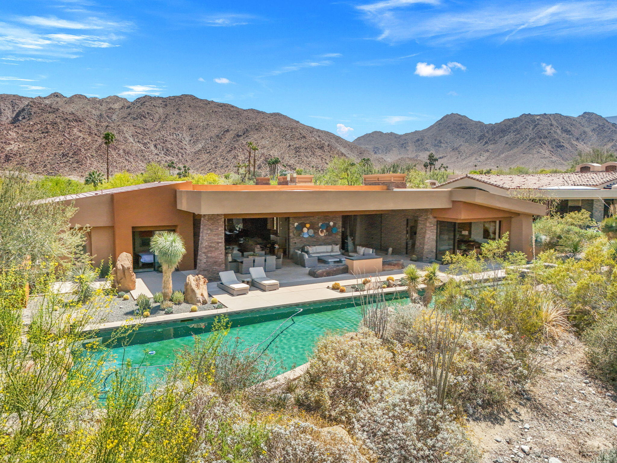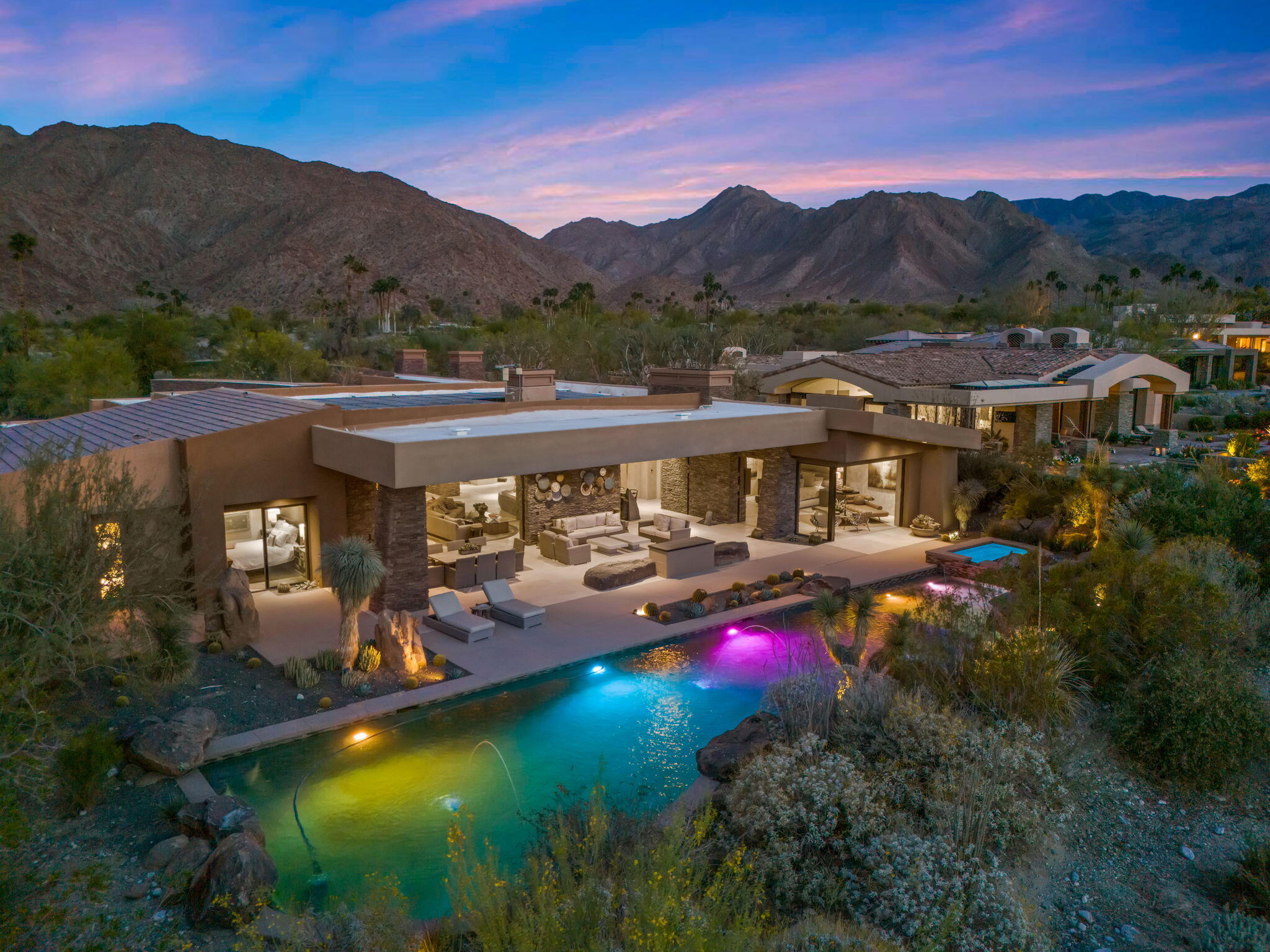 Welcome to a stunning architectural masterpiece by acclaimed luxury builder Foxx Constuction Company, with visionary design by Angela Wells. Perfectly situated on a 22,651 sq ft lot overlooking the 13th hole of the exclusive Reserve Club in Indian Wells, this custom 6,135 sq ft estate offers the pinnacle of desert luxury.Inside, you'll find five expansive en suite bedrooms and five and a half bathrooms, all set against a backdrop of elegant travertine tile flooring. Celebrated in multiple design publications for its bold architecture and integration of natural elements, this home is both a serene sanctuary and a sculptural work of art.At its core, a dramatic fireplace carved from a single, massive boulder creates a commanding focal point, anchoring the home's organic aesthetic. In the primary bath, an exquisite stone soaking tub--also carved from a natural boulder--offers a spa-like escape steeped in earthy tranquility.Thoughtfully designed for both relaxation and entertainment, the home features a soundproof theater, a temperature-controlled wine room, and a sleek wet bar. Expansive retractable doors blend indoor and outdoor living, opening to a private resort-style backyard.Outside, take in sweeping west-facing mountain views beside a spectacular lap pool with waterfall features, pop-up TV, dual fire pits, and a built-in gas BBQ. A misting system and built-in patio heaters ensure year-round comfort, while a secluded outdoor shower just off the primary suite provides the ultimate retreat.Residents of The Reserve Club enjoy an unmatched lifestyle with access to a world-class, 18-hole championship golf course designed by Tom Weiskopf & Jay Morrish, an award-winning clubhouse, a premier fitness and wellness center, tennis and pickleball courts, and a vibrant social scene--all within a private, guard-gated community.This is more than a residence--it's a refined expression of luxury, design, and desert serenity.Interested in this Listing?