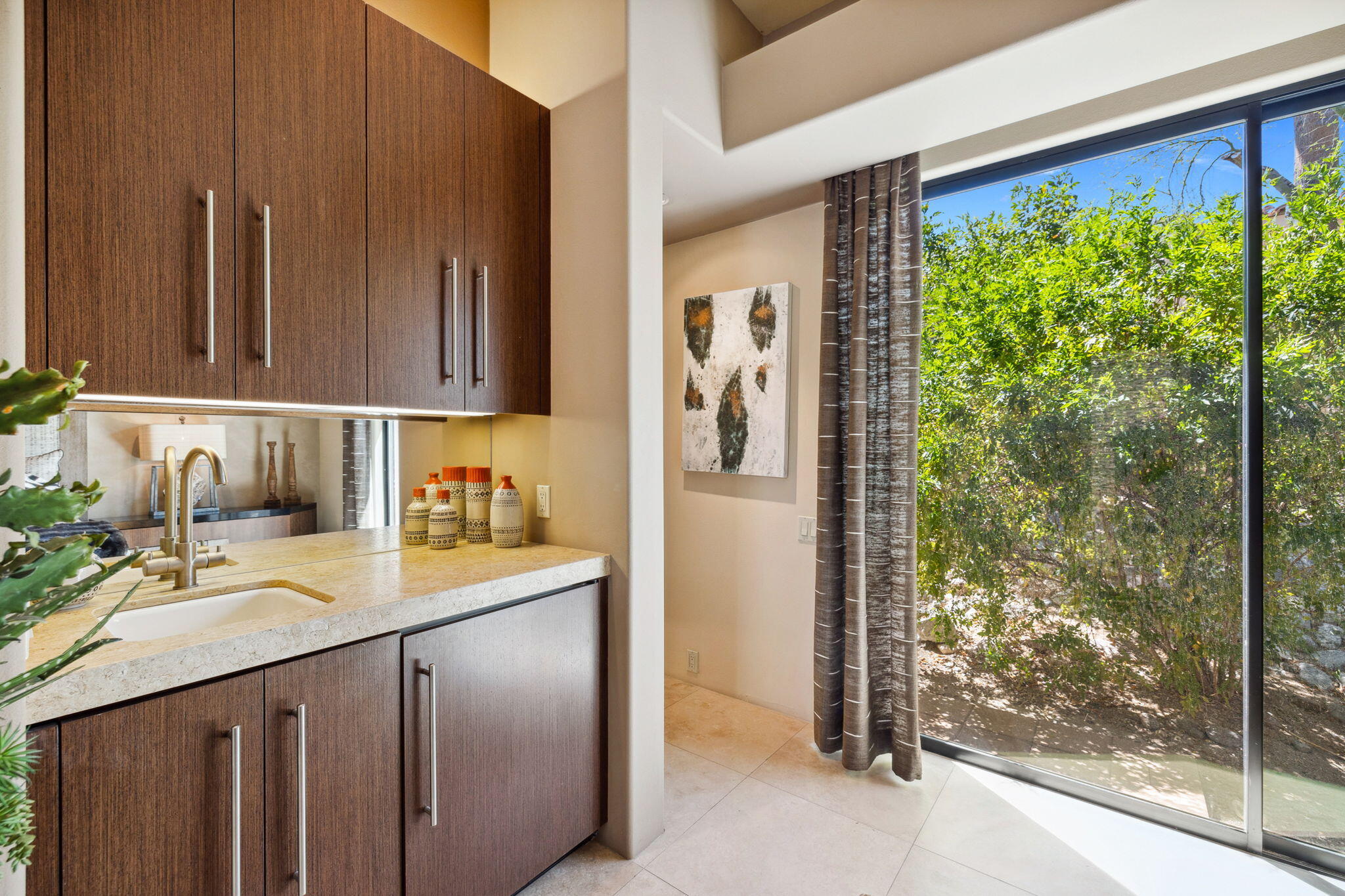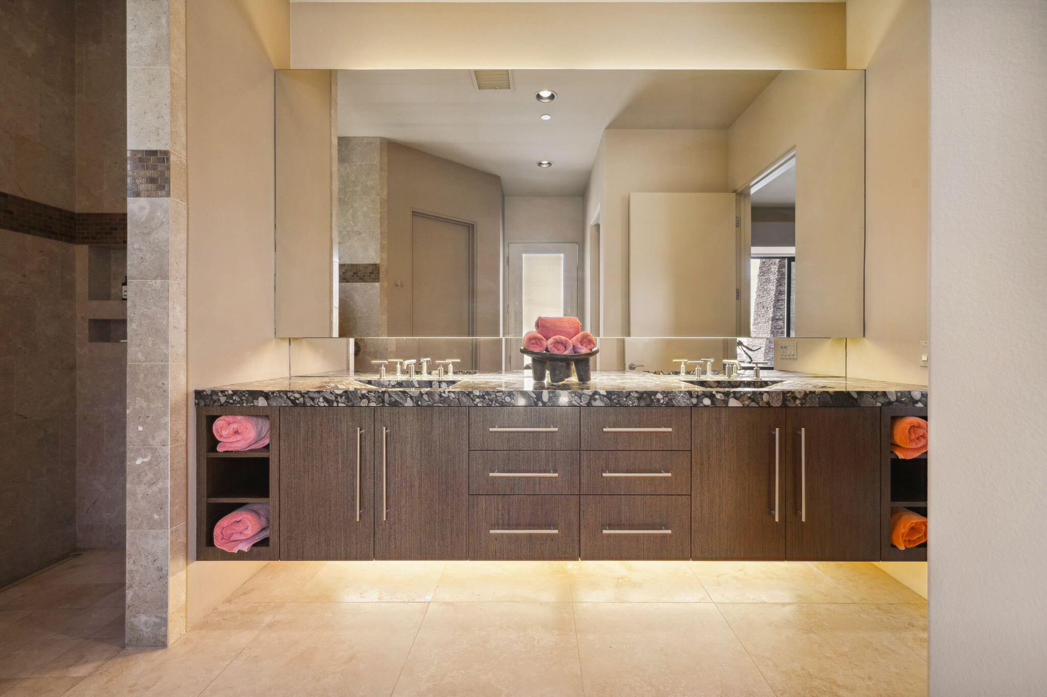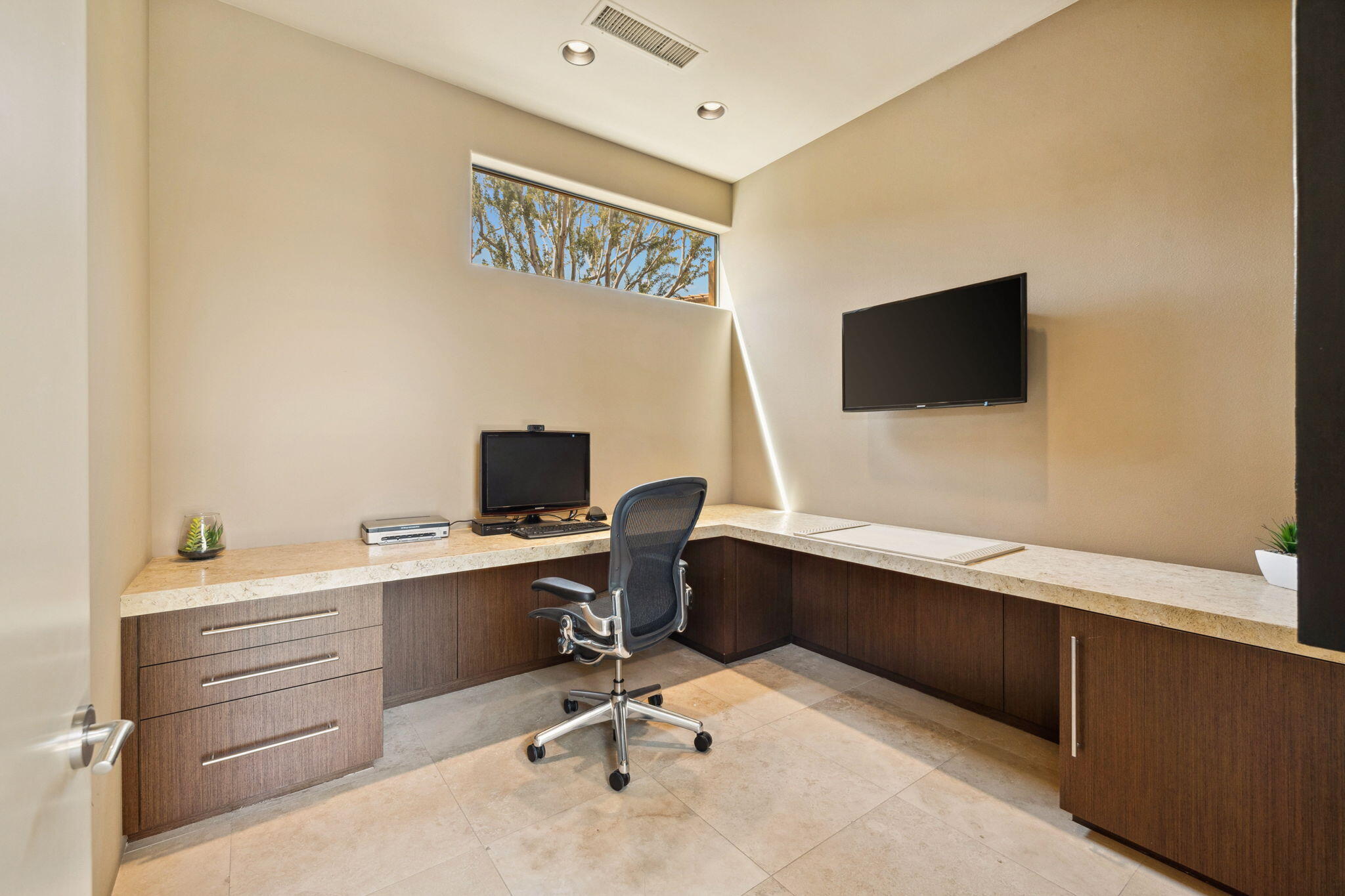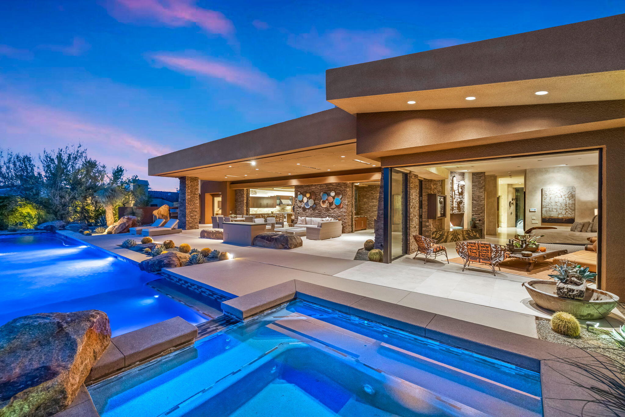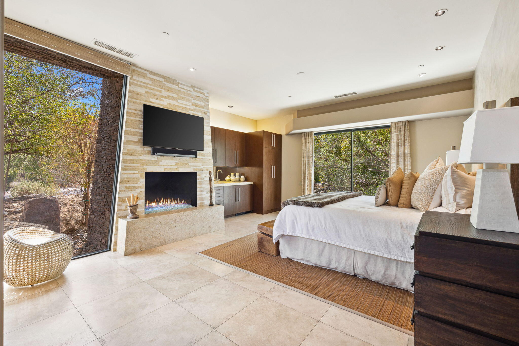 Welcome to a stunning architectural masterpiece by acclaimed luxury builder Foxx Constuction Company, with visionary design by Angela Wells. Perfectly situated on a 22,651 sq ft lot overlooking the 13th hole of the exclusive Reserve Club in Indian Wells, this custom 6,135 sq ft estate offers the pinnacle of desert luxury.Inside, you'll find five expansive en suite bedrooms and five and a half bathrooms, all set against a backdrop of elegant travertine tile flooring. Celebrated in multiple design publications for its bold architecture and integration of natural elements, this home is both a serene sanctuary and a sculptural work of art.At its core, a dramatic fireplace carved from a single, massive boulder creates a commanding focal point, anchoring the home's organic aesthetic. In the primary bath, an exquisite stone soaking tub--also carved from a natural boulder--offers a spa-like escape steeped in earthy tranquility.Thoughtfully designed for both relaxation and entertainment, the home features a soundproof theater, a temperature-controlled wine room, and a sleek wet bar. Expansive retractable doors blend indoor and outdoor living, opening to a private resort-style backyard.Outside, take in sweeping west-facing mountain views beside a spectacular lap pool with waterfall features, pop-up TV, dual fire pits, and a built-in gas BBQ. A misting system and built-in patio heaters ensure year-round comfort, while a secluded outdoor shower just off the primary suite provides the ultimate retreat.Residents of The Reserve Club enjoy an unmatched lifestyle with access to a world-class, 18-hole championship golf course designed by Tom Weiskopf & Jay Morrish, an award-winning clubhouse, a premier fitness and wellness center, tennis and pickleball courts, and a vibrant social scene--all within a private, guard-gated community.This is more than a residence--it's a refined expression of luxury, design, and desert serenity.Interested in this Listing?