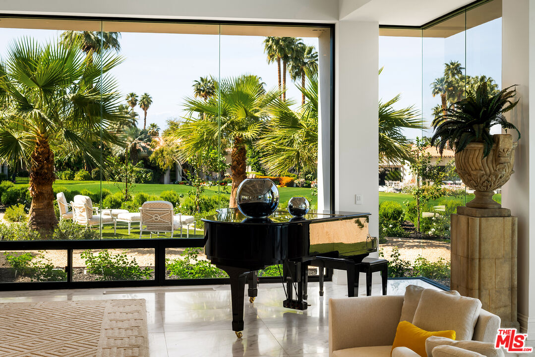 Commanding one of the most significant and private double lots within the esteemed Vintage Club ranked the #1 Platinum Club in California and #3 in the nation this extraordinary estate is a once-in-a-generation offering. Reminiscent of the iconic Sunnylands estate, it embodies a rare blend of timeless elegance, architectural presence, and effortless livability. Spanning grand proportions yet designed with intimacy in mind, the home adapts seamlessly to any lifestyle. Whether serving as a serene personal sanctuary, hosting family gatherings, or entertaining on a large scale, the residence feels perfectly proportioned at every turn. Set against a backdrop of panoramic golf course, lake, and mountain views, the grounds offer absolute privacy and resort-level amenities. A hotel-sized pool, expansive lawns, rare specimen palms, mature citrus, and hundreds of Pope John Paul roses create a lush, tranquil atmosphere evocative of classic desert estates. At over 16,000 square feet, the interiors have been completely reimagined with uncompromising attention to detail. The primary suite is a private retreat, featuring nearly 2,000 square feet of custom wardrobe space and a luxurious bathroom clad in rare vanilla onyx. Six additional ensuite bedrooms, each appointed as a junior primary, offer exceptional comfort and privacy. Two detached guest houses provide independent living spaces, one with a full kitchen, both with private terraces. Uniquely positioned within The Vintage Club, this is the only residence to offer a second-story outdoor living area comprising a refined sitting space and open-air deck with sweeping views of the lake and Chocolate Mountains, further distinguishing it within this prestigious community. A dedicated entertainment level, inspired by the glamour of the Beverly Hills Hotel, includes a full bar, state-of-the-art screening room, kitchen, game lounge, pool table, gym, and steam room creating an immersive experience that rivals any private resort. With over 4,000 square feet of covered terraces and a private upper-level deck overlooking the lake and par 3, the home is designed to celebrate the beauty and serenity of its surroundings. Every finish, from solid marble vanities to the finest architectural materials, speaks to the estate's unmatched quality. Truly irreplaceable in scale, setting, and execution, this is more than a residence it is a legacy.Interested in this Listing?