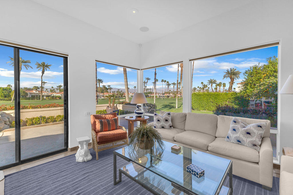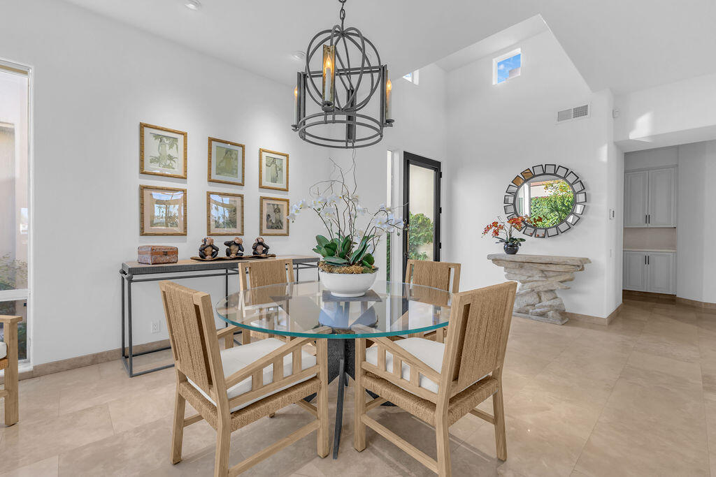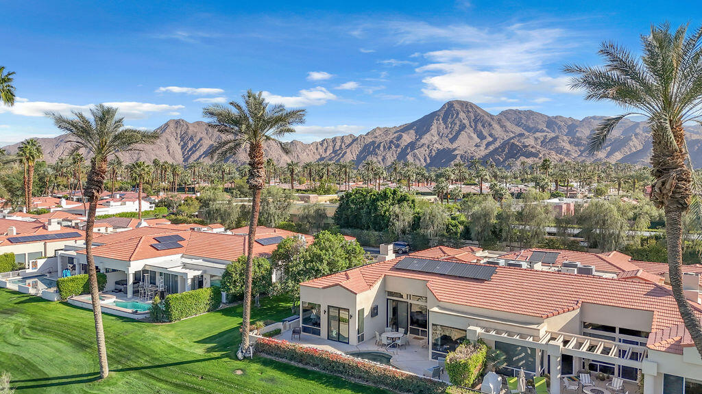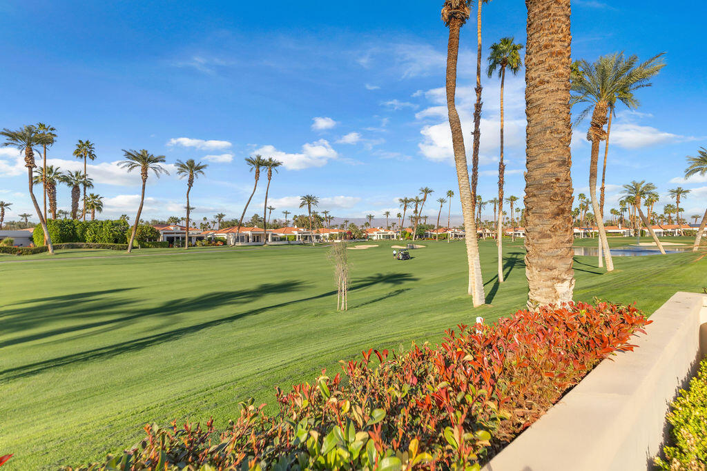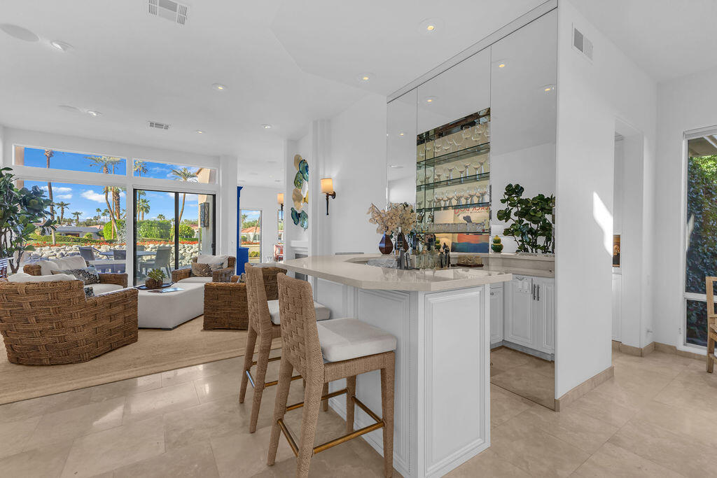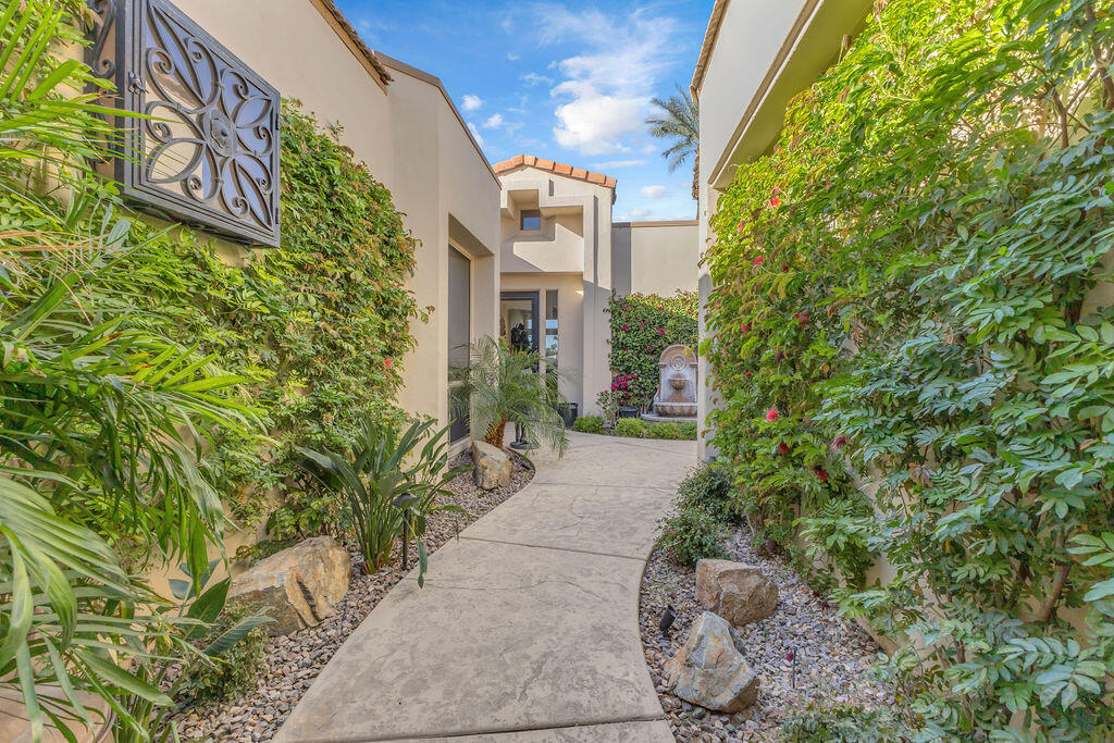 Welcome to your exquisite dream home, nestled within the exclusive Desert Horizons Country Club in the heart of Indian Wells. A beautifully landscaped courtyard welcomes you to this luxurious residence, where casual elegance and high-end designer touches are seamlessly blended. Prepare to be mesmerized by sweeping mountain views and pristine fairways, visible through soaring ceilings and expansive walls of glass that flood the home with natural light. This 3-bedroom, 3-bathroom home epitomizes luxury in every detail. The home boasts stunning travertine flooring throughout, creating a sophisticated and inviting atmosphere. There are two spacious bedrooms in the main house and a detached casita provides a private retreat with its own ensuite bathroom, perfect for guests. The chef-inspired kitchen, featuring modern appliances and sleek quartz countertops, is designed for culinary enthusiasts. The adjoining family room flows effortlessly onto the expansive patio, ideal for entertaining. The patio includes a private oversized spool for ultimate relaxation. The luxurious primary suite is your personal oasis, complete with an opulent ensuite bathroom and generous walk-in closet. Enjoy the tranquility of the serene views as you unwind in this peaceful retreat. Equipped with a solar system, this home ensures both sustainability and energy efficiency. Desert Horizons Country Club offers a newly remodeled clubhouse and world-class amenities, including a championship golf course designed by Ted Robinson, a sports pavilion, dining options, and state-of-the-art fitness facilities. Available Furnished. Call today to schedule a private showing.Interested in this Listing?
