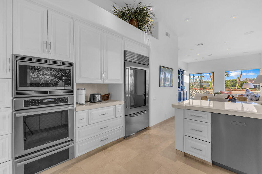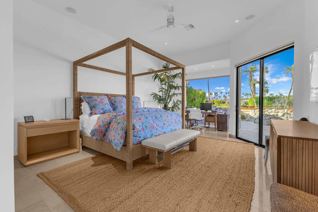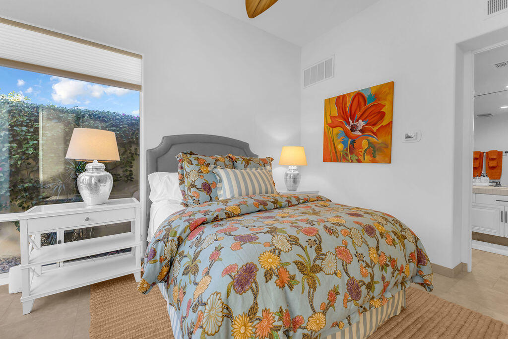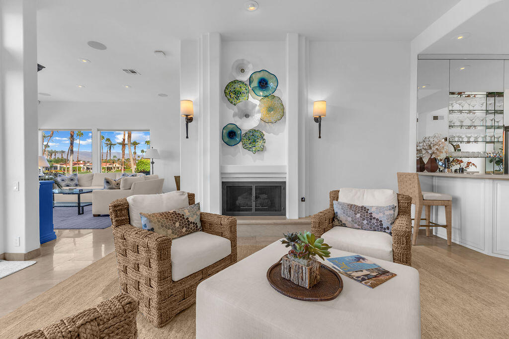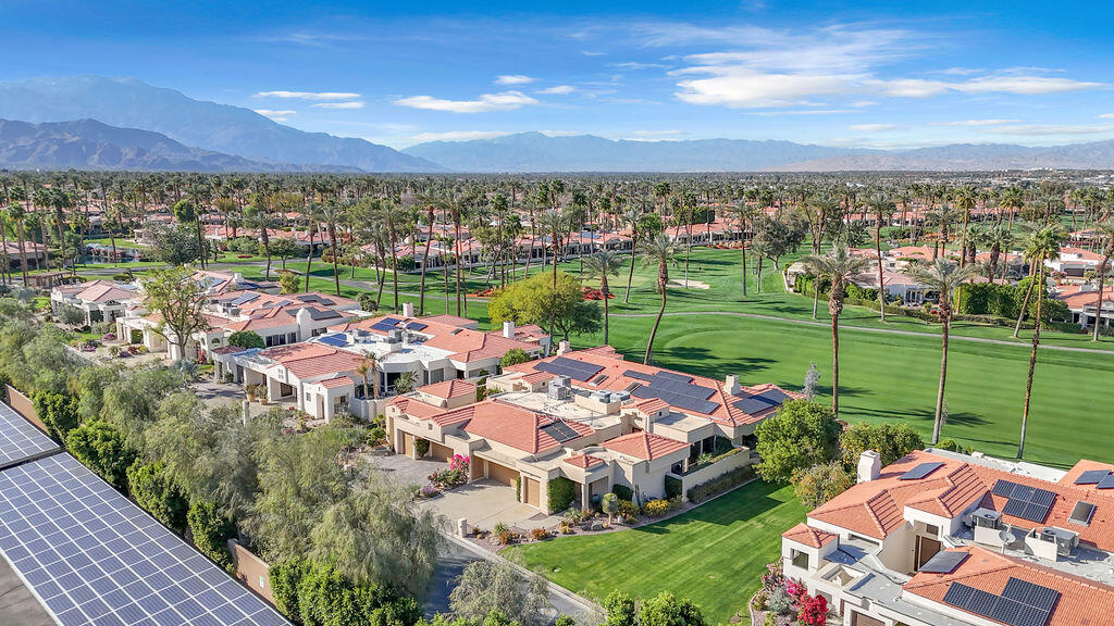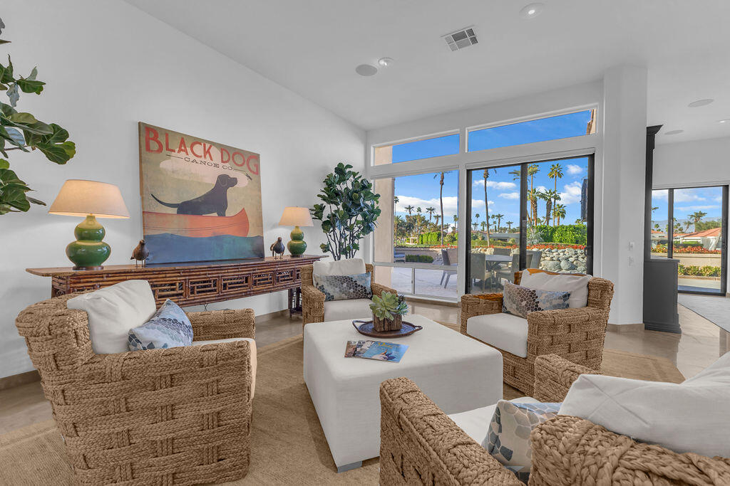 Welcome to your exquisite dream home, nestled within the exclusive Desert Horizons Country Club in the heart of Indian Wells. A beautifully landscaped courtyard welcomes you to this luxurious residence, where casual elegance and high-end designer touches are seamlessly blended. Prepare to be mesmerized by sweeping mountain views and pristine fairways, visible through soaring ceilings and expansive walls of glass that flood the home with natural light. This 3-bedroom, 3-bathroom home epitomizes luxury in every detail. The home boasts stunning travertine flooring throughout, creating a sophisticated and inviting atmosphere. There are two spacious bedrooms in the main house and a detached casita provides a private retreat with its own ensuite bathroom, perfect for guests. The chef-inspired kitchen, featuring modern appliances and sleek quartz countertops, is designed for culinary enthusiasts. The adjoining family room flows effortlessly onto the expansive patio, ideal for entertaining. The patio includes a private oversized spool for ultimate relaxation. The luxurious primary suite is your personal oasis, complete with an opulent ensuite bathroom and generous walk-in closet. Enjoy the tranquility of the serene views as you unwind in this peaceful retreat. Equipped with a solar system, this home ensures both sustainability and energy efficiency. Desert Horizons Country Club offers a newly remodeled clubhouse and world-class amenities, including a championship golf course designed by Ted Robinson, a sports pavilion, dining options, and state-of-the-art fitness facilities. Available Furnished. Call today to schedule a private showing.Interested in this Listing?