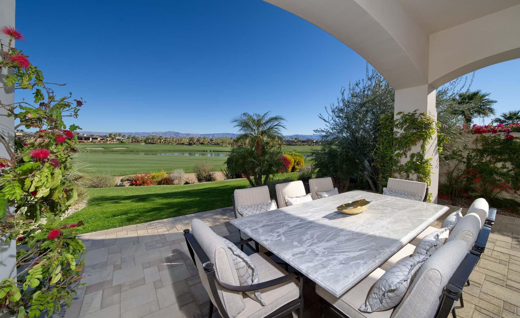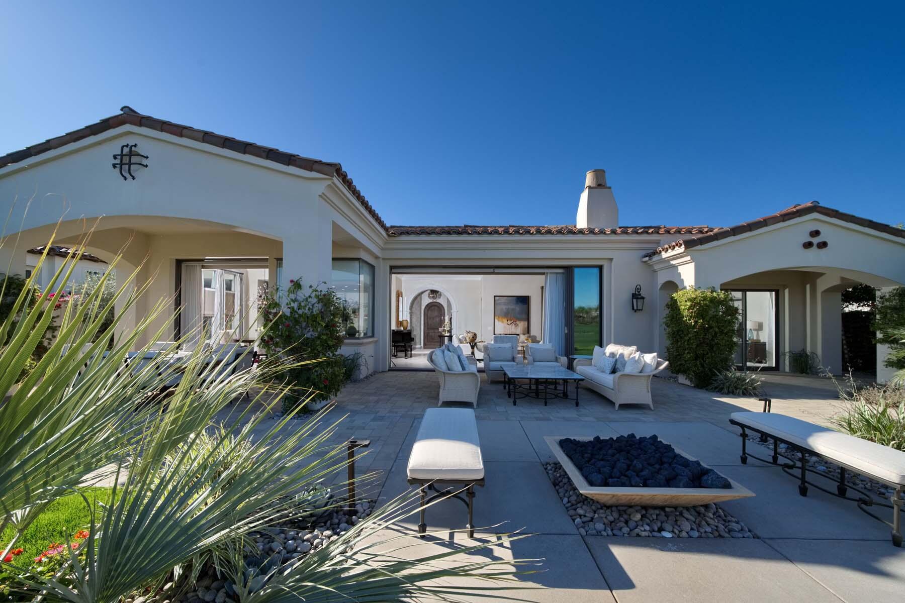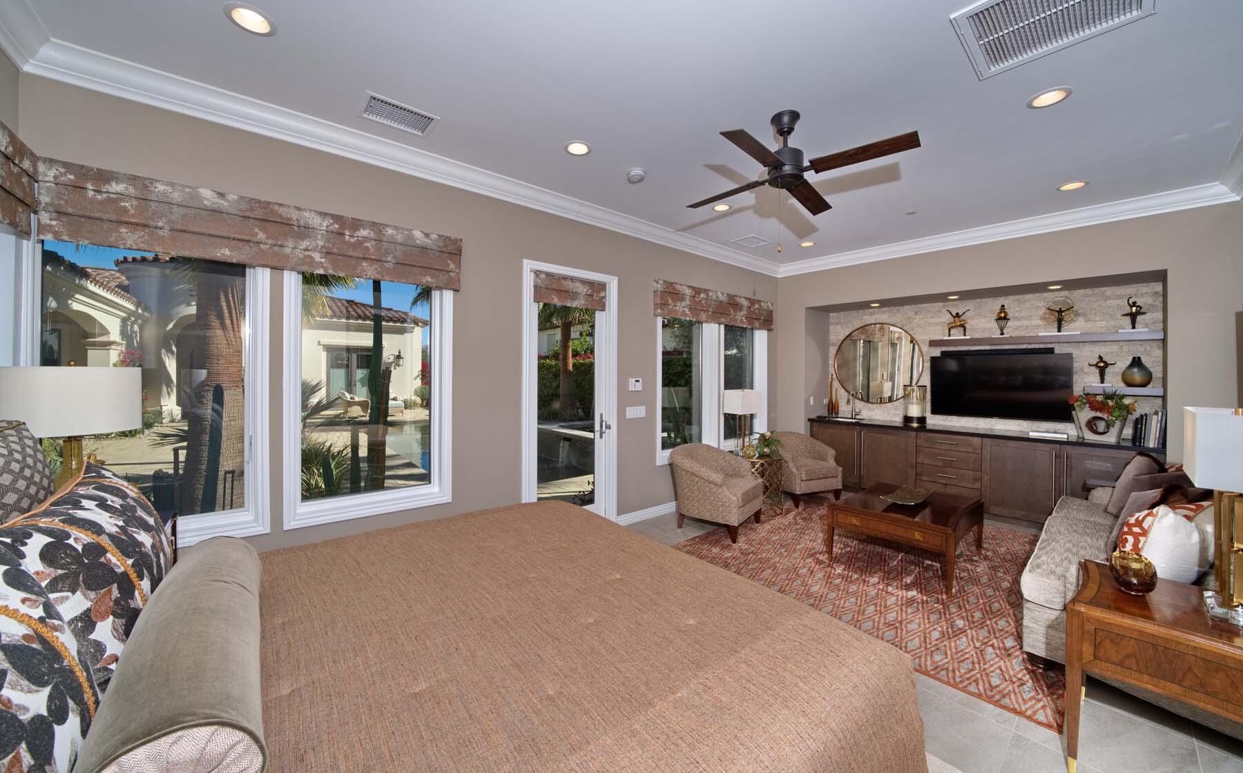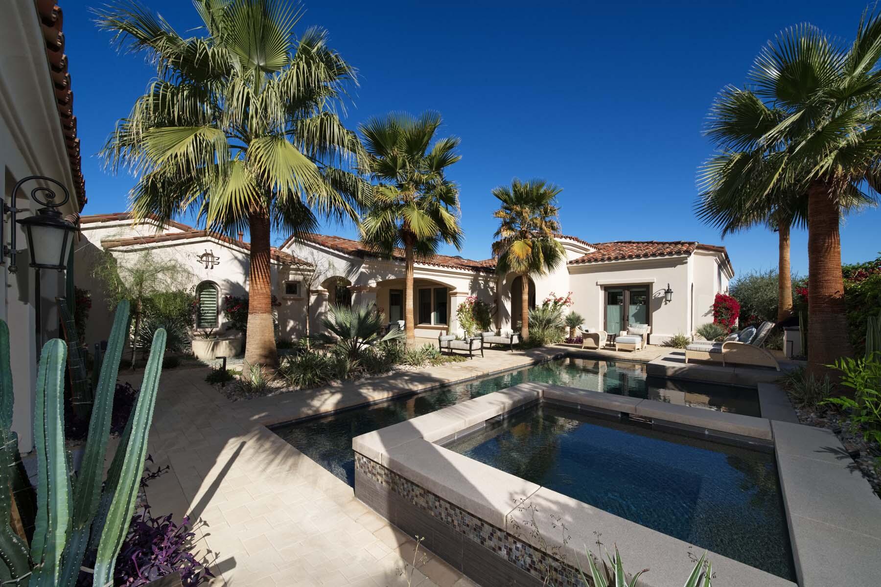 Nestled on the 17th hole of the signature North Course at Toscana Country Club, this exceptional Mediterranean-style home offers unrivaled panoramic views of the mountains and shimmering lake. The Early California Model 641, originally a builder's signature home built in 2018, has been thoughtfully enhanced with over $500,000 in upgrades since its completion, including more than $180,000 invested in landscaping alone. Impeccably designer-decorated and offered fully furnished, this residence provides a perfect balance of luxury, comfort, and style.Step inside to discover a light-filled open floor plan, where large pocket doors seamlessly blend indoor and outdoor living spaces, offering the best of desert living. The spacious great room is anchored by a stunning kitchen featuring slab-granite countertops, Sub-Zero and Wolf appliances, a generously sized island, and peninsula with counter-height seating--ideal for entertaining. A beautiful wet bar overlooks the backyard oasis, making it the perfect spot to relax and unwind while taking in the views.The courtyard is a standout feature, with a gorgeous pool and spa providing an idyllic retreat. The detached casita, with its private bath and separate entrance, offers an ideal space for guests. Whether hosting a gathering or enjoying quiet moments, this home provides the ultimate in desert living with every detail carefully curated for maximum comfort and elegance.Interested in this Listing?