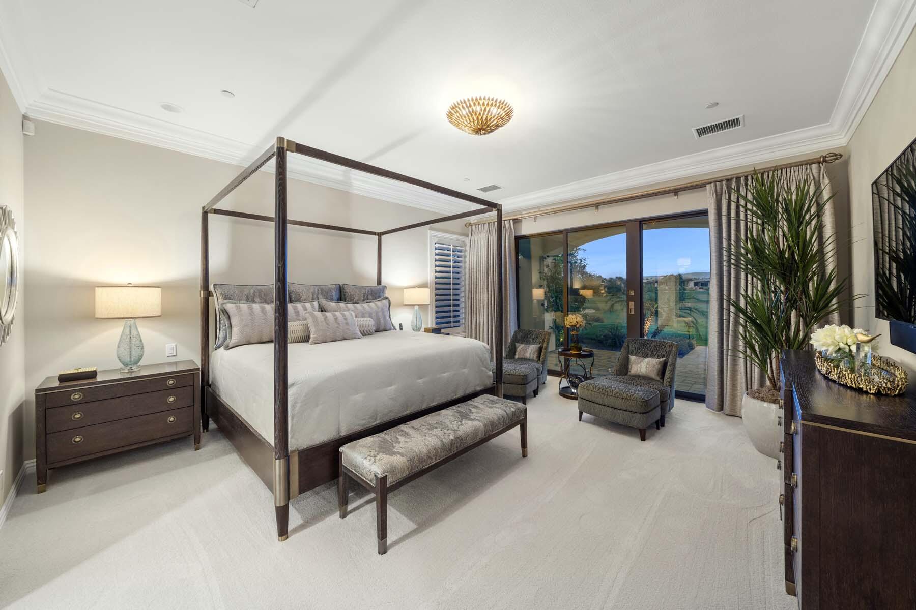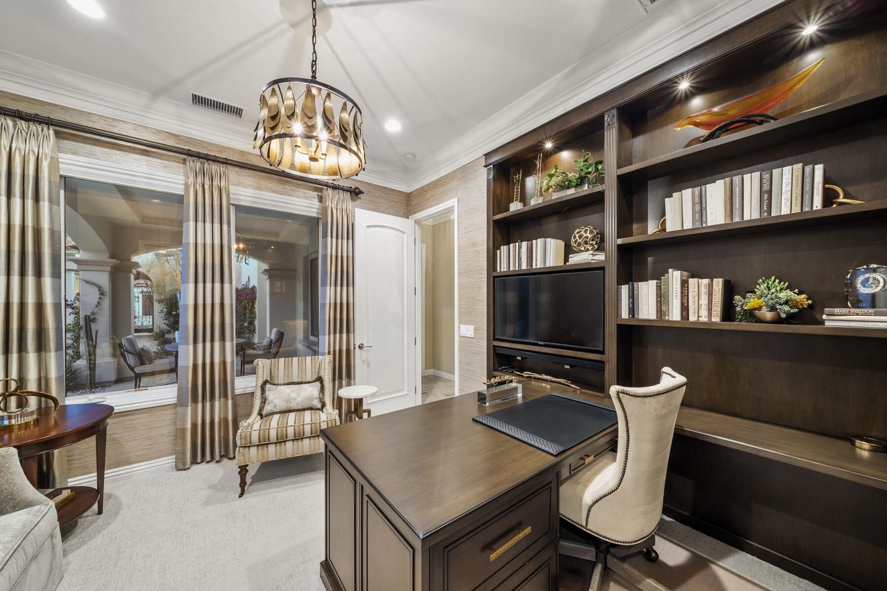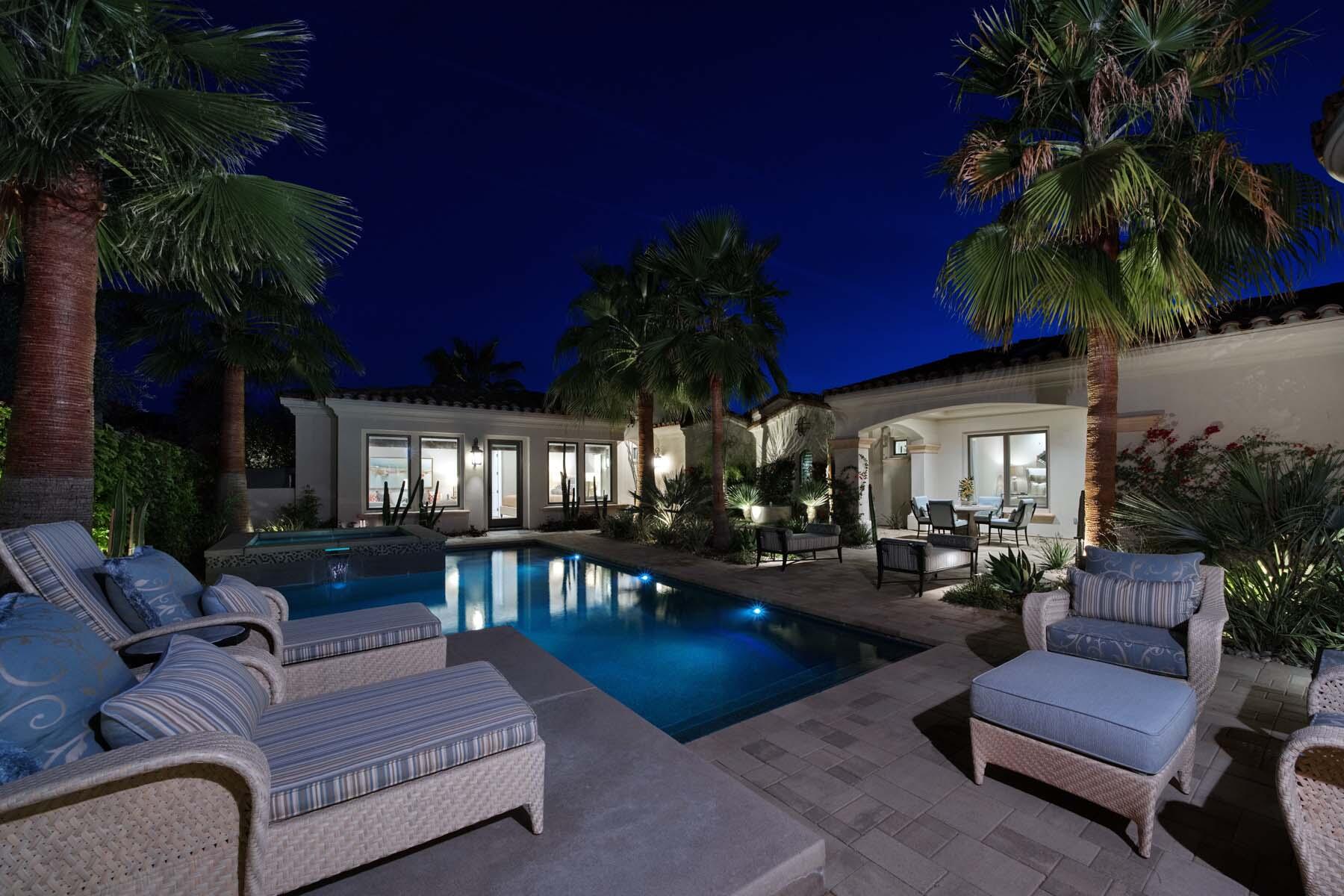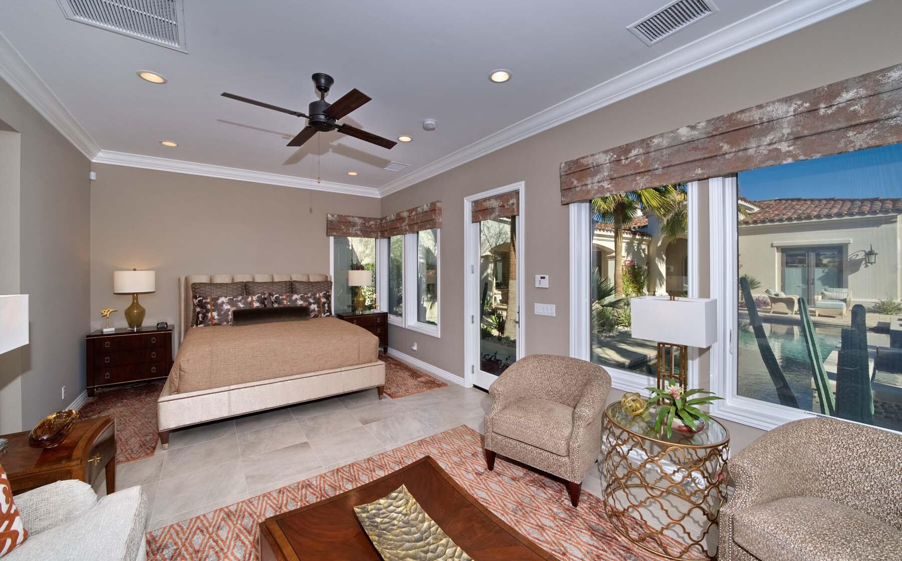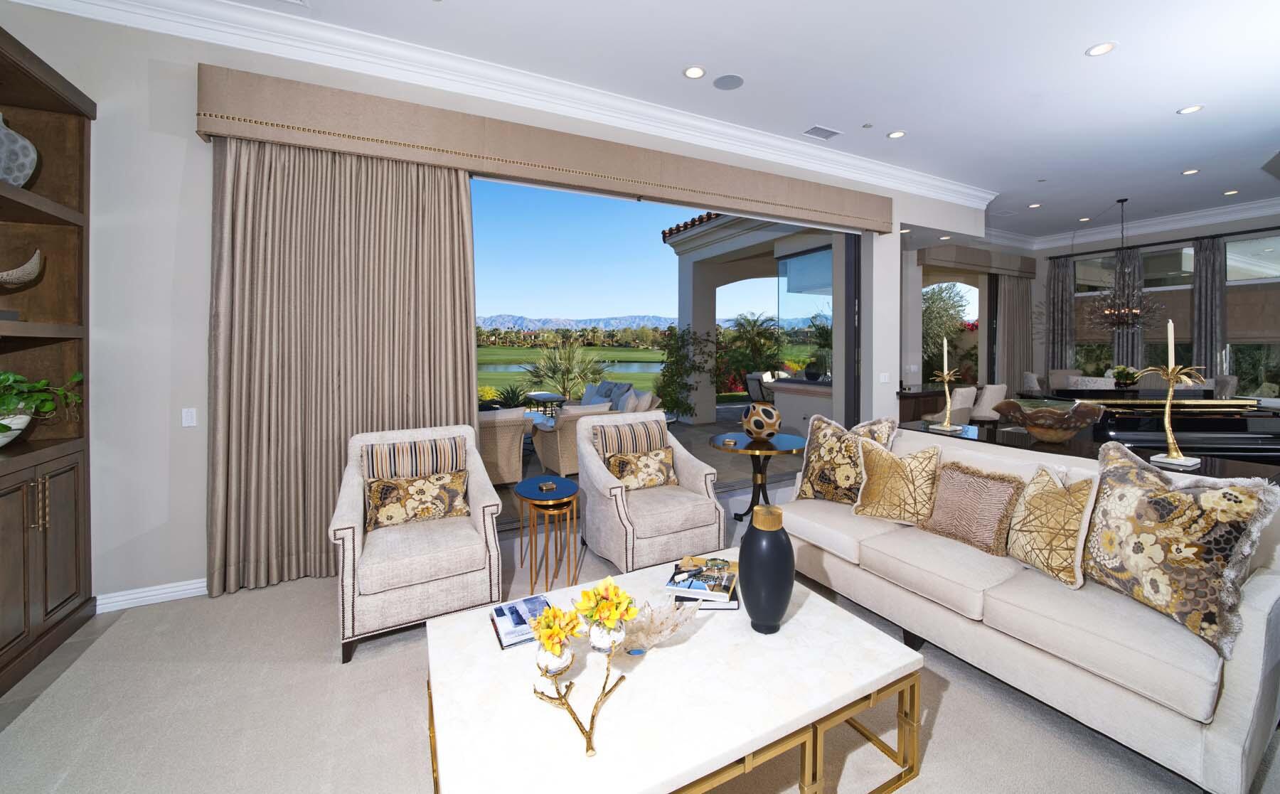 Nestled on the 17th hole of the signature North Course at Toscana Country Club, this exceptional Mediterranean-style home offers unrivaled panoramic views of the mountains and shimmering lake. The Early California Model 641, originally a builder's signature home built in 2018, has been thoughtfully enhanced with over $500,000 in upgrades since its completion, including more than $180,000 invested in landscaping alone. Impeccably designer-decorated and offered fully furnished, this residence provides a perfect balance of luxury, comfort, and style.Step inside to discover a light-filled open floor plan, where large pocket doors seamlessly blend indoor and outdoor living spaces, offering the best of desert living. The spacious great room is anchored by a stunning kitchen featuring slab-granite countertops, Sub-Zero and Wolf appliances, a generously sized island, and peninsula with counter-height seating--ideal for entertaining. A beautiful wet bar overlooks the backyard oasis, making it the perfect spot to relax and unwind while taking in the views.The courtyard is a standout feature, with a gorgeous pool and spa providing an idyllic retreat. The detached casita, with its private bath and separate entrance, offers an ideal space for guests. Whether hosting a gathering or enjoying quiet moments, this home provides the ultimate in desert living with every detail carefully curated for maximum comfort and elegance.Interested in this Listing?