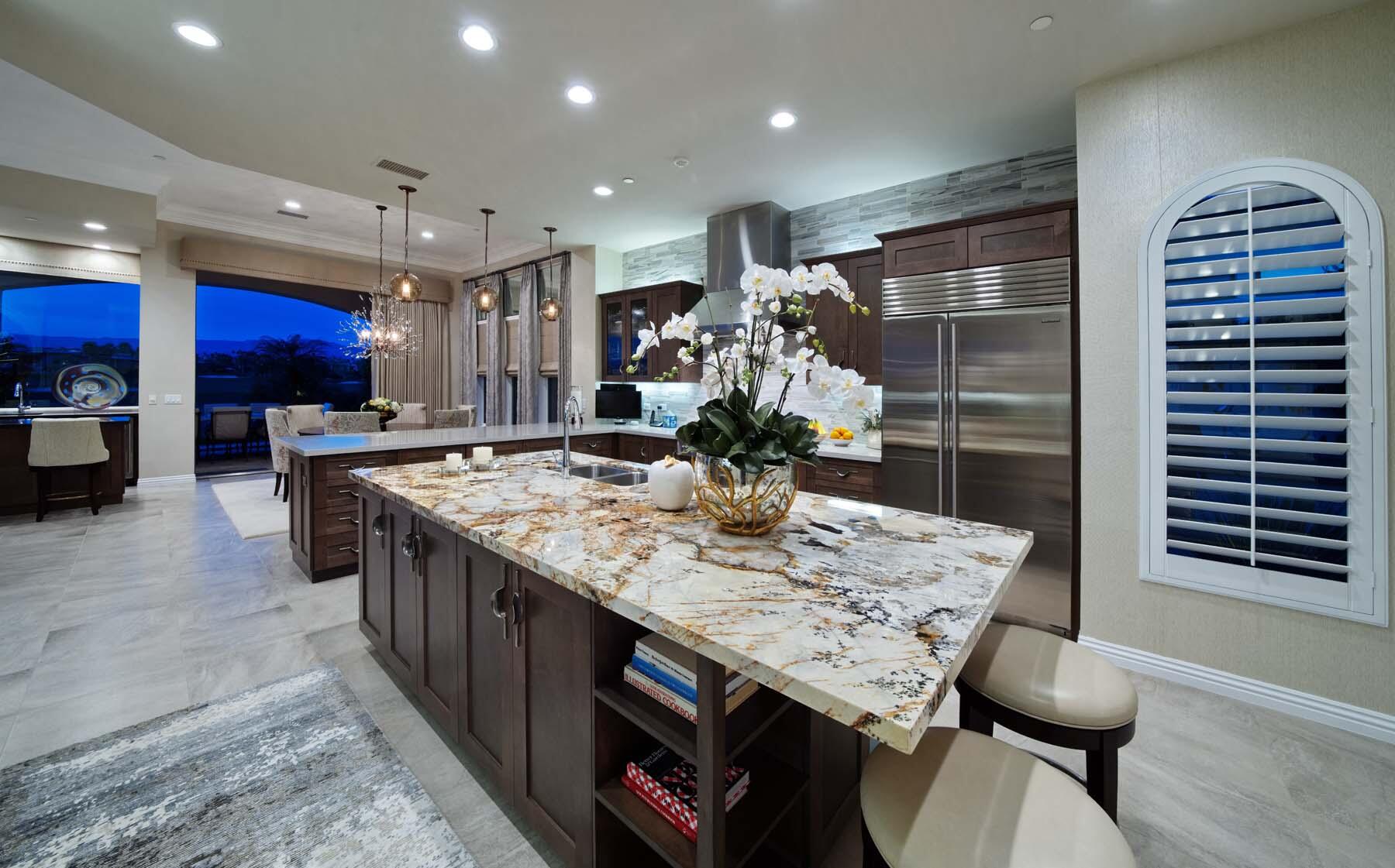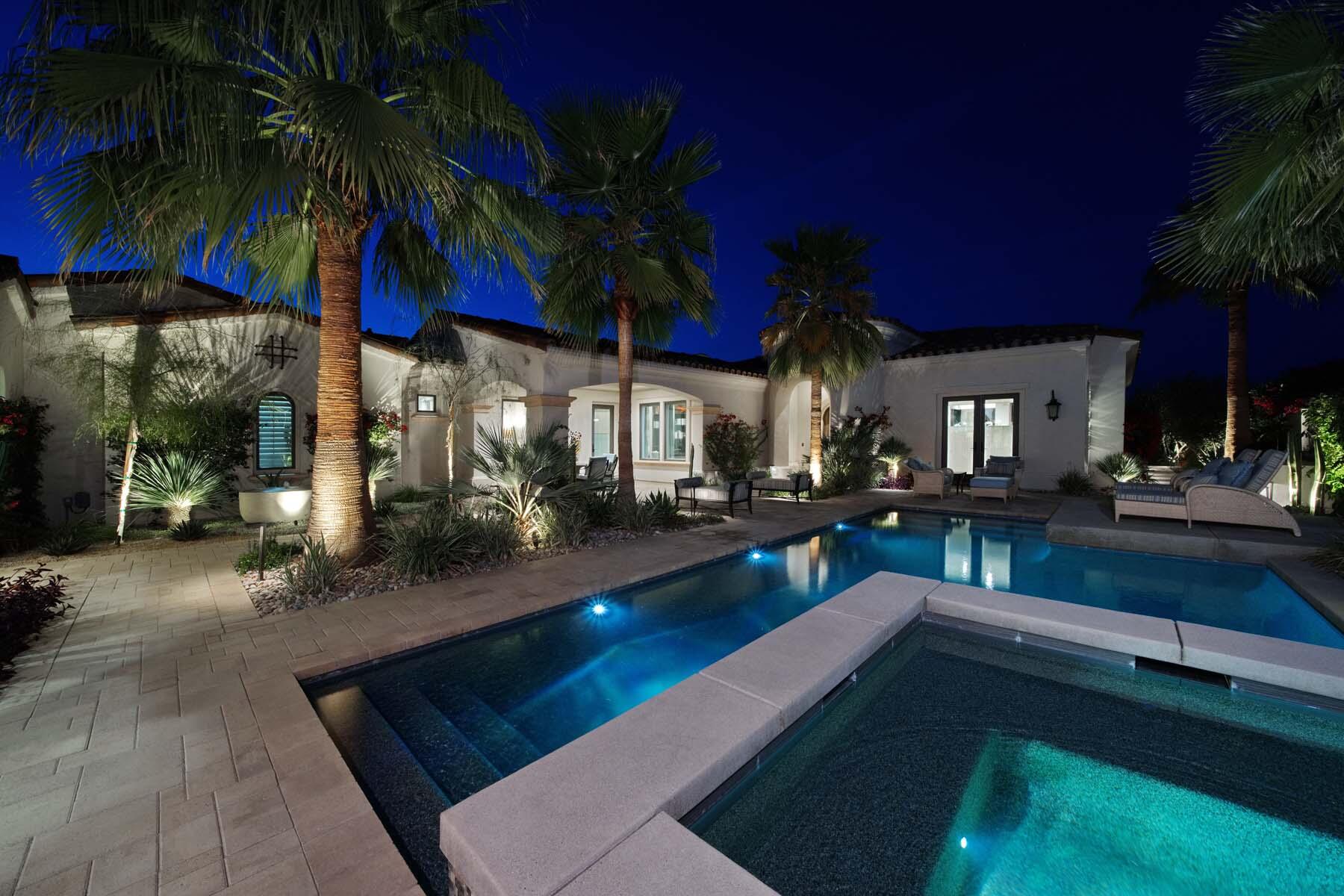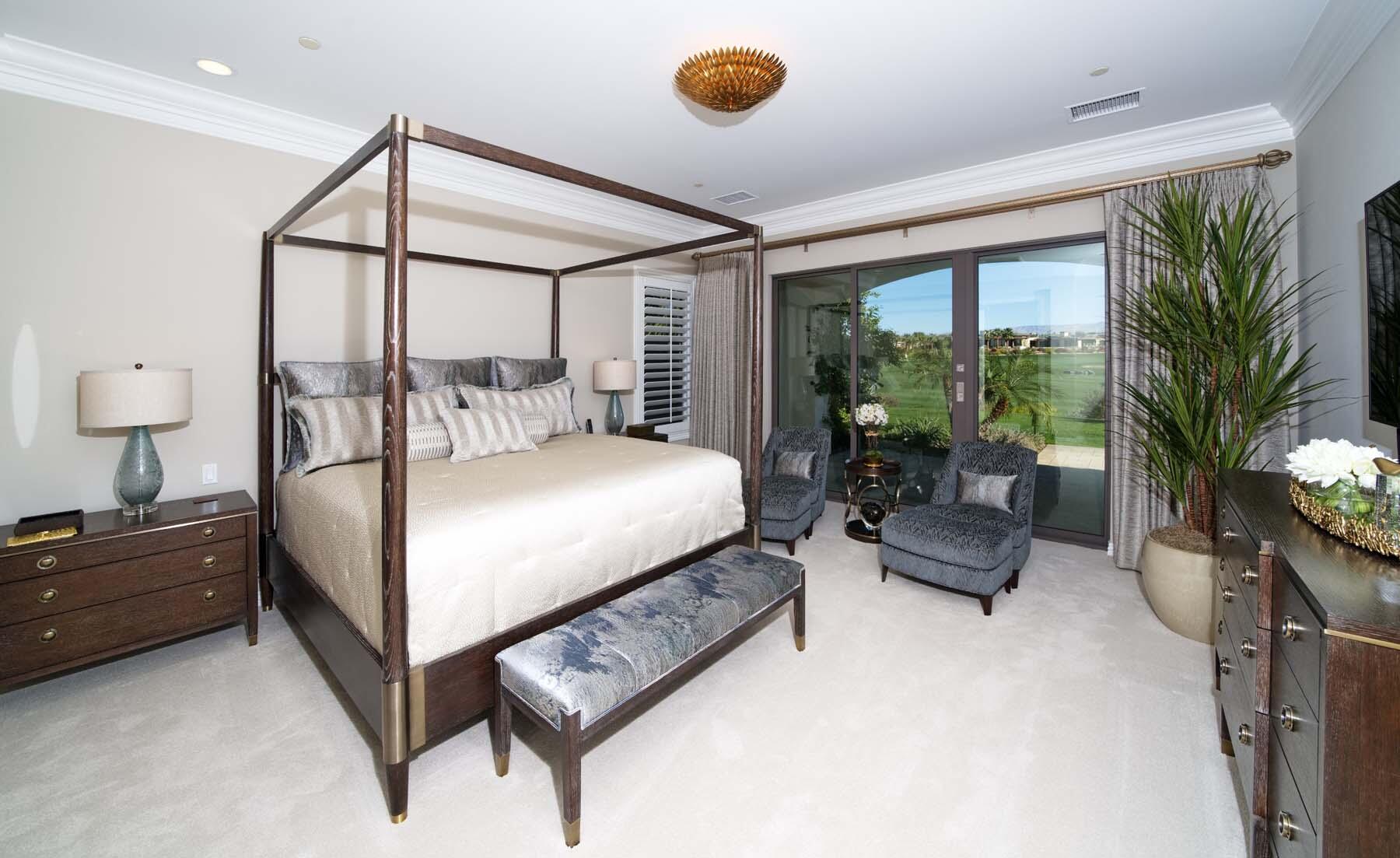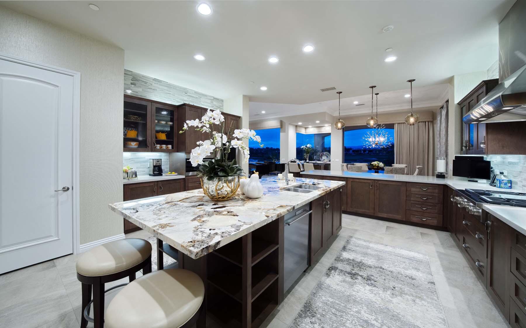 Nestled on the 17th hole of the signature North Course at Toscana Country Club, this exceptional Mediterranean-style home offers unrivaled panoramic views of the mountains and shimmering lake. The Early California Model 641, originally a builder's signature home built in 2018, has been thoughtfully enhanced with over $500,000 in upgrades since its completion, including more than $180,000 invested in landscaping alone. Impeccably designer-decorated and offered fully furnished, this residence provides a perfect balance of luxury, comfort, and style.Step inside to discover a light-filled open floor plan, where large pocket doors seamlessly blend indoor and outdoor living spaces, offering the best of desert living. The spacious great room is anchored by a stunning kitchen featuring slab-granite countertops, Sub-Zero and Wolf appliances, a generously sized island, and peninsula with counter-height seating--ideal for entertaining. A beautiful wet bar overlooks the backyard oasis, making it the perfect spot to relax and unwind while taking in the views.The courtyard is a standout feature, with a gorgeous pool and spa providing an idyllic retreat. The detached casita, with its private bath and separate entrance, offers an ideal space for guests. Whether hosting a gathering or enjoying quiet moments, this home provides the ultimate in desert living with every detail carefully curated for maximum comfort and elegance.Interested in this Listing?