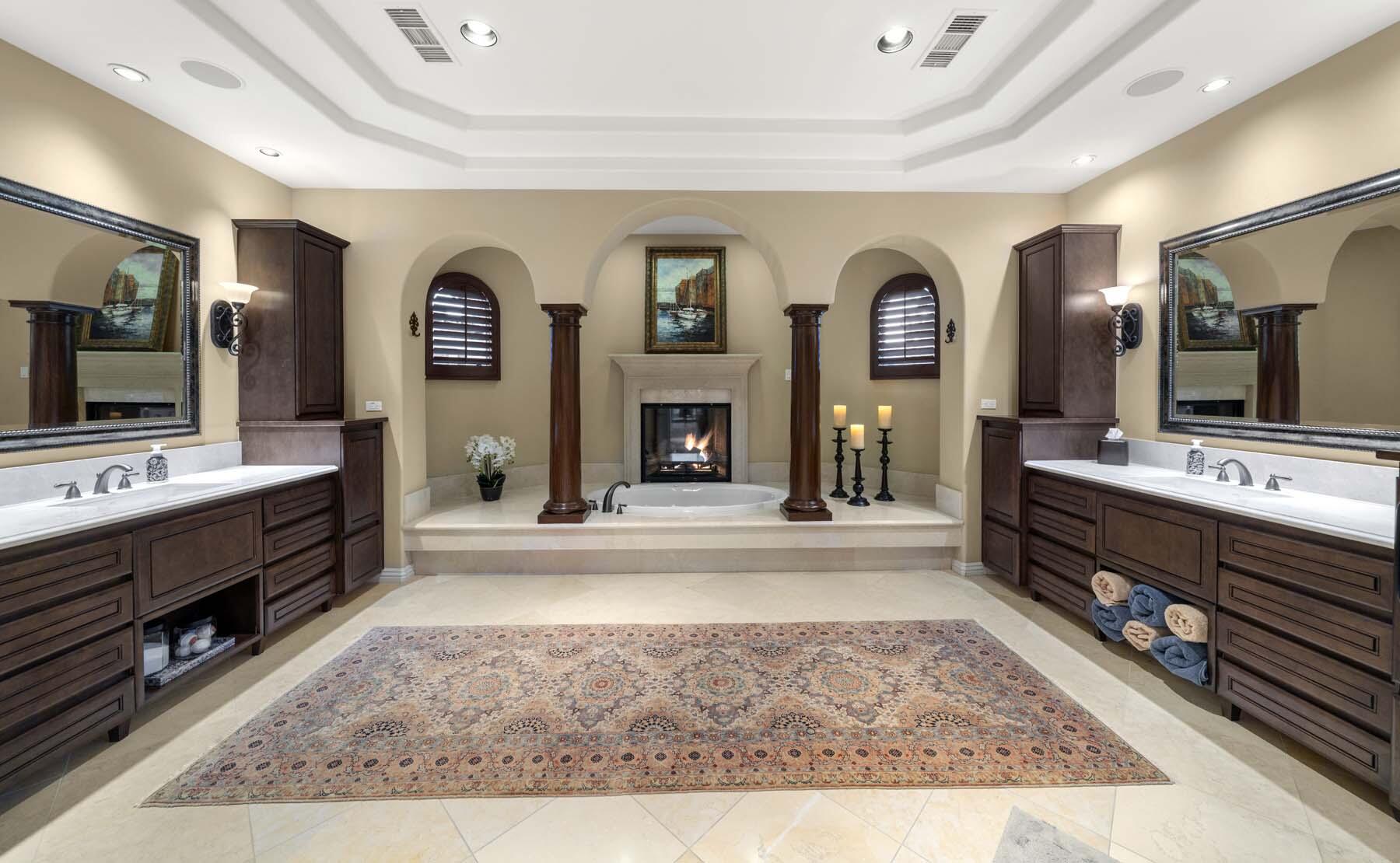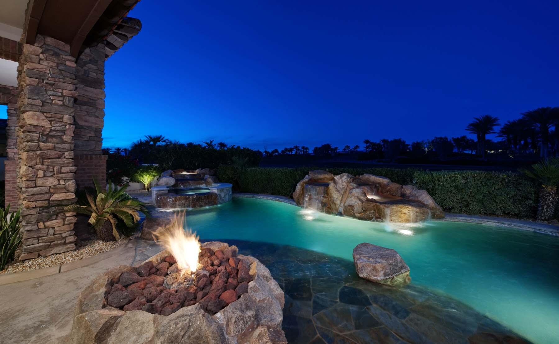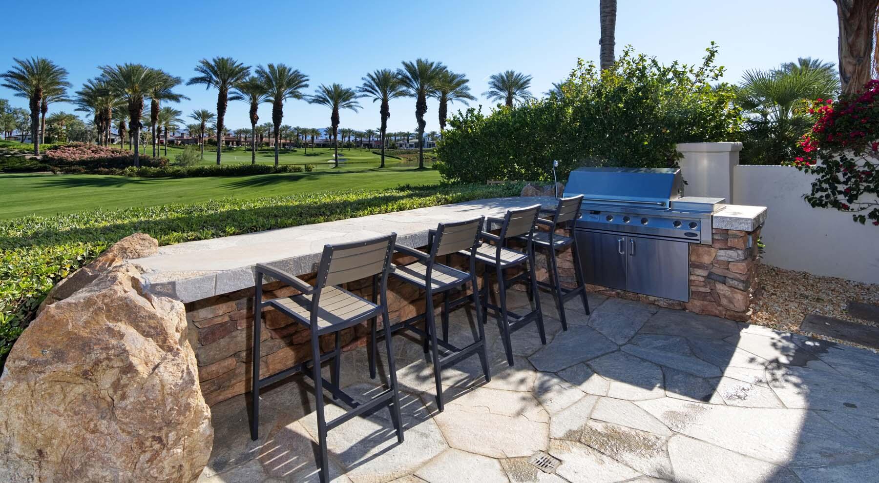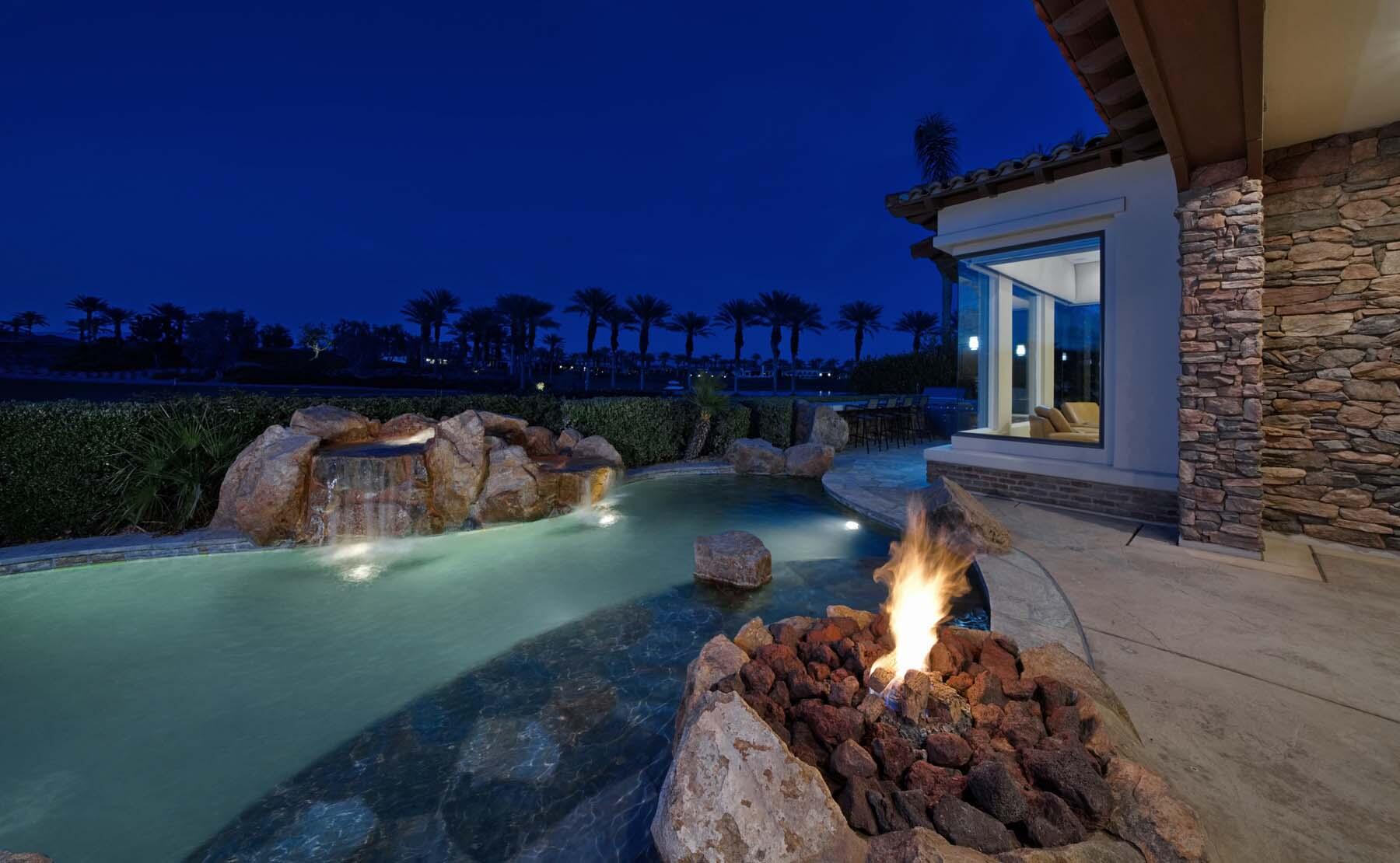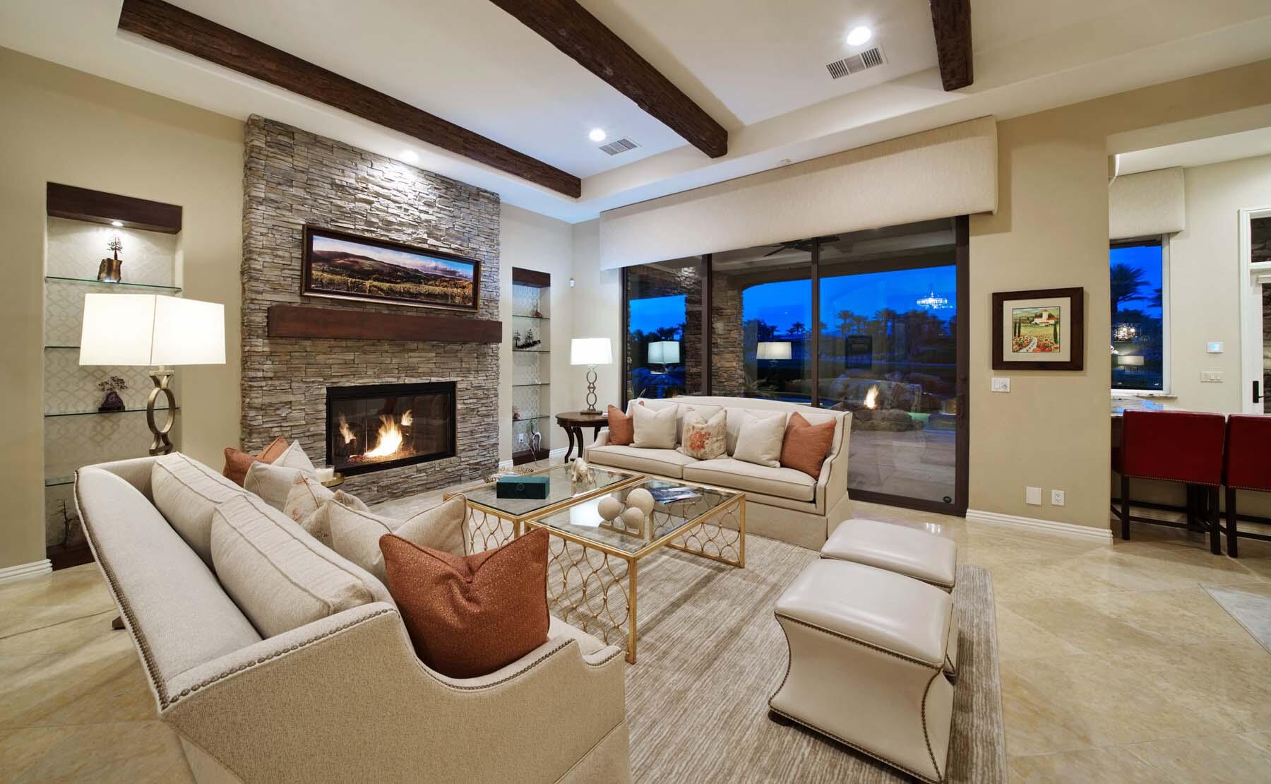 Experience unparalleled desert living in this stunning Plan 721 at Toscana Country Club. With over 4,200 sq.ft. of living space, this elegant home offers breathtaking views of a serene lake and holes 13 and 14 of the Jack Nicklaus South Golf Course.No detail has been overlooked, from the upgraded cedar garage doors to the custom-tiled beach-entry pool with cascading waterfalls, creating a peaceful retreat right in your own backyard. The expansive outdoor living area features a built-in barbecue with bar seating, perfect for entertaining while enjoying the scenic views.Inside, the home boasts upgraded stone tile floors and LED lighting, enhancing the open-concept design. The gourmet kitchen is a chef's dream, with a large breakfast bar peninsula, custom cabinetry, and high-end appliances. The great room, with its two distinct lounge areas and spacious wet bar with wrap-around seating, is ideal for hosting.The luxurious primary suite offers a separate seating area, perfect for taking in the views or staying cozy by the fireplace. The en-suite bathroom includes a fireplace above the soaking tub, separate vanities, and a large walk-in shower. The guest house provides privacy and comfort, featuring a bedroom, en-suite bathroom, seating area and kitchenette.Whether you're relaxing in the primary suite, hosting guests in the gourmet kitchen, or enjoying the stunning outdoor spaces, this home offers an exceptional lifestyle at Toscana Country Club.Interested in this Listing?
