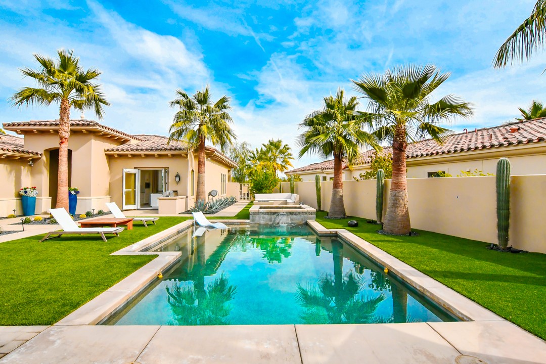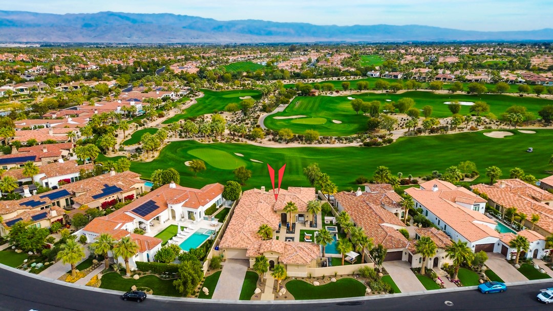 This exquisite single-level home features four bedrooms and four ½ baths, along with a separate casita, providing ample space and privacy. The property offers panoramic views of the 10th fairway, driving range, and the stunning Chocolate Mountains beyond. The interior boasts a stunning great room that enhances your living experience, with all rooms either opening or facing the golf course. The finest quality is maintained throughout the home, with porcelain tile flooring adding to the elegance. The gourmet kitchen is a chef s dream, featuring a large center island, slab granite countertops, and top-of-the-line appliances. This space is designed for both functionality and style, making it ideal for entertaining and everyday use. The primary suite bedroom offers solace and privacy, with a spacious layout and an opulent ensuite bath. The bathroom includes granite slab countertops, double vanities, a soaking tub, and spacious built-in walk-in closets. With over 3,600 square feet of interior space and a premier location on a lot exceeding 15,000 square feet, this home provides both luxury and comfort. Residents of this property can enjoy the exclusive Toscana Country Club lifestyle, which includes access to two Jack Nicklaus Signature Golf Courses, driving ranges, and the Bill Harmon Golf Performance Center with top PGA instructors. Additional amenities include pickleball, a pool, spa, and hot tub. The exclusive country club dinner house is open year-round, offering a variety of membership benefits and dining experiences. Members will find easy access to major freeways, fine dining, designer shopping, hospitals, medical and financial facilities, and the historic downtown Palm Springs. This property offers a unique blend of luxury, privacy, and convenience, making it the perfect place to call home.Interested in this Listing?