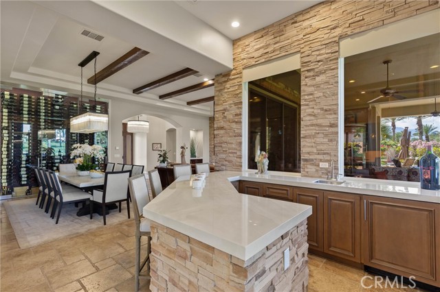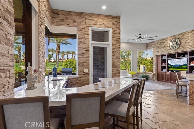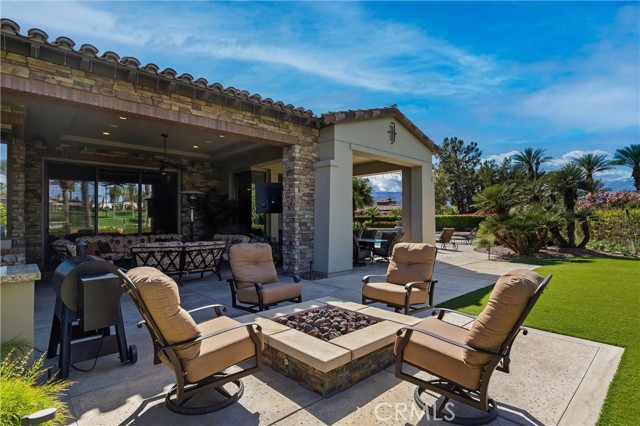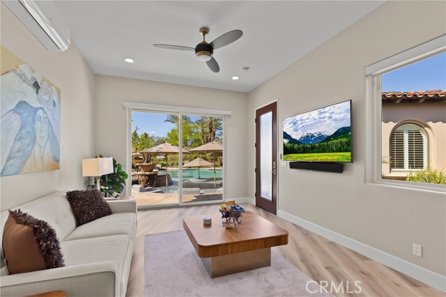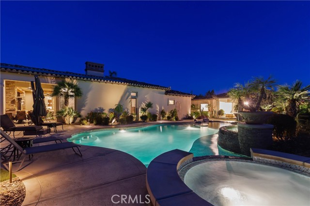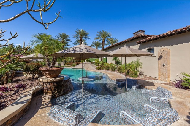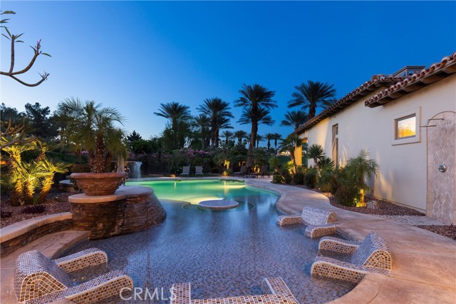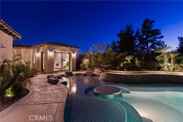 Welcome home to 76002 Via Firenze located in the prestigious gated and guarded enclave of Toscana Country Club in Indian Wells! This crown jewel of the community is a desired Bellagio Series model and offers a fantastic oversized lot and a half, with arguably the nicest swimming pool and entertainment area in Toscana! The highly custom pool and spa offers multiple waterfalls, a tanning bed area with built in lounges along with a built in dining area to enjoy the beautiful warm weather of the desert. This home has been highly upgraded with the finest attention to detail and has just finished the construction of a new 1 bed Casita with kitchenette and living area which is perfect for accommodating extended family or guest. The stunning professionally landscaped backyard with artificial grass offers gorgeous panoramic mountain and golf course views of hole 8 on the south course as well as: wired surround sound speakers, new energy efficient pool pumps, misting system, outdoor shower, multiple sun covered areas, secluded and private pool area, fire pit, built in BBQ, Ice Maker, Bar, outdoor TV, refrigerator and so much more! Once inside you will sure to be even further impressed with the stunning remodeled interior finishes including: New Italian Porcelain countertops in the kitchen and bar area, new Wolf appliances, SubZero refrigerator,125 bottle SubZero beverage/wine center in the kitchen, a custom floor to ceiling 800 bottle temperature controlled wine wall with Venetian plaster finish,Sonos sound system, custom plastered walls, tumble travertine flooring, custom carpeting in the bedrooms, motorized interior blinds, privacy tinted windows,Restoration Hardware Chandelier's, New A/C units throughout, 18kw Owned Solar system with 2 Tesla battery walls, Car Charger wired in garage, epoxy garage floors, temperature controlled garages, Led lighting throughout, new primary bath HansGrohe fixtures, toto toilets, fresh custom paint throughout and so much more! Opportunities like this in Toscana do not come often and this home is truly turnkey and shows true pride of ownership and is ready for its next chapter in offering its next lucky owner an incredible home with an amazing lifestyle offered by Toscana CC, inclusive of guard gated meticulous grounds, and available membership access to the clubhouse, spa, gym, pilates, pickleball & tennis courts, pool ,bacci ball area, restaurants, bar, and golfing at two 18 hole Jack Nicklaus Signature golf courses on site!Interested in this Listing?