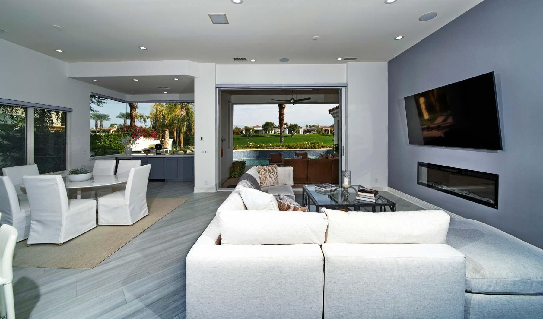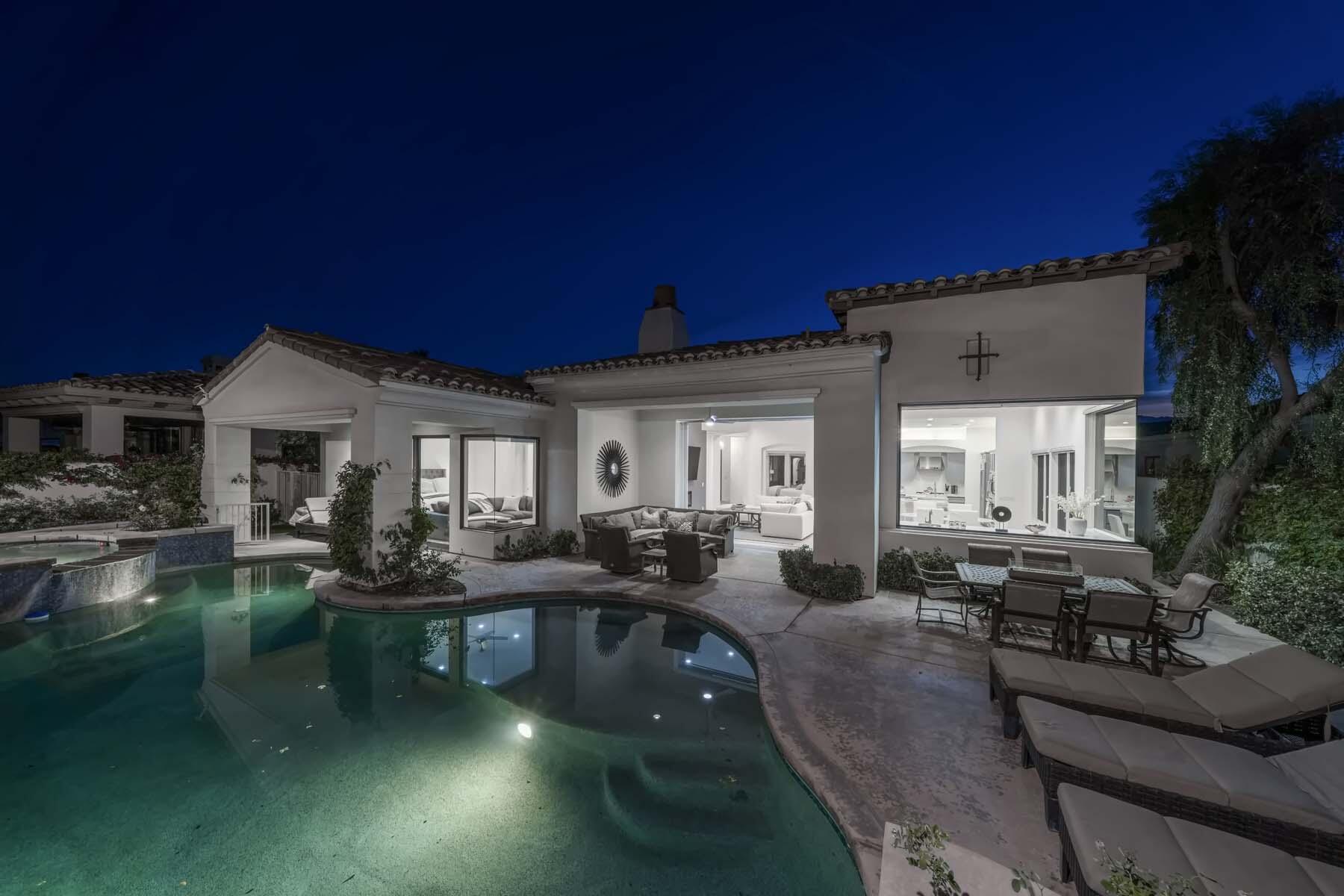 Introducing the Amalfi Collection Model 622, a beautifully remodeled luxury home spanning 3,724 sq. ft. with 4 bedrooms and 4.5 bathrooms. Situated in a prime location, this stunning residence offers incredible views of the renowned Jack Nicklaus Signature Golf Course, providing a serene and picturesque setting.Upon entering, you're greeted by a grand great room with soaring ceilings and a pocketing 10-foot slider that effortlessly blends the indoor and outdoor living areas. The gourmet kitchen is a chef's dream, featuring new quartz countertops, top-tier appliances, custom cabinetry, and an open dining area with sweeping views of the golf course.The luxurious primary suite offers direct access to the outdoor area and spill-over spa, along with a golf course view. Its spa-like en-suite bath includes dual vanities, a soaking tub, and a glass-enclosed shower. Each of the additional bedrooms is generously sized, offering an ideal balance of comfort and style.This home also features a whole-house water filtration system, ensuring quality and convenience throughout. The backyard is an entertainer's paradise, showcasing a spill-over spa and views of the golf course. With its exceptional blend of luxury, privacy, and natural beauty, this home is the ultimate desert retreat. Experience refined living in this extraordinary residence.Interested in this Listing?