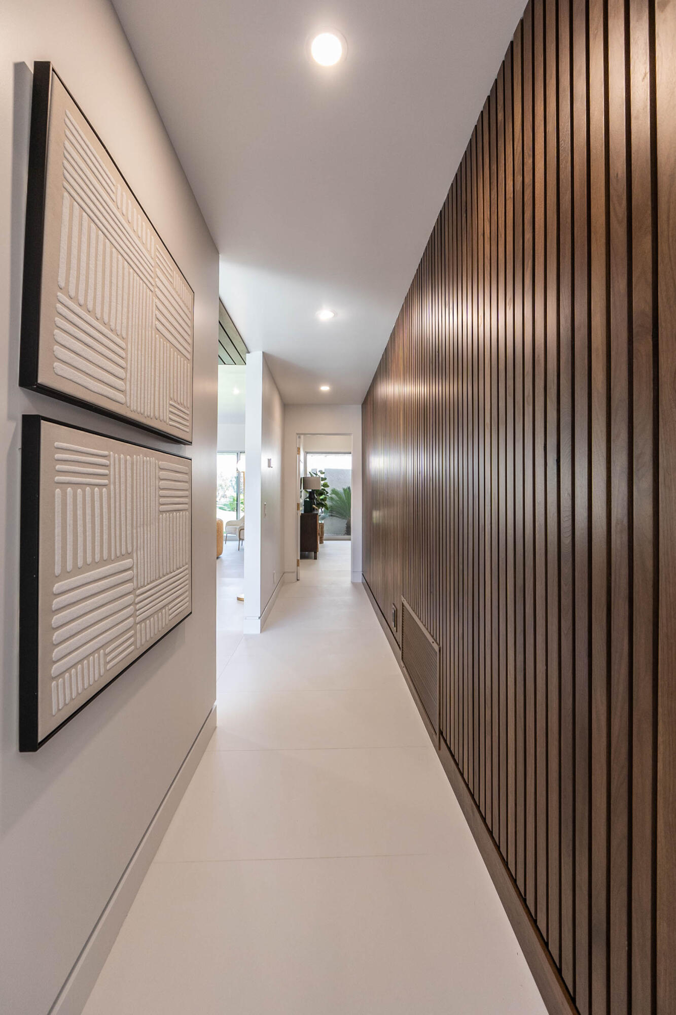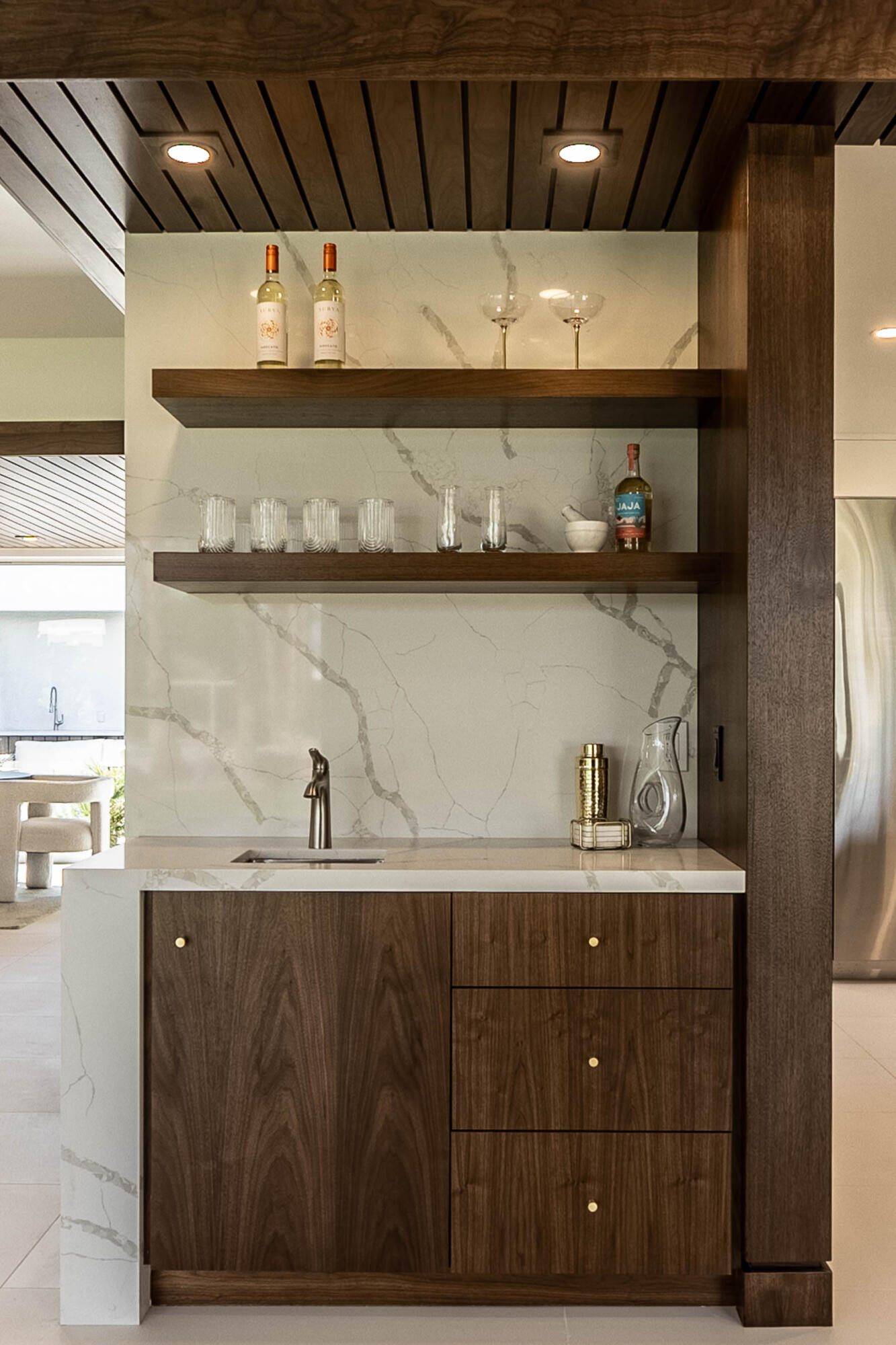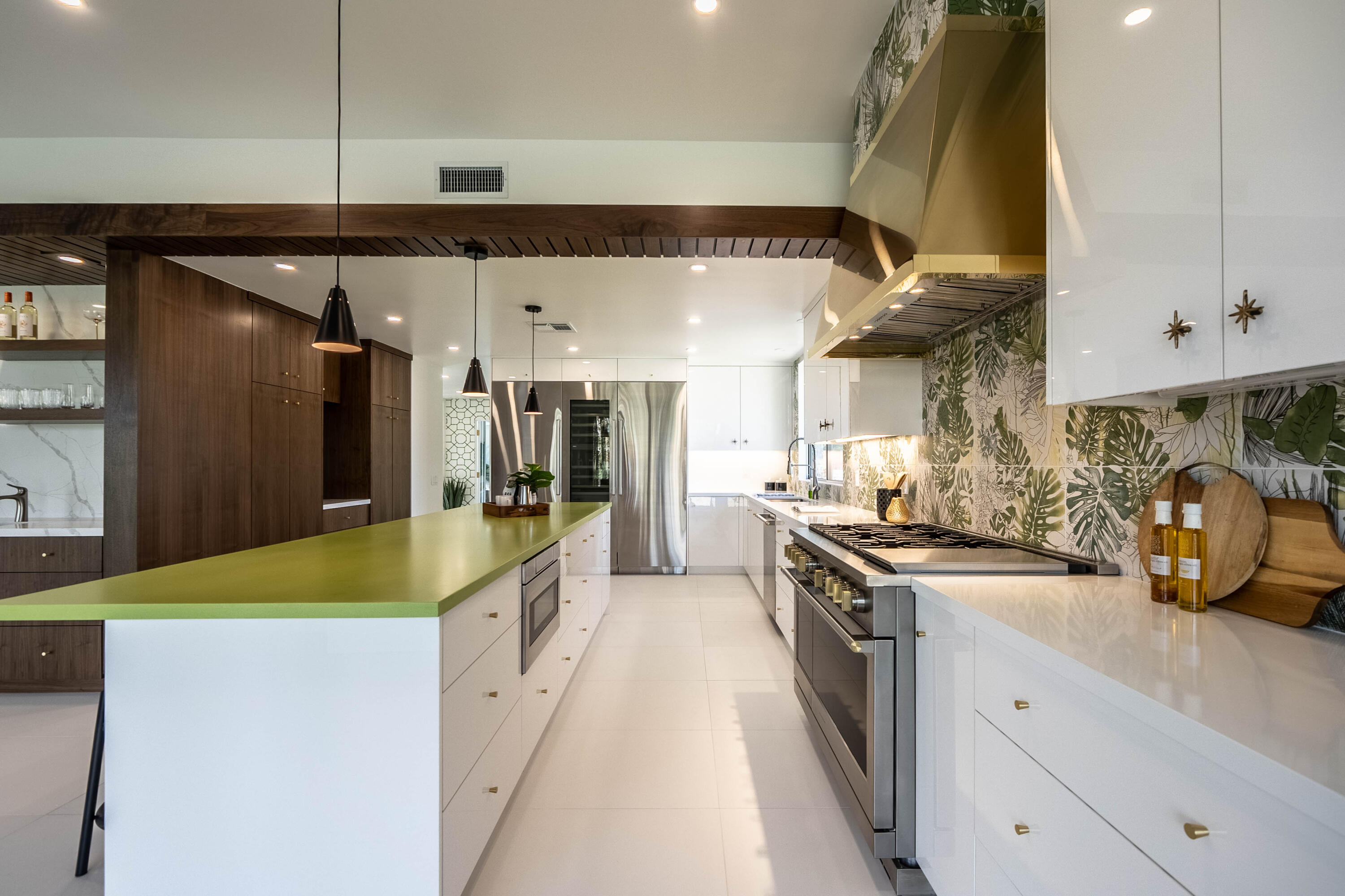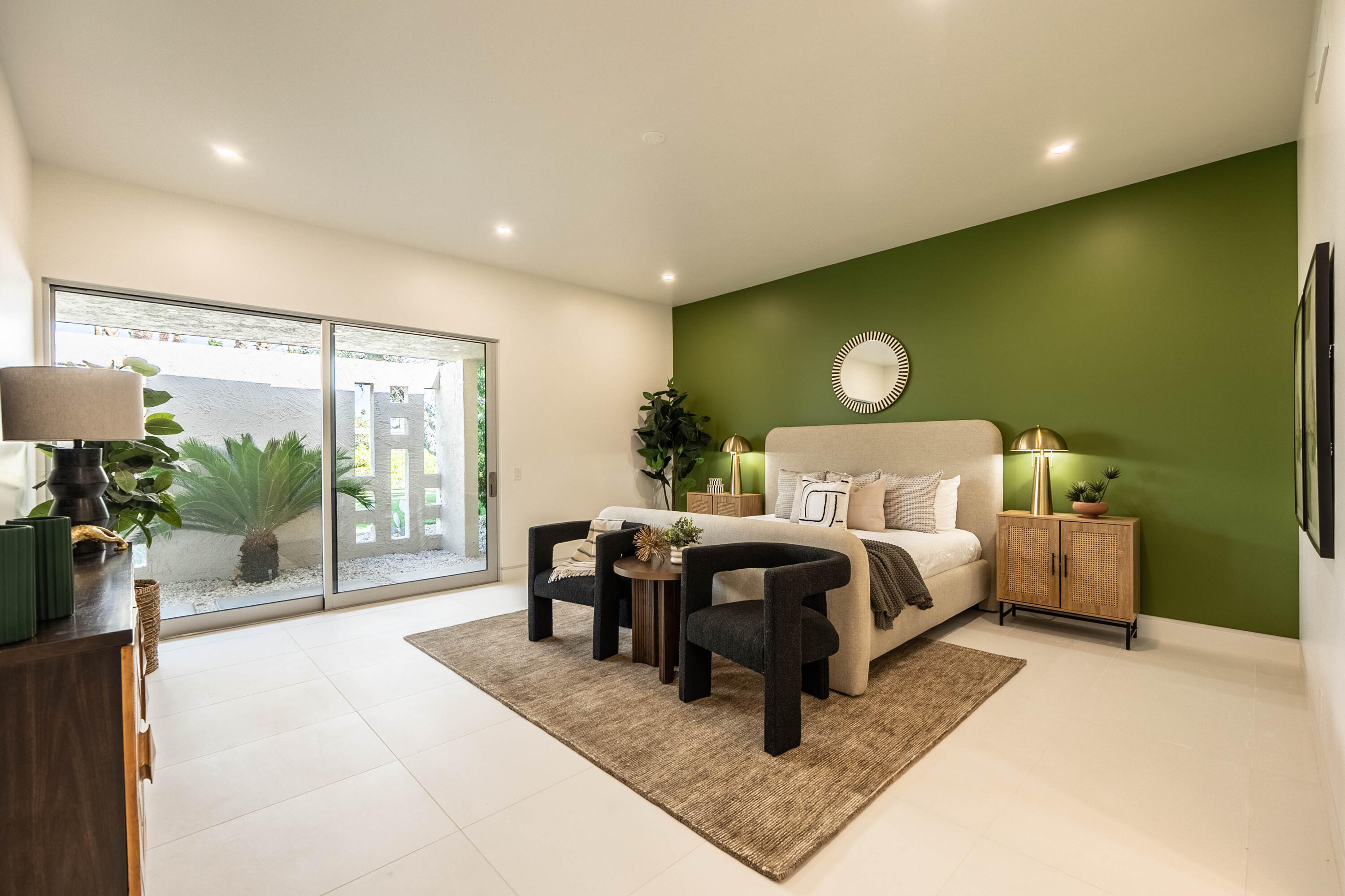 Welcome to this absolutely stunning, completely remodeled William Krisel-designed villa located in the sought-after historical landmark of the Sandpiper Community within Indian Wells Country Club. This exquisite property has been thoughtfully re-imagined, blending modern elegance with amenities while preserving its unique architectural history that embodies the charm of desert living. As you enter through the elegant double-door entry, you'll find yourself in a stunning foyer, complete with a custom-built accent wall that truly stands out. Step into the expansive great room with beautifully-crafted walnut wood-slat detailing & a quartz wall surrounding the fireplace & wet bar, creating a warm inviting atmosphere. The dining room is a masterpiece, framed beneath a suspended ceiling that highlights the same beautiful walnut detailing. The modern & elegant kitchen is a true chef's dream featuring a stainless-steel Dacor full-size individual refrigerator & freezer, along with a glass front wine refrigerator for your favorite vintages. The GE Monogram 6-burner gas range with griddle ensures you have all the tools you need to create culinary masterpieces. Expansive storage & an oversized breakfast counter with seating, complemented by a custom countertop, anchor the room, making the space both functional and stylish. Retreat to the spacious primary suite, where luxury meets comfort. This spa-like oasis features a walk-in shower, a relaxing Roman tub, oversized vanity adorned with quartz countertops plus custom lighting. A large walk-in closet offers ample storage space. Meticulously designed, this retreat is a perfect blend of opulence and functionality.2 additional en-suite bedrooms are equally spacious & luxurious offering a large vanity plus a walk-in shower with elegant glass doors, providing a perfect blend of style and convenience. These beautifully designed spaces ensure comfort and privacy for family or guests.At the heart of the home lies an inviting atrium patioInterested in this Listing?