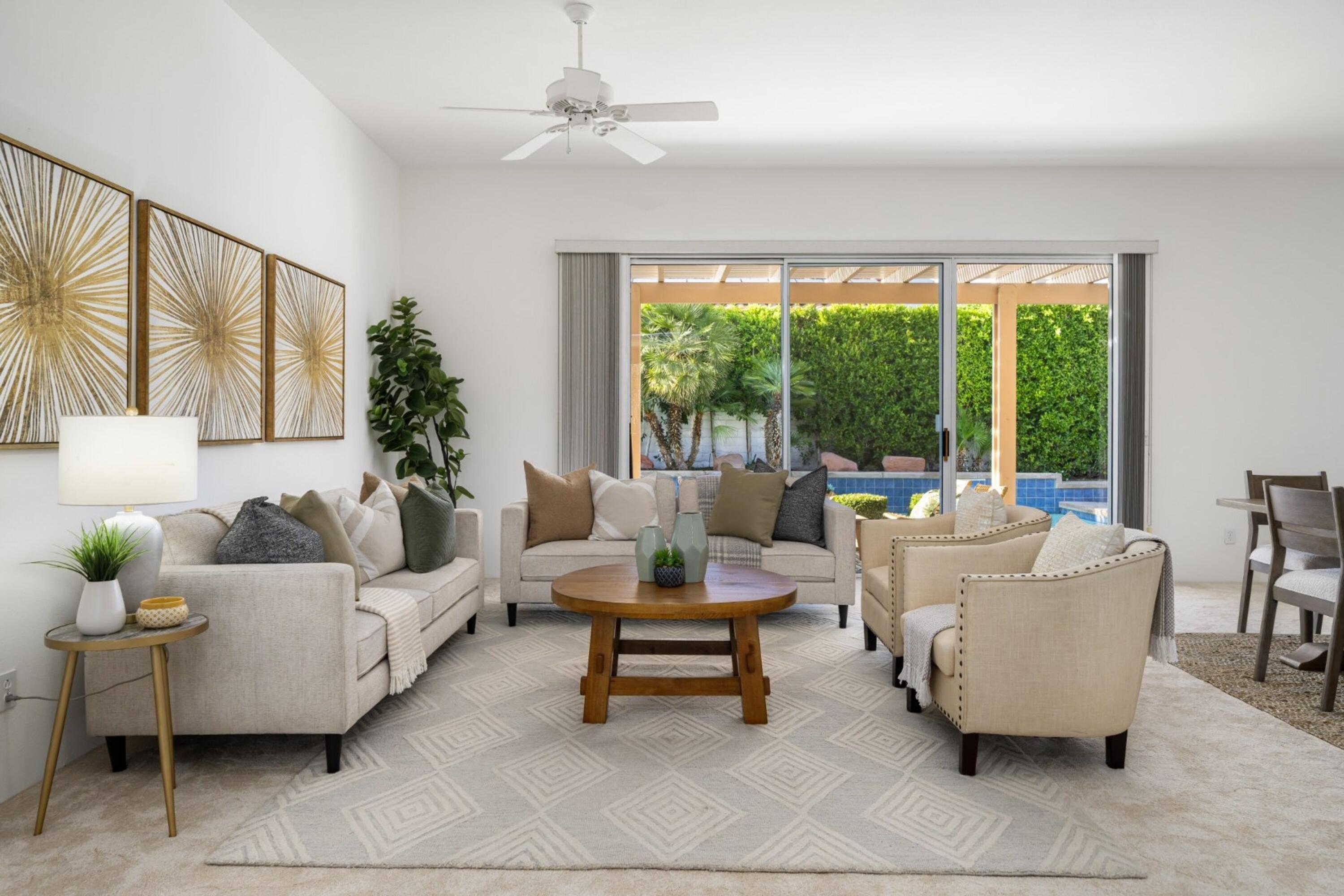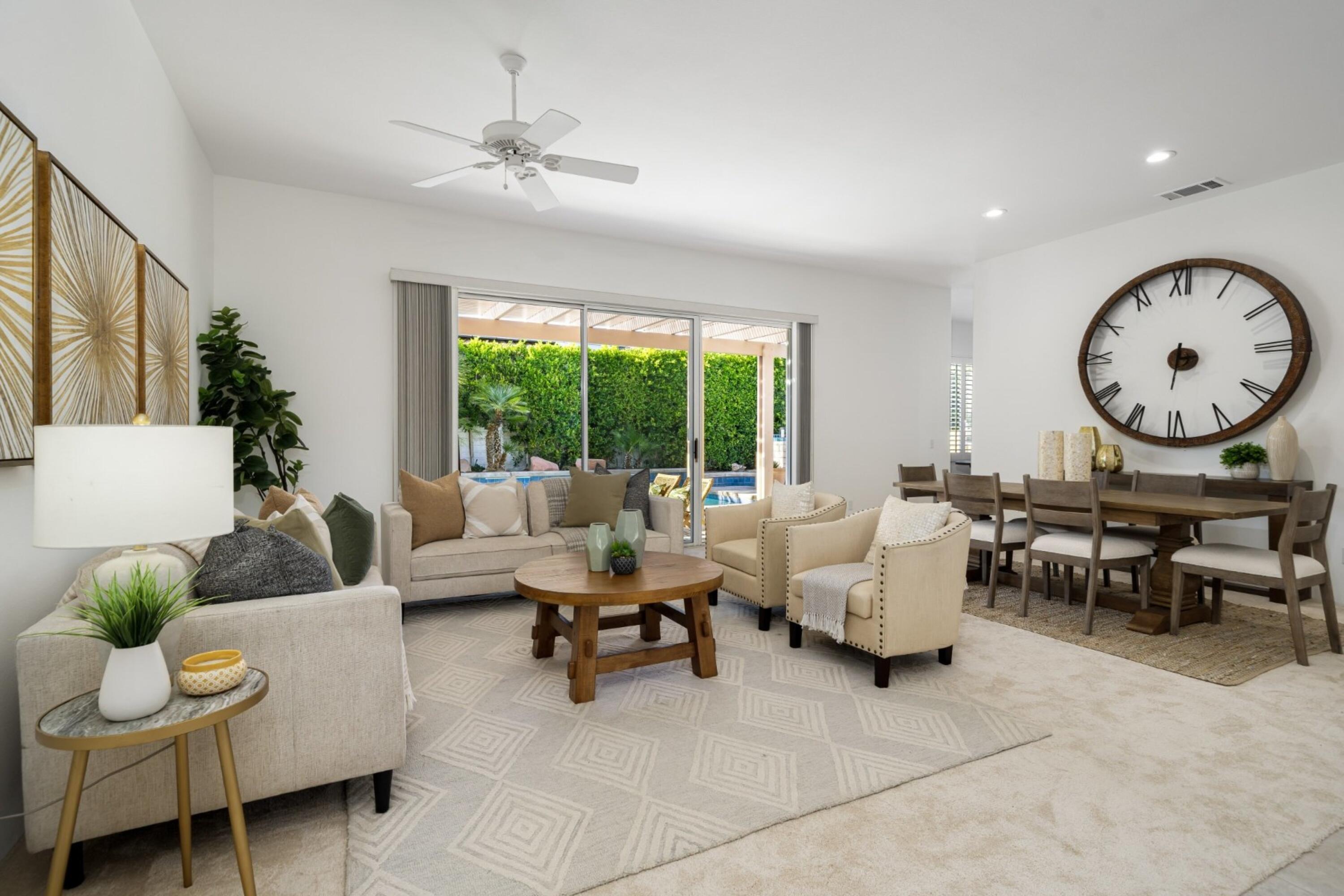 Welcome to this exceptional 4 Bedroom home within the Colony neighborhood behind the gates of prestigious Indian Wells Country Club. This beautiful desert retreat is designed for comfort and modern living. The thoughtful split bedroom floor plan offers privacy and convenience with the primary bedroom situated on one side of the home complete with en- suite bathroom while secondary bedrooms are located on the other side of the home for added privacy. An additional office, provides the ideal environment for work from home needs or a quiet retreat. The home boasts 4 Spacious bedrooms 2.5 baths and 2909 square feet of living space. The design flows seamlessly from Living room to kitchen and beyond.Cook and entertain guests and family from your gourmet chef's kitchen with center island and a spacious attached family room.The backyard is ultra private with sparkling pool & Spa and built - in BBQ with beautifully designed elevated seating areas, one of which enjoys breathtaking views of the mountains. There is a 3 car attached garage with ample storage for vehicles, a golf cart or outdoor gear. Experience the best of desert living in this beautifully maintained. Move-in ready home. Your private Oasis awaits.As an IW home owner you get discounted fee for Golf at IW golf resort and 10% discount at IW restaurants and 2 tickets to the tennis tournamentInterested in this Listing?