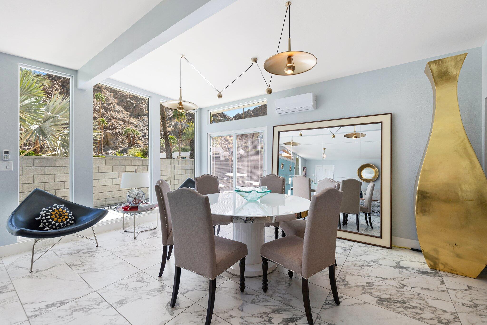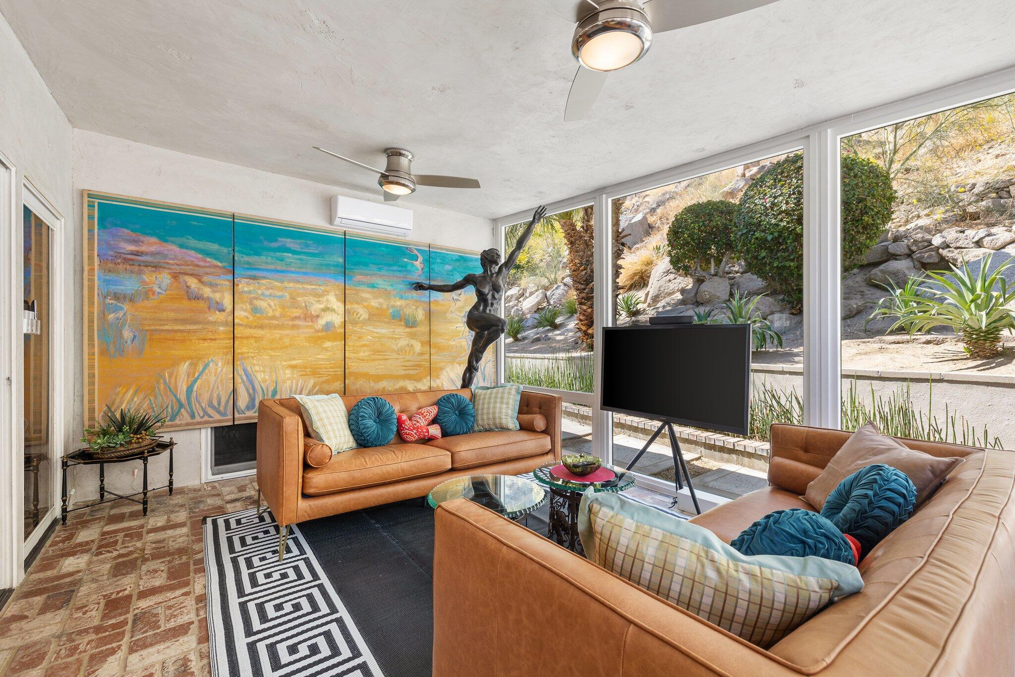 Mid-Century Modern Gem in Historic Indian Wells Country Club - No HOA!Step into timeless elegance with this rare mid-century modern A-frame home nestled in the prestigious Indian Wells Country Club. Located in a quiet cul-de-sac, this historic property is in the neighborhood where Hollywood legends Desi Arnaz and Lucille Ball once resided in the late 1950s. Enjoy the exclusivity of a 24-hour guard-gated communitya'without the burden of HOA fees.This 3-bedroom, 2-bath home is perfectly positioned against the majestic Santa Rosa Mountains, offering stunning panoramic views. The open-concept layout floods the space with natural light, featuring a stylish kitchen that flows into the spacious great room and dining area, all anchored by a cozy fireplace.Designed for privacy, the bedrooms are thoughtfully separated, providing a tranquil retreat for all. Whether you're seeking a full-time residence or a luxurious vacation getaway, this home offers the perfect blend of classic mid-century charm and modern-day comfort.Other key upgrades include new windows, upgraded kitchen, redesigned bathrooms, new AC along with 6 mini splits giving each room temperature control, enclosed sunroom lounge against the mountains, and more!Outside, enjoy direct access to a serene community pool just steps from your front door. A two-car garage adds convenience, while the peaceful, tucked-away location enhances the sense of retreat.An entertainer's dream and a piece of Indian Wells historyInterested in this Listing?