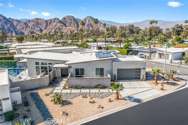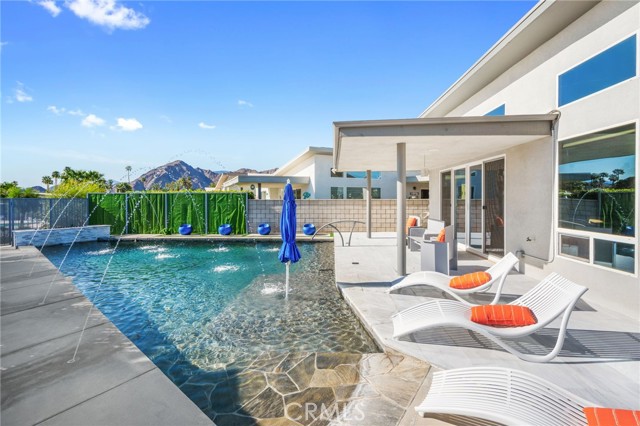 Experience a flawless blend of mid-century modern butterfly roof charm and contemporary luxury nestled in the heart of Indian Wells. This stunning residence at The Huntley, adjacent to Indian Wells Tennis Garden, redefines resort-style living with its exceptional custom features and innovative design enhancements. The Huntley is proudly included on the opt-out list for short-term rental restrictions, a highly coveted advantage in a region where new restrictive policies are effectively wiping out competitors. This unique status has become a huge upside for owners, providing an excellent opportunity to maximize investment potential in a market where flexibility is key. The Huntley, completed in 2021, was initially offered with attractive upgrade options by the builder, the owners of this property went above and beyond, sparing no expense to create their forever home, a space that is both emotionally resonant and secure. The gourmet kitchen dazzles with its custom cabinetry, bespoke matching Jenn Air Noir appliances, ample custom pantry, extra-large custom island with waterfall in custom quartz. Designer finishes flow seamlessly into a bright, open living space accented by custom flooring, vaulted ceilings and expansive windows fitted with custom window coverings. The primary suite features a spa-inspired bathroom complete with a deep soaking tub, a large zero-threshold rain shower that looks out upon a private patio. A custom-designed walk-in closet provides abundant storage. This exceptional property stands on one of the largest lots in the community and at the highest point, enhancing privacy and drainage. An expertly engineered rainfall management system efficiently handles the rainy seasons. Fully owned solar system, state-of-the-art whole-house Ecowater filtration system, advanced security system, and whole-house EMF protection are built in smart home features. The custom-designed pool, featuring a beach entrance and two Baja shelves, serves as the centerpiece of a resort-style outdoor oasis that is ideal for both entertaining and tranquil relaxation. Carrara marble table with integrated fire pit completes the poolside experience. The Huntley is minutes from elite shops, fine dining on El Paseo and PGA golf courses. This home offers the ultimate convenience and luxury, completing the picture of an unmatched, resort-style lifestyle in one of Indian Wells most desirable locations.Interested in this Listing?