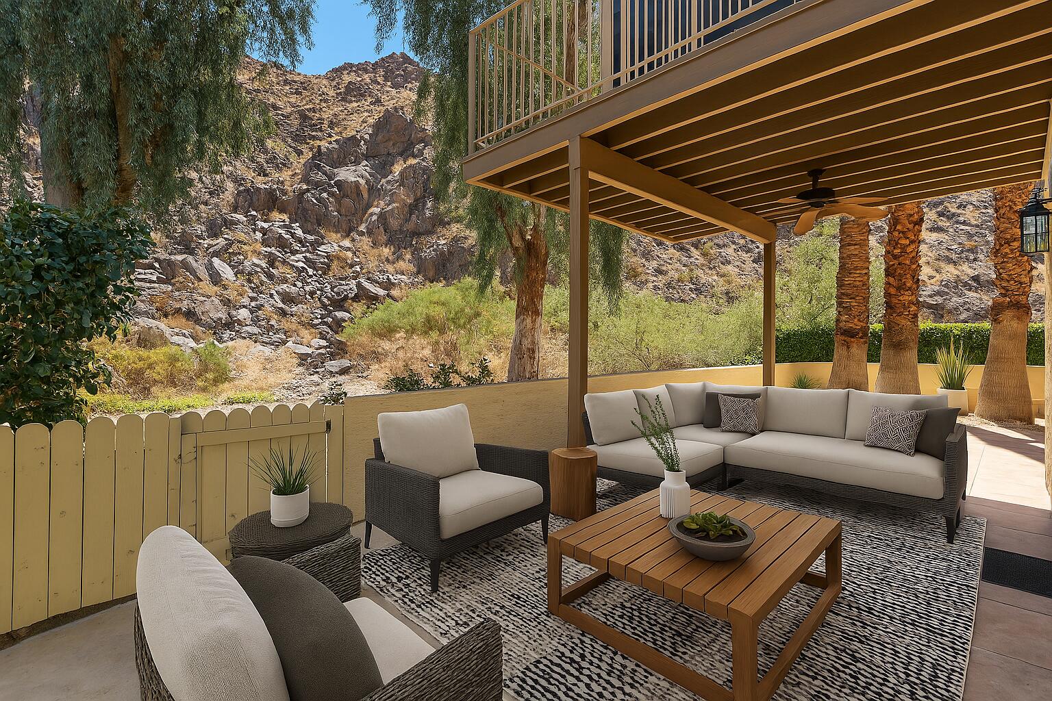 Welcome to MOUNTAIN COVE in INDIAN WELLS--where luxury, tranquility, and investment potential converge. Nestled directly against the breathtaking SANTA ROSA MOUNTAINS, this ground-floor TWO-BEDROOM, THREE-BATHROOM condo offers a truly immersive desert retreat. One of the rare units on FEE-SIMPLE LAND, it is NOT SUBJECT TO LAND LEASE PAYMENTS--enhancing long-term value and peace of mind for both vacation homeowners and savvy investors. Step into a bright and inviting interior featuring BEAUTIFUL TILE FLOORING throughout and an EXPANSIVE WRAP-AROUND PATIO designed for indoor-outdoor living at its finest. Upgrades include NEW MILGARD SLIDERS AND PICTURE WINDOWS that frame majestic views, a luxurious SAFE STEP JETTED WALK-IN TUB, and a MODERN STAINLESS STEEL SAMSUNG REFRIGERATOR. Whether you're looking for a serene getaway or a property with STRONG RENTAL INCOME POTENTIAL, this condo checks all the boxes. MOUNTAIN COVE permits SHORT-TERM RENTALS with a SEVEN-DAY MINIMUM, making it an ideal option for generating passive income when not in personal use. With THREE COMMUNITY POOLS, every day here feels like a vacation. As a resident of INDIAN WELLS, you'll also enjoy EXCLUSIVE BENEFITS, including DISCOUNTED GOLF at the INDIAN WELLS GOLF RESORT for only $35 PER ROUND WITH A GOLF CART from MAY -DECEMBER, and $50 PER ROUND from JANUARY-APRIL, complimentary access to the HYATT REGENCY GYM, RESTAURANT and HOTEL DISCOUNTS, and TICKETS TO THE INDIAN WELLS TENNIS GARDENS!Perfectly situated just minutes from world-class dining, shopping, and entertainment along EL PASEO, this is a rare opportunity to own in one of the DESERT'S MOST SOUGHT-AFTER COMMUNITIES. Whether for personal enjoyment or investment, this home offers the best of DESERT LIVING in a truly spectacular location.Interested in this Listing?