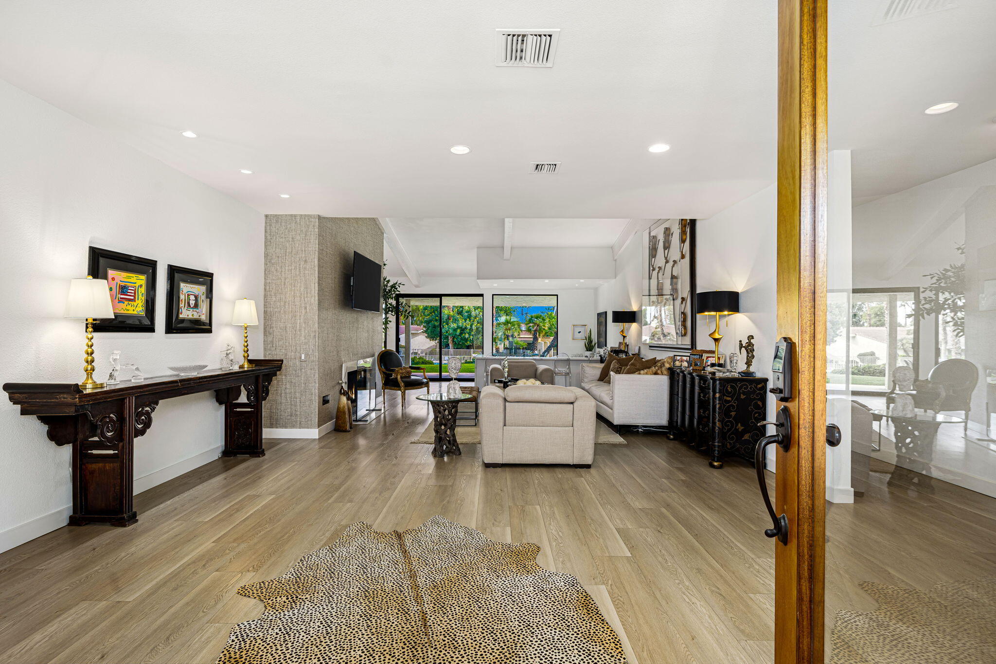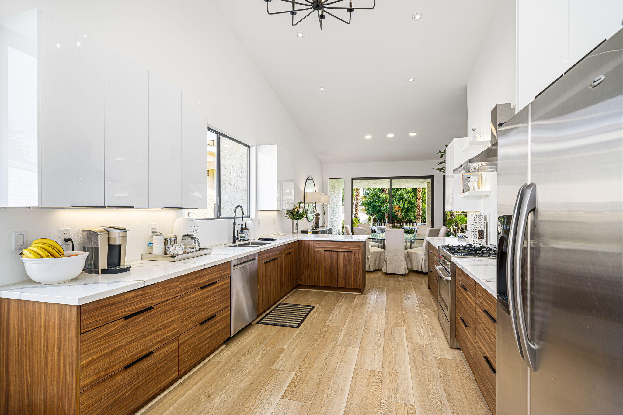 Stylish Updated Condo! Elevated above a greenbelt with pool & mountain views, this 3 bedroom/3 bathroom condo is located on a cul-de-sac in Desert Horizons CC in Indian Wells CA. The new front door beautifully frames the entry to the great room, which features high, vaulted ceilings and statement fireplace. Sunken wet bar is highlighted by quartz countertops & wine refrigerator. The living & dining areas open out to the patio, for ease of entertaining. The Kitchen remodel is fabulous! Soaring ceilings, quartz countertops, great storage in the new cabinets, and bar seating with additional dining area. Luxurious finishes and design throughout. Primary suite has private access to the patio, with dual vanities and a large walk-in shower in the bathroom. Both guest suites are on opposite sides of the home, each with access to the private enclosed front courtyard. Offered unfurnished (furnishings may be available - please inquire). Desert Horizons CC has been renovated to include a gorgeous Clubhouse with bar & dining, state of the art fitness facility, green renovations on the Ted Robinson Sr designed course, new courts complex and more! Call us for Membership information.Interested in this Listing?