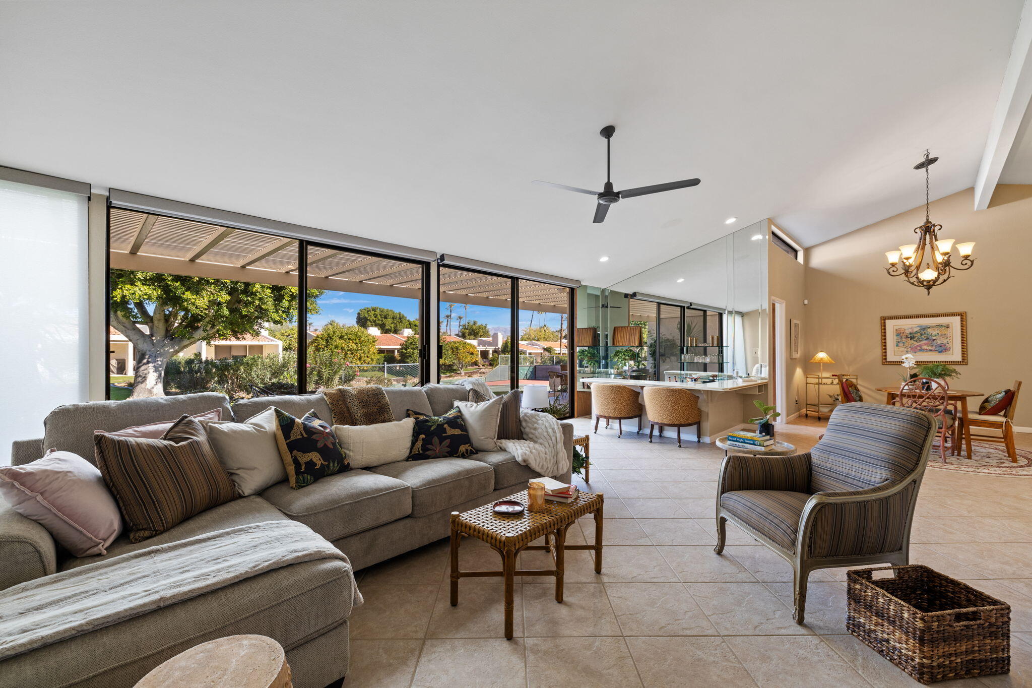PRICE JUST ADJUSTED and this gem is ready for your offer! Welcome to your desert retreat in the highly desirable Dorado Villas community of Indian Wells! This spacious 3-bedroom, 3-bathroom home offers 2,489 sq ft of stylish and functional living space, perfect for full-time residence or a comfortable getaway. Located within a beautifully maintained gated community, Dorado Villas features multiple tennis courts, sparkling pools, and spas--an ideal setting for active and relaxed desert living. Step inside to soaring ceilings and an open-concept design that seamlessly connects the living and dining areas. The living room boasts a cozy fireplace, a sink bar with wine cooler, and expansive wall-to-wall sliding glass doors that flood the space with natural light and open to a covered patio--perfect for entertaining or enjoying peaceful outdoor moments. The well-appointed kitchen features sleek granite countertops, stainless steel appliances, ample cabinetry. A central atrium provides additional light and fresh air, bringing the outdoors in and creating a tranquil ambiance throughout the home. Each of the three bedrooms offers its own full en suite bathroom, ensuring comfort and privacy for residents and guests alike. One guest suite includes a Murphy bed and a walk-in closet, ideal for versatile use as a bedroom or office. The second guest suite features a walk-in shower and private patio access. The spacious primary suite includes generous closet space and a bright bathroom with direct access, offering a peaceful and private retreat. Additional features include a laundry area, a two-car garage, and thoughtful design elements throughout. Dorado Villas residents enjoy exceptional community amenities, including 9 pools and spas, 10 tennis courts, 2 pickleball courts, and a basketball court . Located near premier golf courses, shopping, dining, and the Indian Wells Tennis Garden, this beautifully maintained home offers the perfect blend of comfort, style, and resort-style aInterested in this Listing?