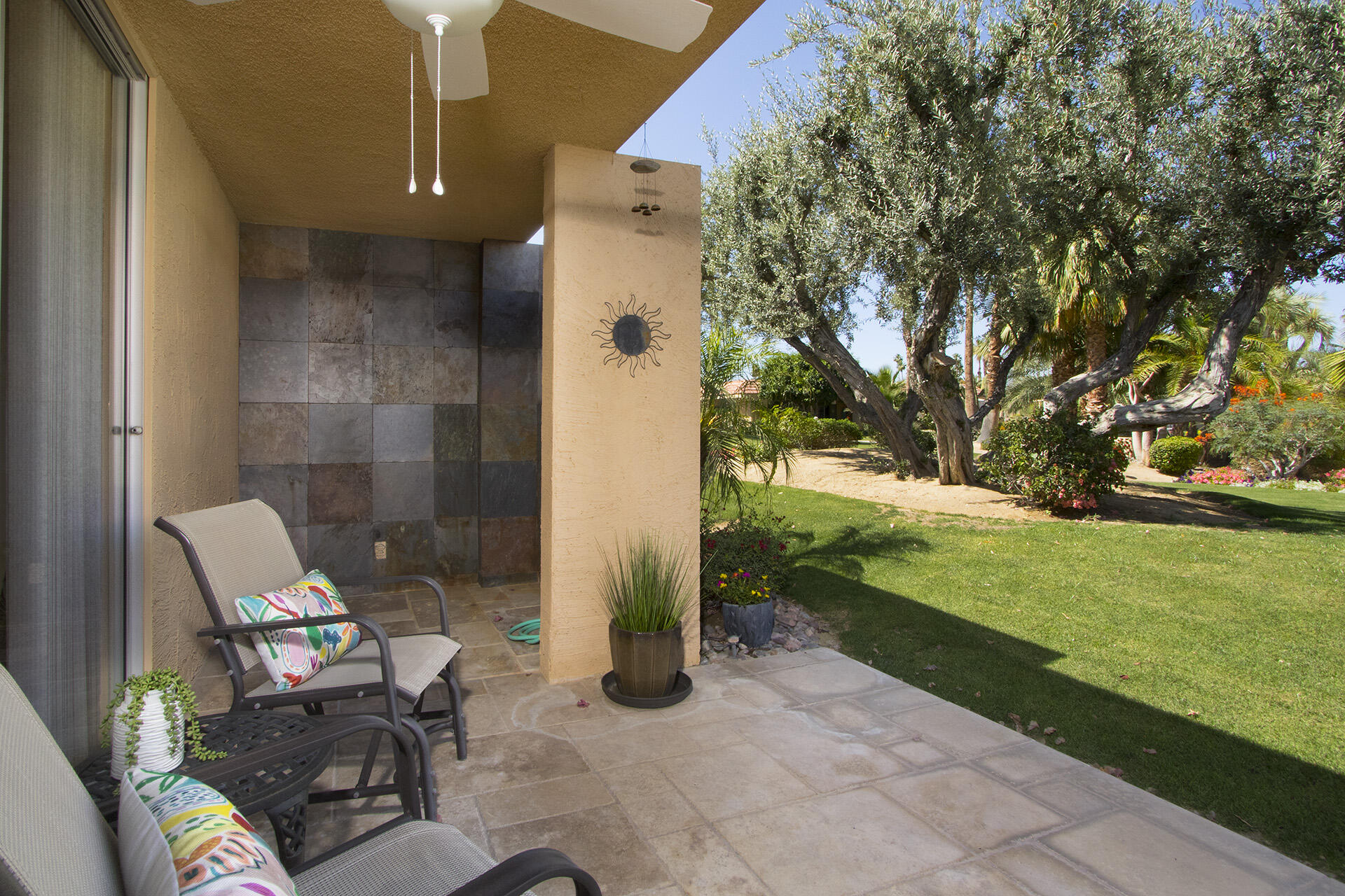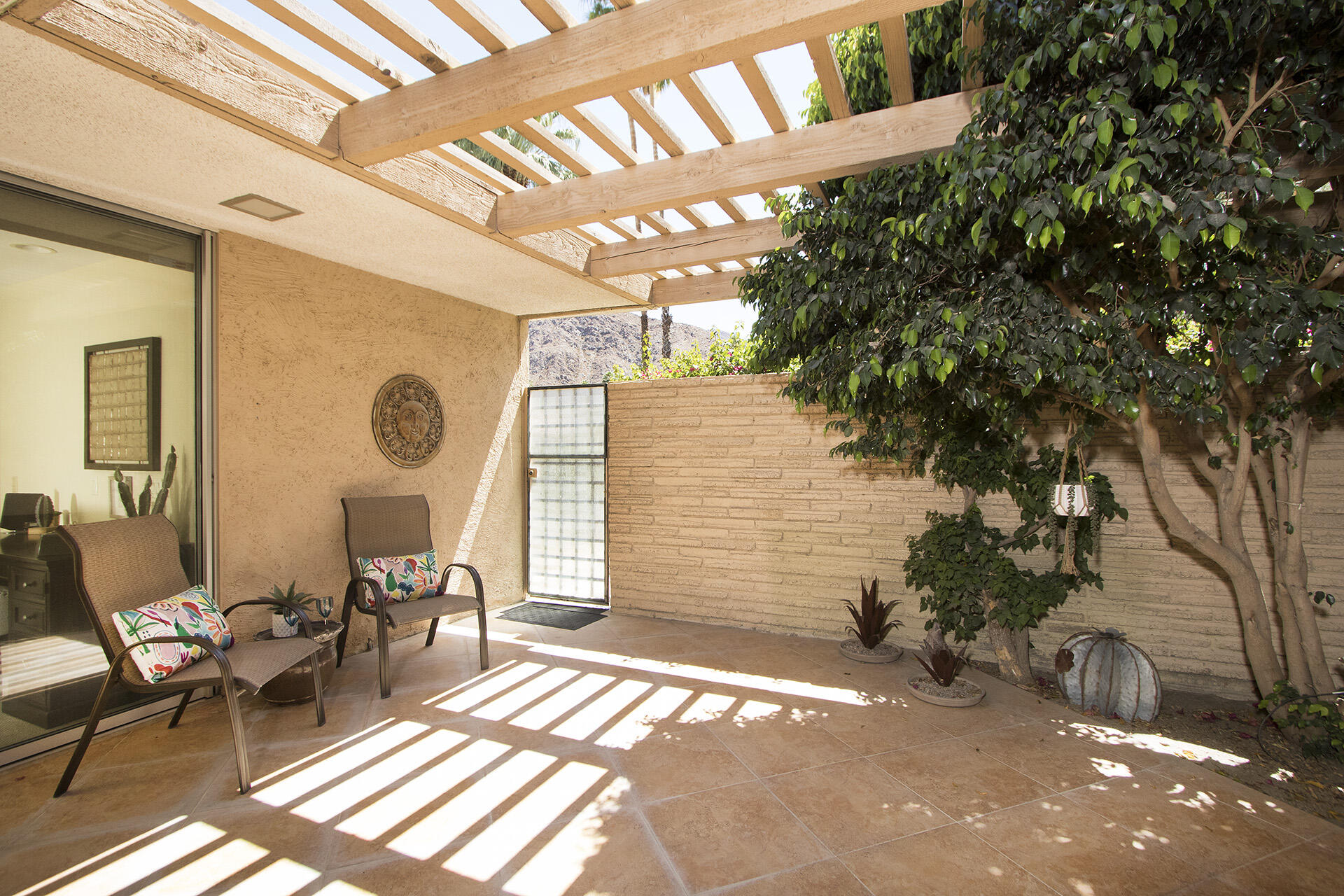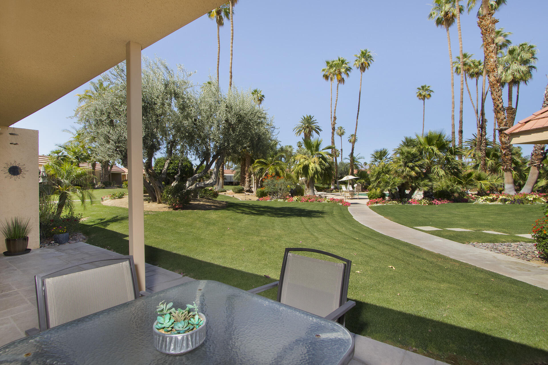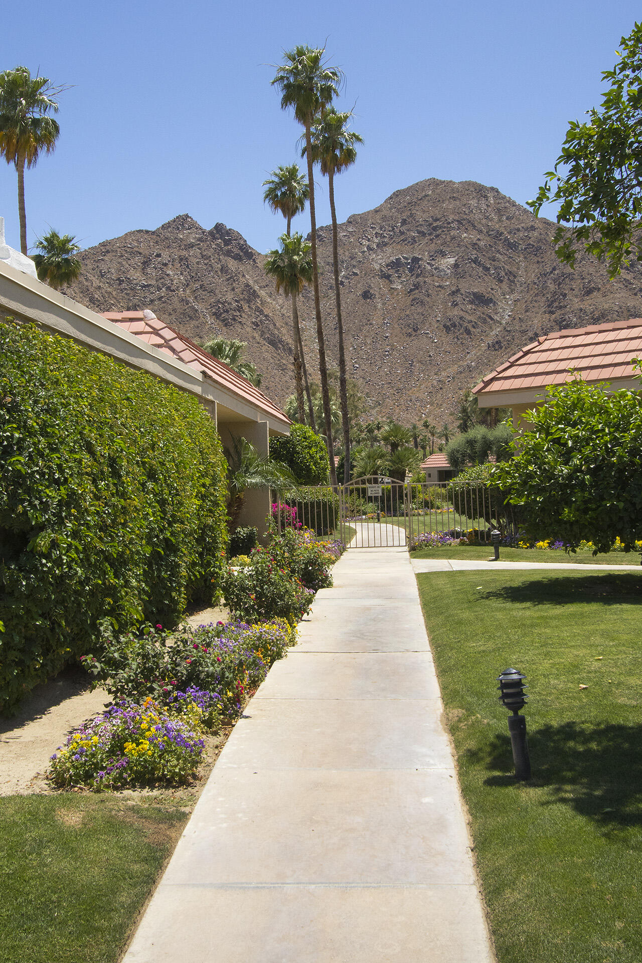 Fantastic location in the heart of the community is this 2 bedroom 2 bath single level condo located in the renowned Indian Wells Country club. Impeccably maintained and sold turnkey furnished. Recent upgrades include a new spray foam roof, new carpets, window treatments, & 2 new outdoor ceiling fans. The remodeled kitchen has lighted wood cabinets & Italian granite backsplash that mimics the beautiful iconic mountains. Each bedroom suite shares a cozy patio looking out to the mountains & each has its own walk in closet and bathroom. Other important features are high ceilings, travertine marble floors laid on the Versaille pattern and a very open floor plan. Enjoy the lush, tropical landscaping & the short walk to the pool area from your patio. 16 private units surround the pool area with an exterior gate away from the pool, which makes the views more peaceful. Mountain views all around you with a very private & quiet, shady patio & decorative dark slate tile complete this home. 2 car detached garage with storage cabinets, a lighted workbench and mounted bike rack. IWCC has 24/7 monitored gates with live guards. Community BBQ, a shuffleboard area, and the heated pool is salt water! Residents of Indian Wells receive discounts at local participating restaurants, hotels and golf courses and passes to the annual world renowned Paribas Tennis tournament.Interested in this Listing?