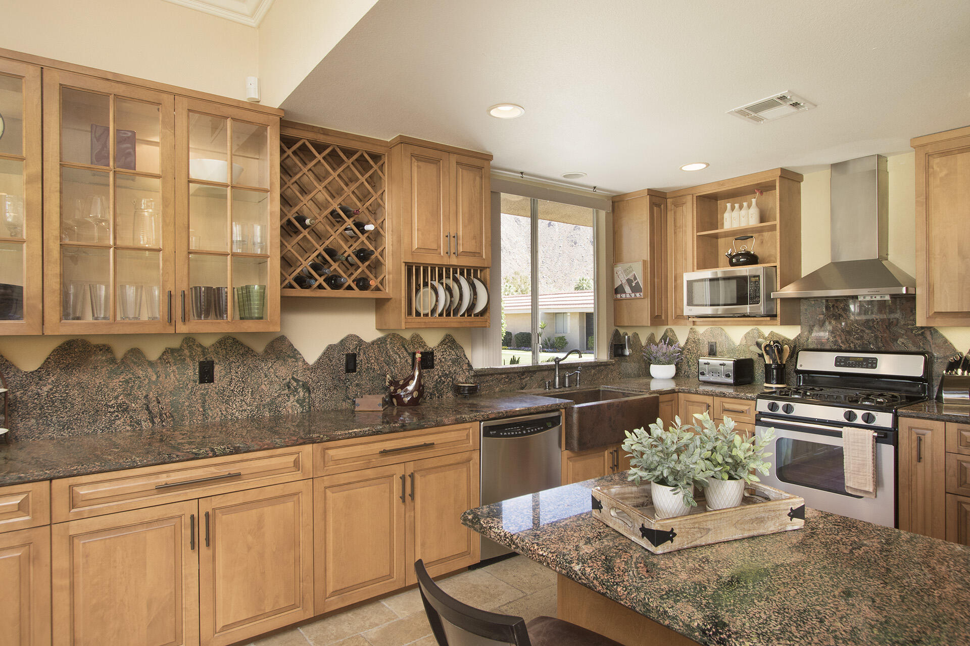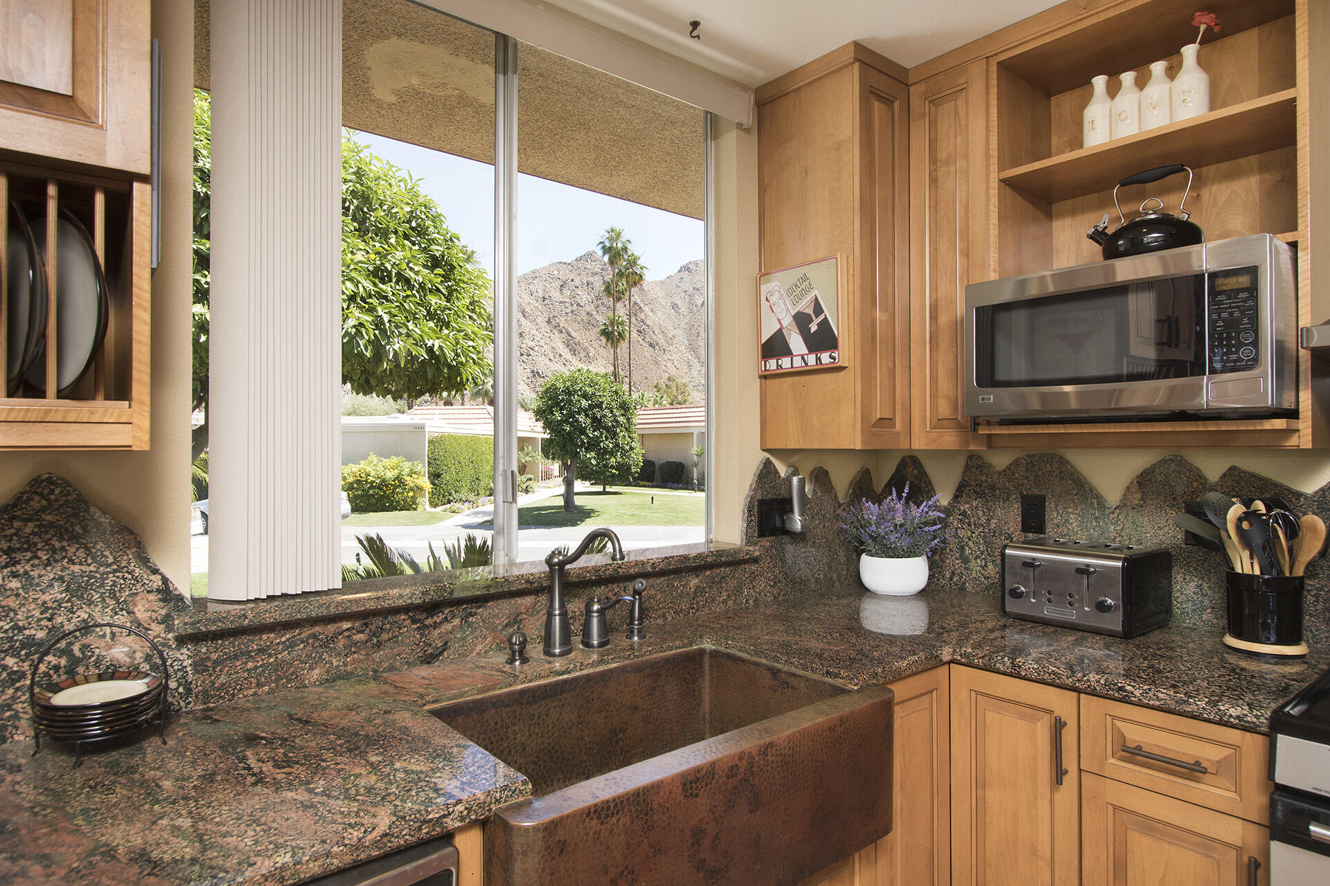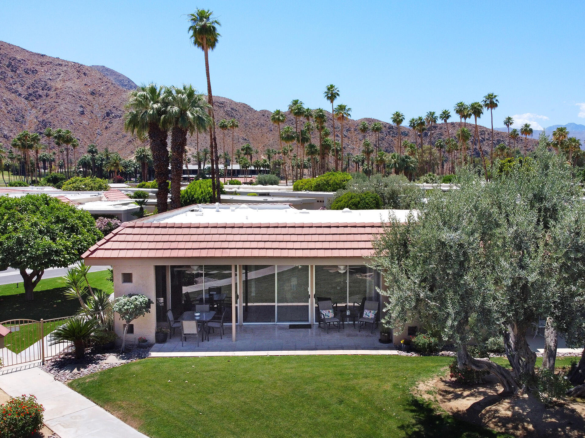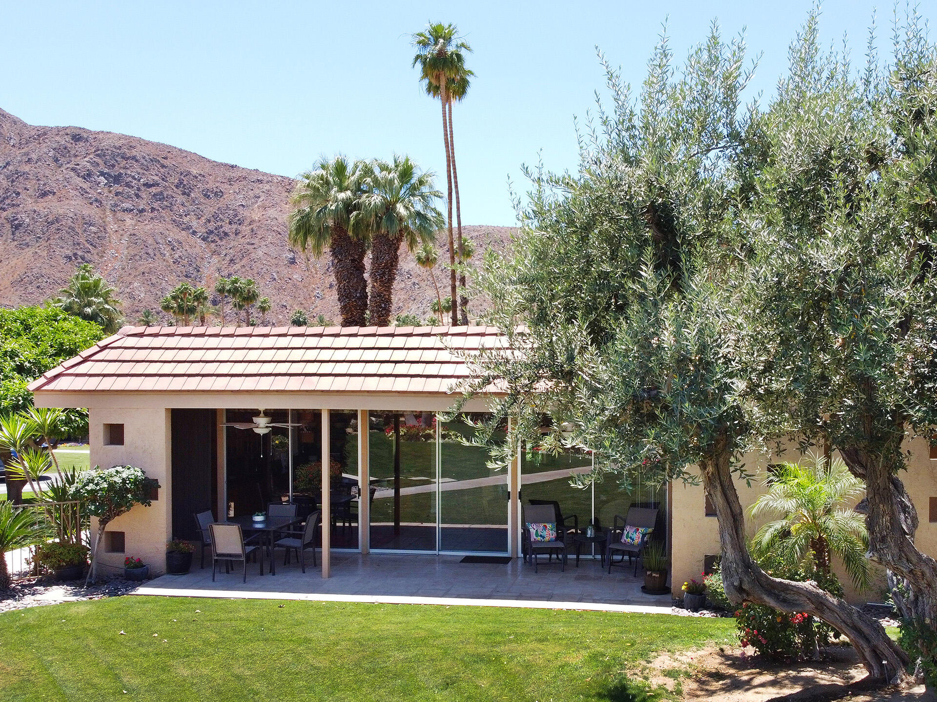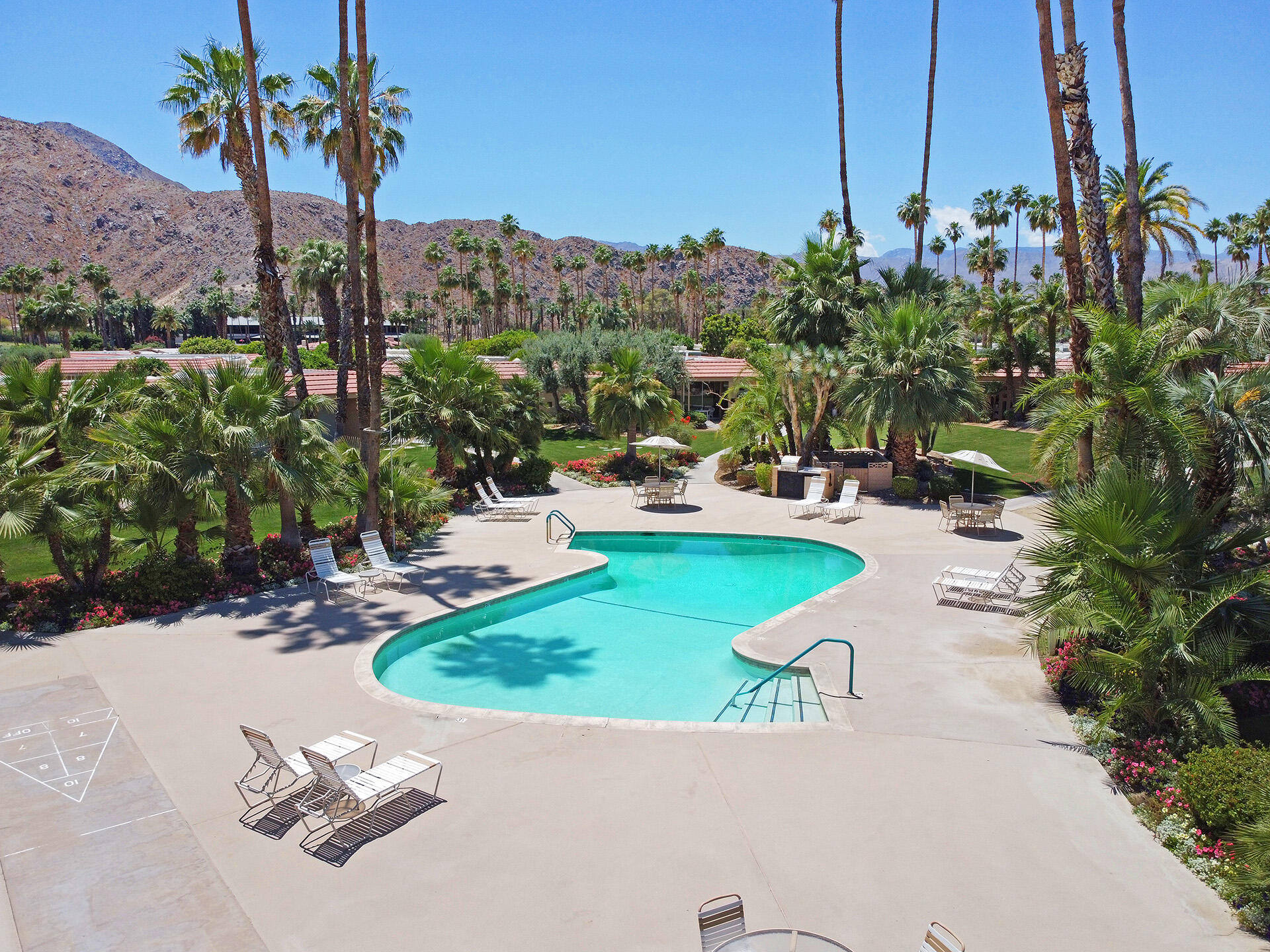 Fantastic location in the heart of the community is this 2 bedroom 2 bath single level condo located in the renowned Indian Wells Country club. Impeccably maintained and sold turnkey furnished. Recent upgrades include a new spray foam roof, new carpets, window treatments, & 2 new outdoor ceiling fans. The remodeled kitchen has lighted wood cabinets & Italian granite backsplash that mimics the beautiful iconic mountains. Each bedroom suite shares a cozy patio looking out to the mountains & each has its own walk in closet and bathroom. Other important features are high ceilings, travertine marble floors laid on the Versaille pattern and a very open floor plan. Enjoy the lush, tropical landscaping & the short walk to the pool area from your patio. 16 private units surround the pool area with an exterior gate away from the pool, which makes the views more peaceful. Mountain views all around you with a very private & quiet, shady patio & decorative dark slate tile complete this home. 2 car detached garage with storage cabinets, a lighted workbench and mounted bike rack. IWCC has 24/7 monitored gates with live guards. Community BBQ, a shuffleboard area, and the heated pool is salt water! Residents of Indian Wells receive discounts at local participating restaurants, hotels and golf courses and passes to the annual world renowned Paribas Tennis tournament.Interested in this Listing?
