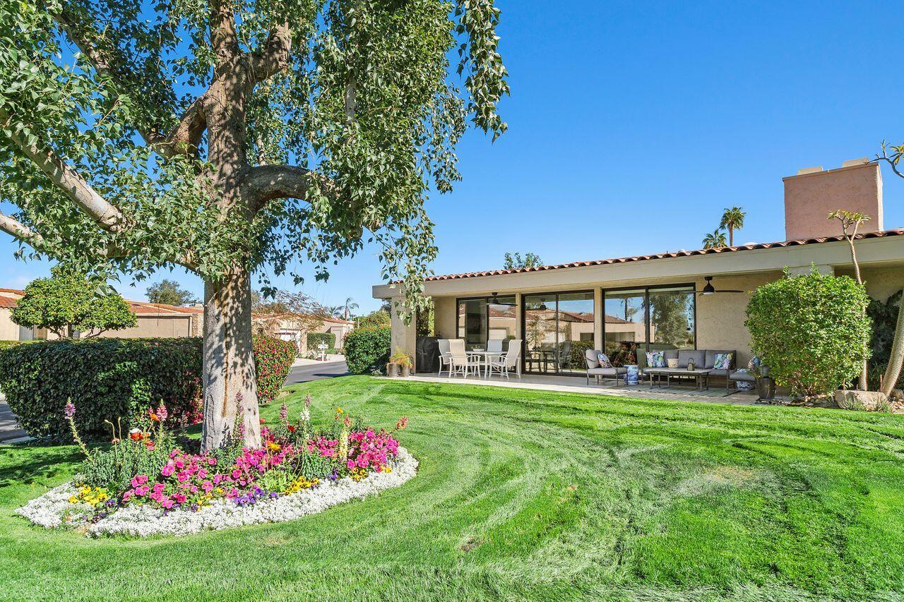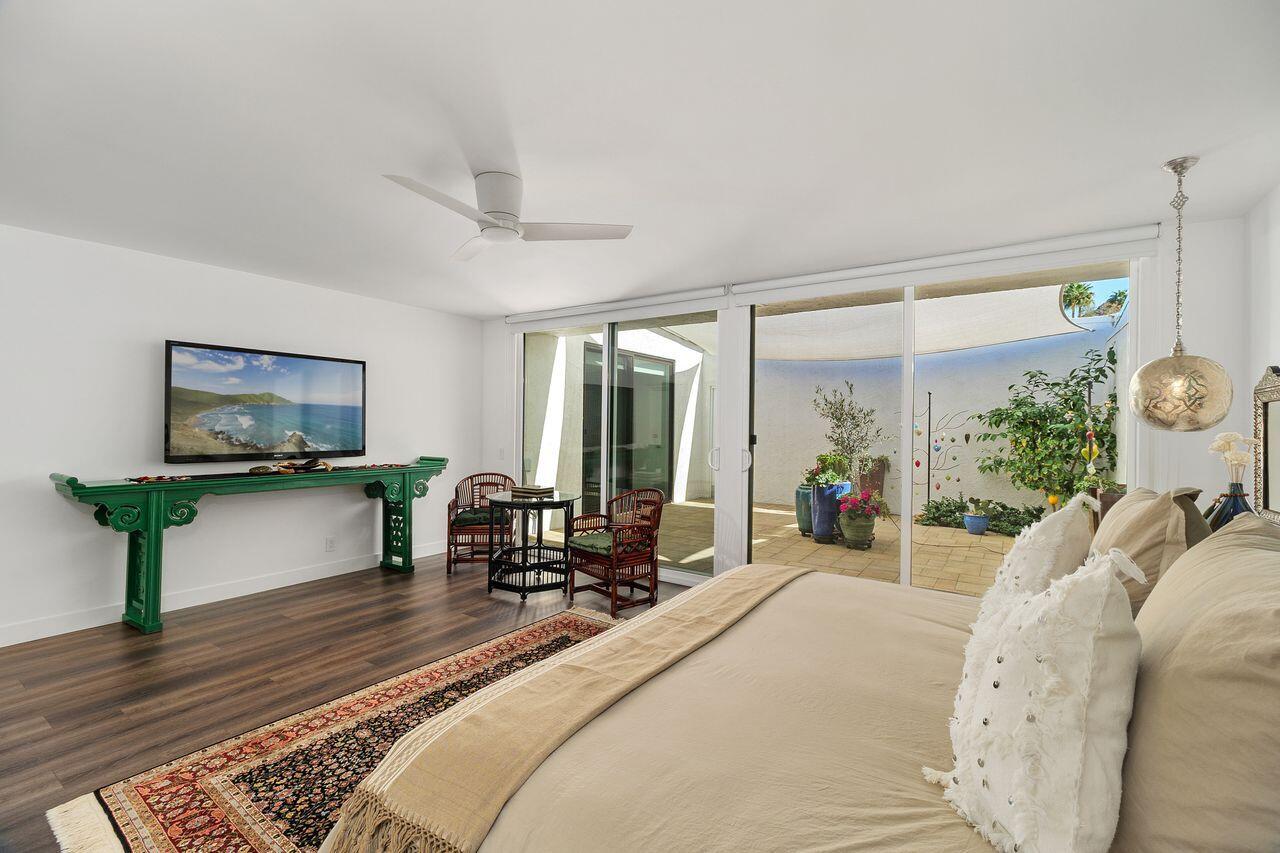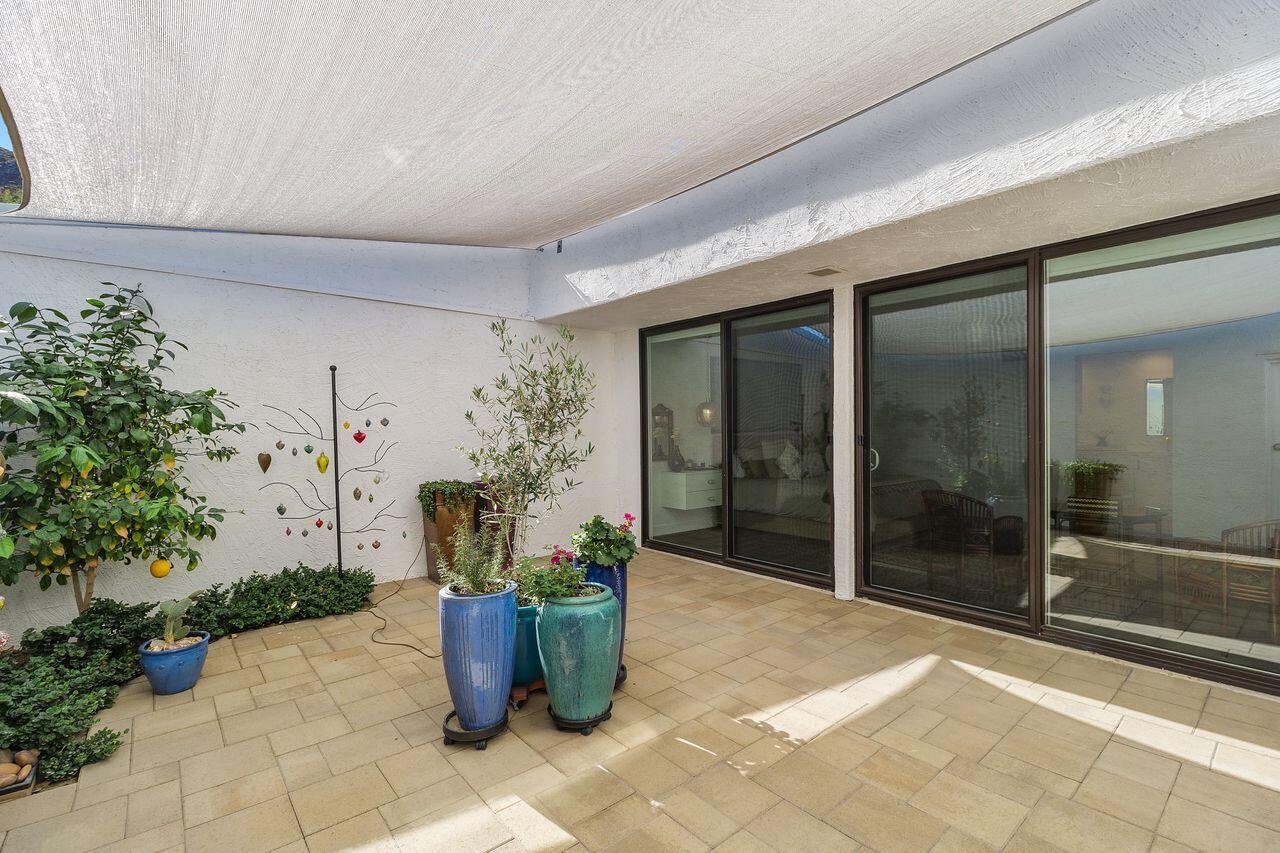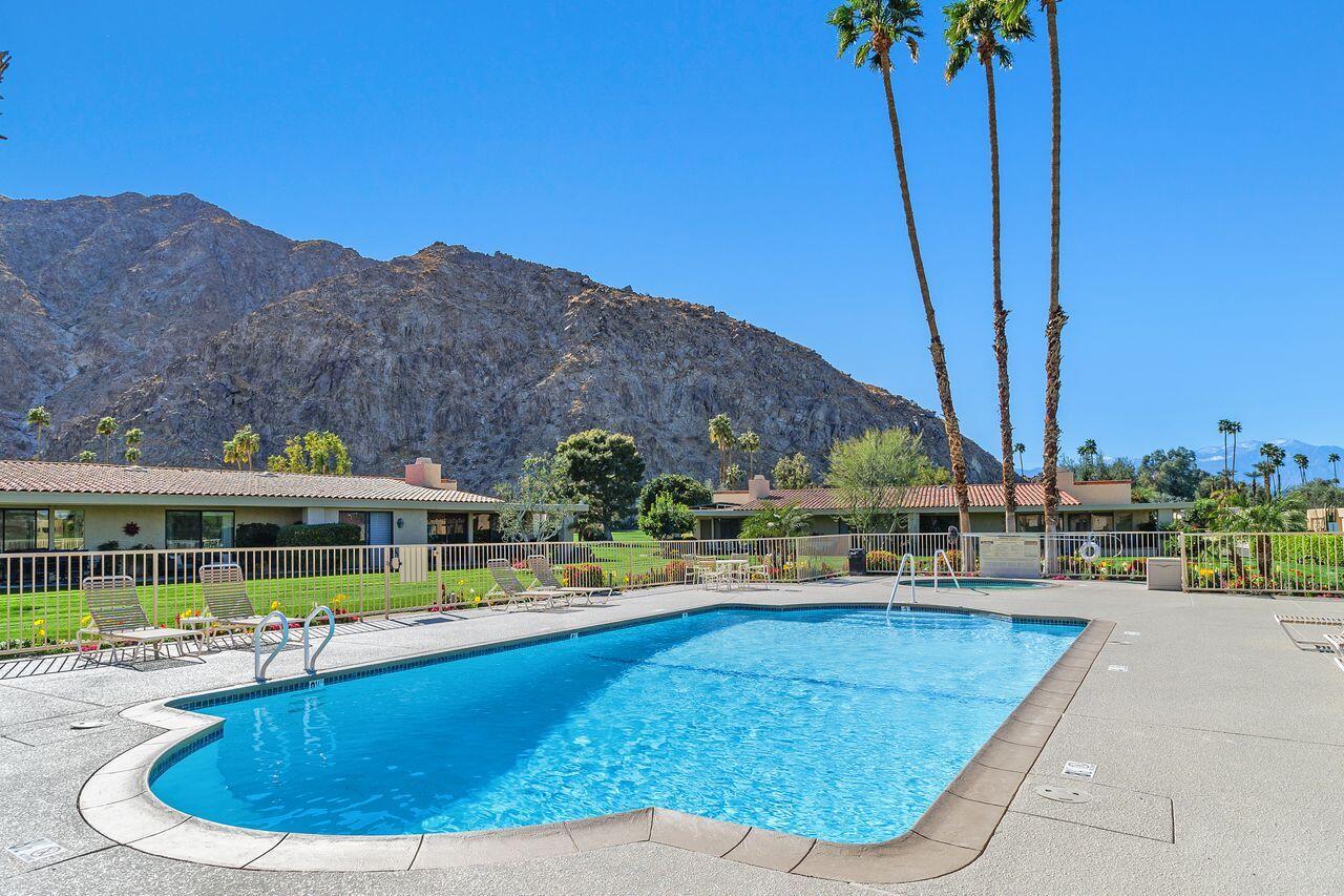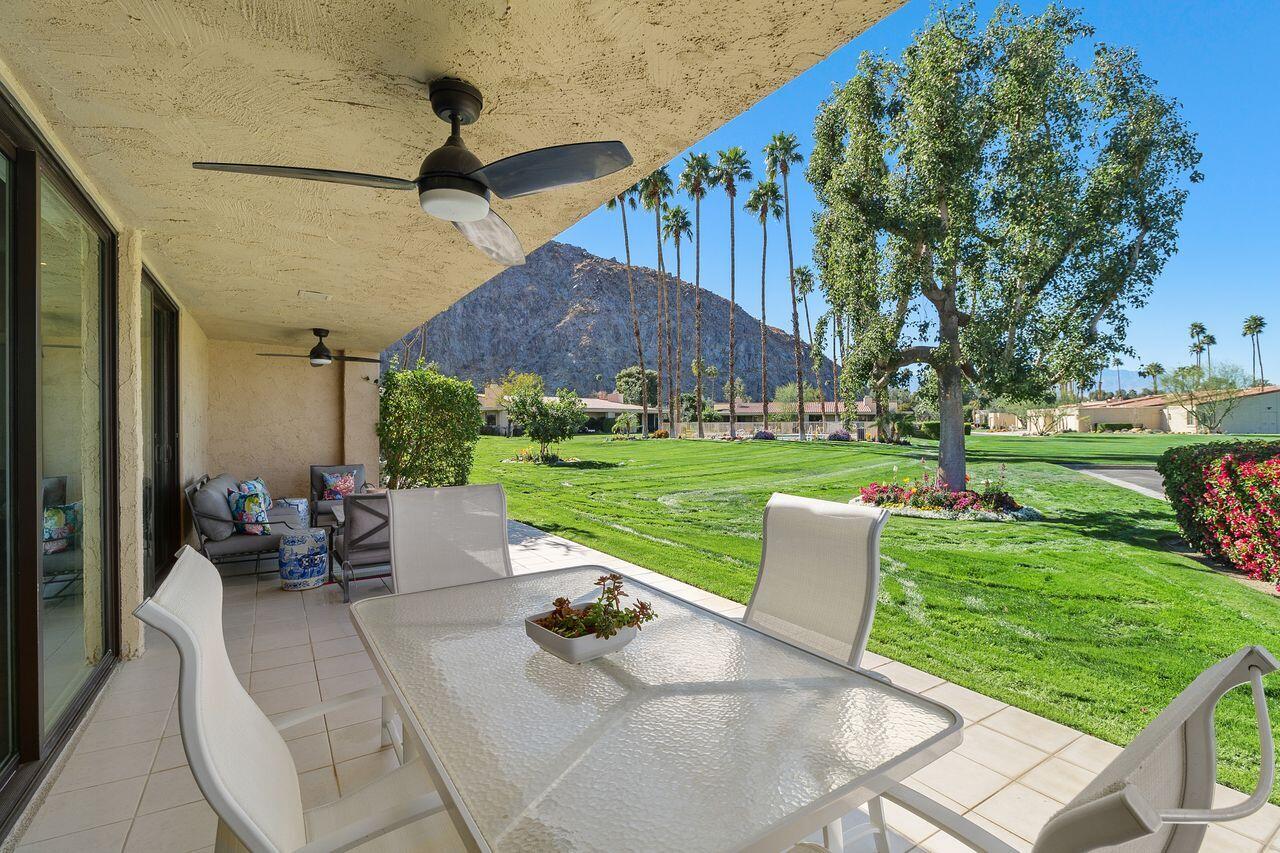 Experience the ultimate desert lifestyle with this exquisitely reimagined 2,008 SF, 2-bedroom, 2-bathroom condo located in Indian Wells Country Club. This luxurious condo offers magnificent views of the mountains, golf course, and community pool, making it an ideal retreat for year-round indoor/outdoor living. The open-concept kitchen is a chef's dream, featuring a full suite of Thermador appliances, including a built-in counter-depth fridge, gas range, electric oven, dishwasher, microwave drawer, and two beverage drawers. The kitchen seamlessly flows into the spacious living and dining areas with vaulted wood-beam ceilings and a cozy stone fireplace. Both generously sized bedrooms open to a private enclosed atrium, providing a tranquil escape. The bedrooms also offer direct access to the 2-car garage plus golf cart garage. Features include waterproof laminate flooring, marble bathroom floors, Digitalart Bianco glazed porcelain bathroom walls (crafted in Italy), Brizo by Delta bathroom faucets and fixtures, and brand new Madison sliding doors and windows. Other features include new electrical wiring, new HVAC system and ducting installed in 2021, and a gas line to the back patio for convenient BBQs. This condo combines elegance, comfort, and modern sophistication, making it the perfect home for those seeking the finest in desert living. As a resident of Indian Wells, you'll enjoy exclusive benefits, including 20% discounts on food and spa services, as well as reduced rates for golfing at the renowned Indian Wells Golf Resort.Interested in this Listing?