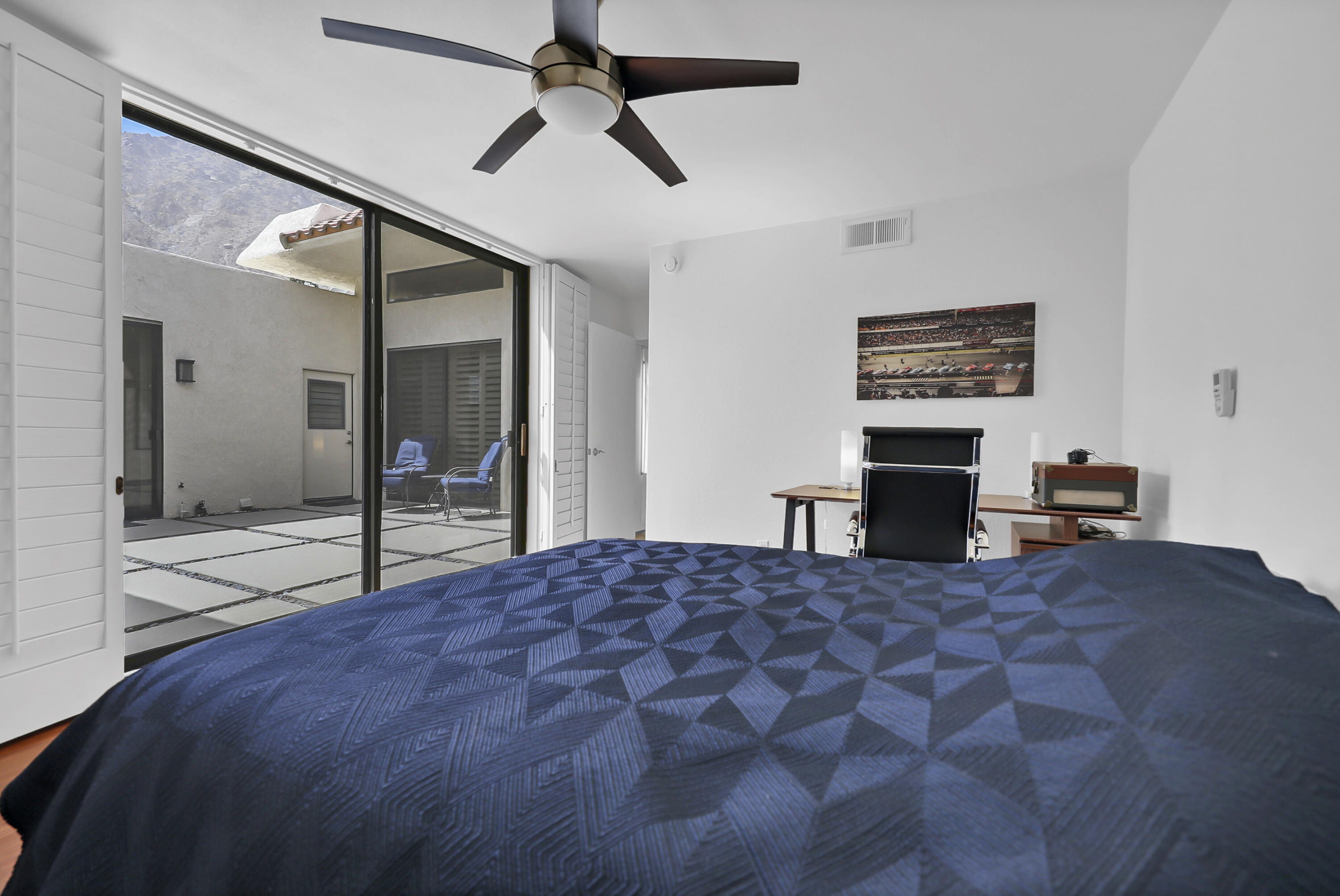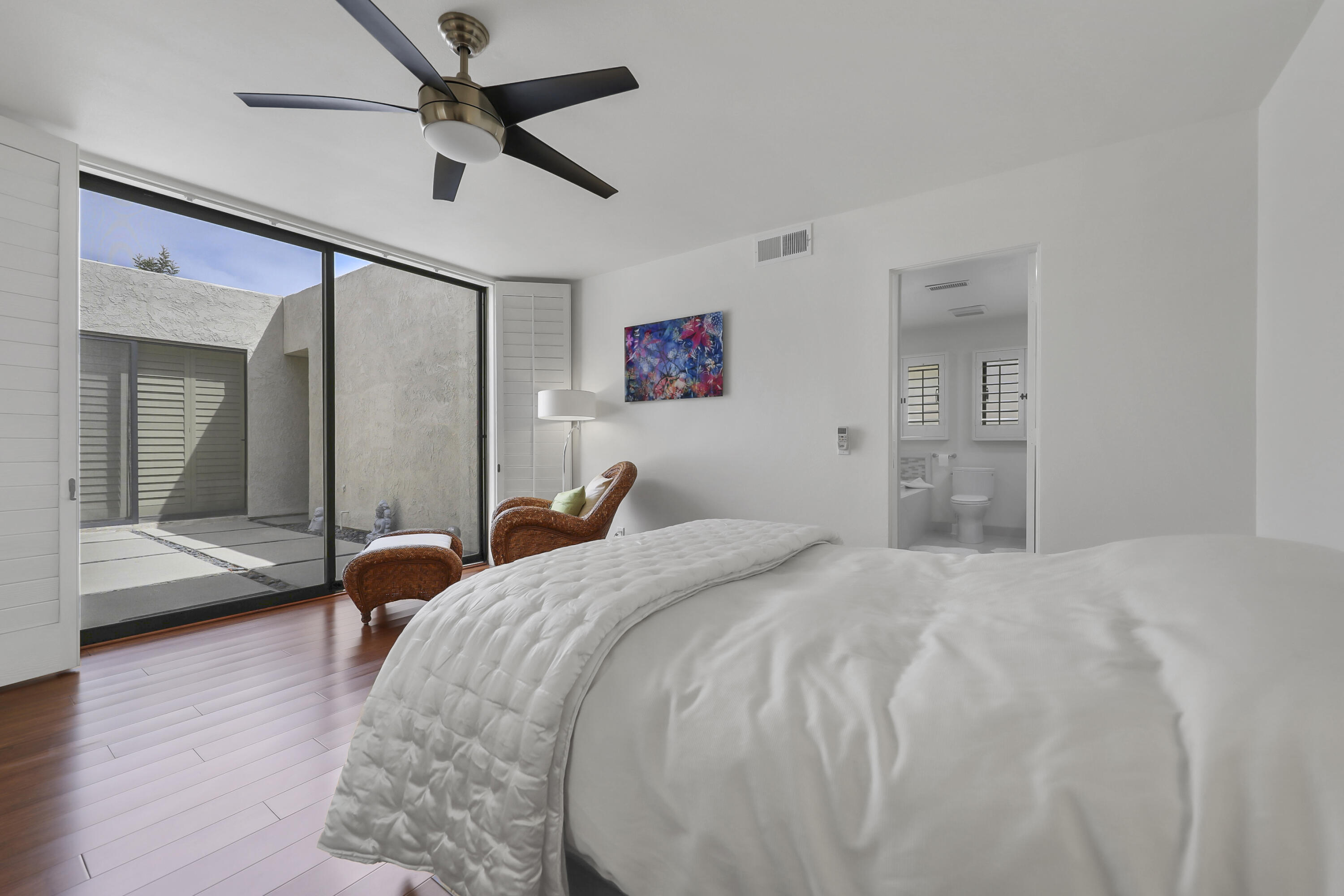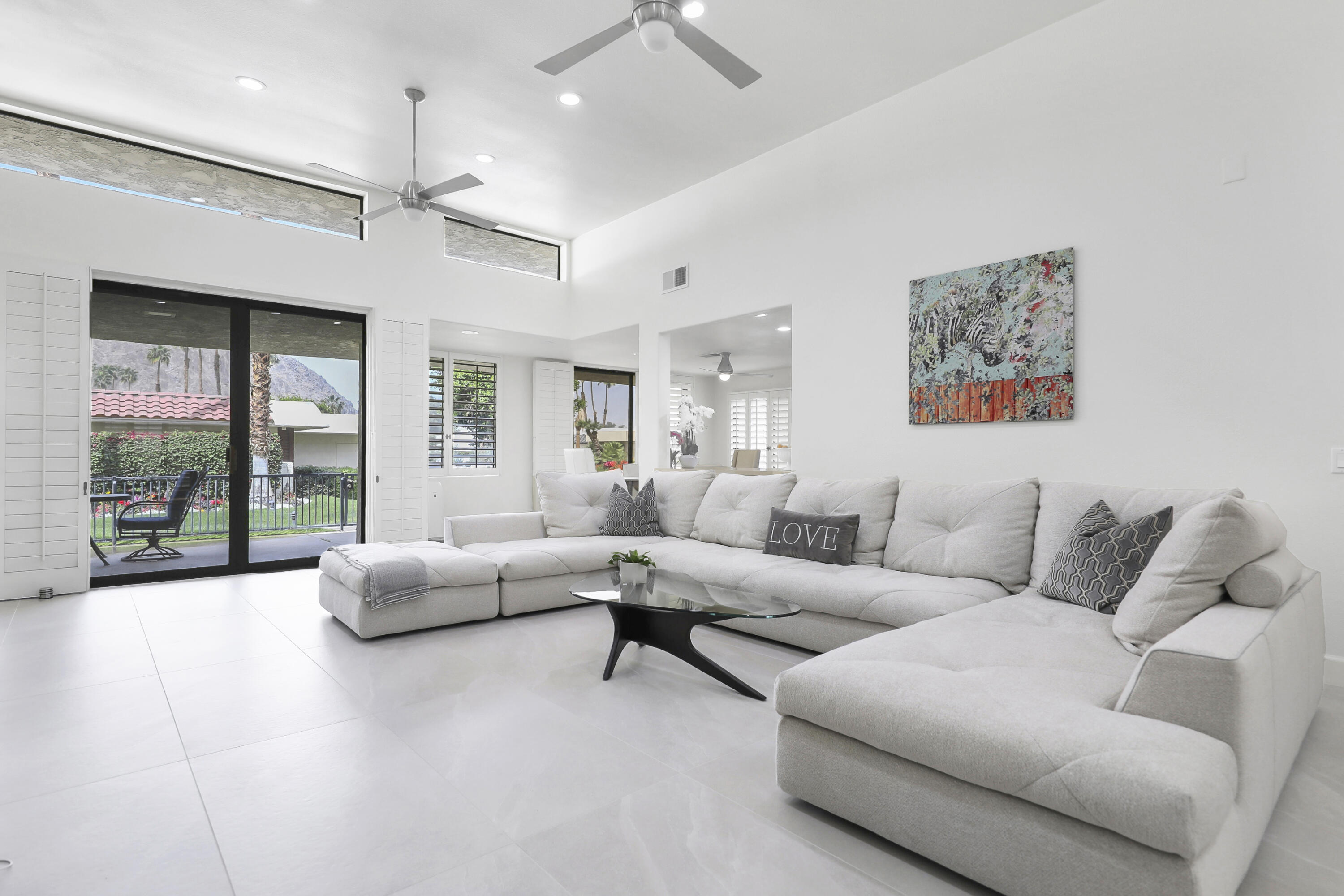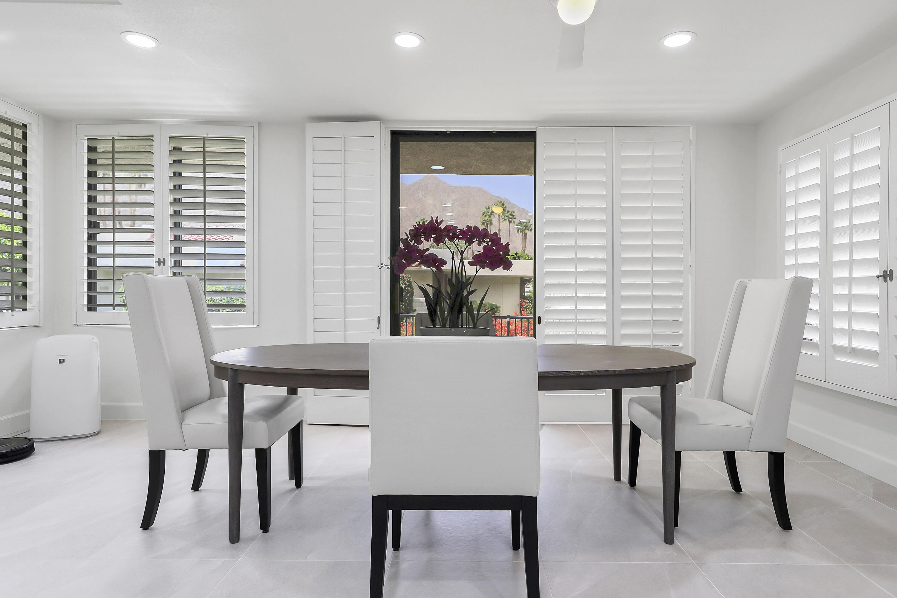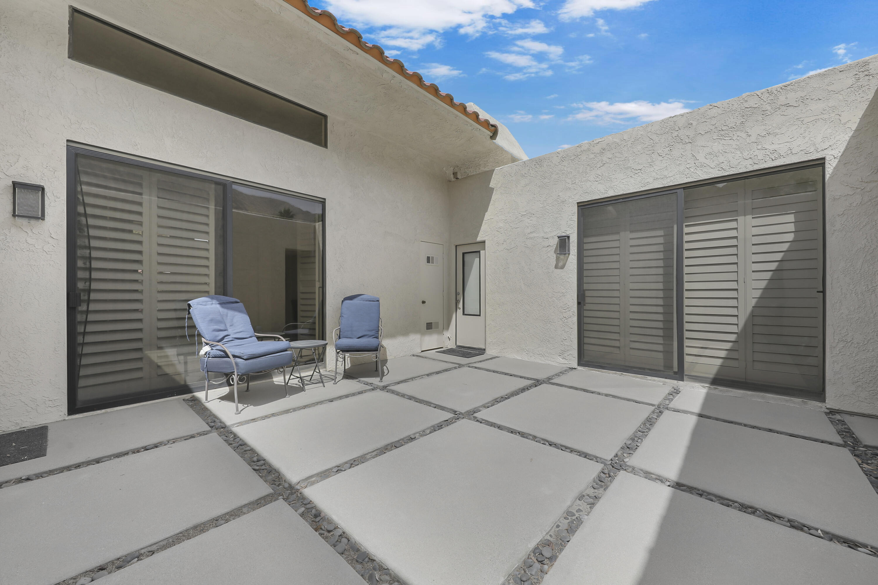 Outstanding contemporary 3 bed, 3.5 bath, home office, 2 cars plus golf cart garage, 2740 Sq. Ft. Condo with ideal corner location in Sandpiper Cove at prestigious Indian Wells Country Club. Homeowner has remodeled with top-of-the-line Euro cabinets, quartz countertops throughout, stainless appliances, modern plumbing fixtures, water purification system, modern ceiling fans with lights, hardwood floors in bedrooms, beautiful porcelain tiled floors in kitchen and bathrooms. Fabulous views of mountains with community pool and tennis court nearby. The Open floor plan showcases modern Gourmet Kitchen with an abundance of glossy walnut cabinets, quartz countertops, includes Fisher Paykel stainless appliances, Bosch dishwasher, gas stovetop, wine cooler, and large Kitchen window with mountain views. Beautiful Dining area adjoins with views and walk out to private expansive patio. The Great Room has gorgeous high ceilings and gas fireplace with glass crystals and quartz hearth. Primary Bedroom features fantastic views, spacious Primary Bath with dual sinks, undercounter lighting, custom mirrors which function as cabinets, two walk-in closets, and beautiful big shower. Guest Bedrooms step out to private spacious atrium. One of the Guest Bedrooms has jet tub spa and shower, dual sinks and walk-in closet. Powder Bath has striking onyx waterfall countertop. Come and enjoy the sunny Desert Lifestyle in Indian Wells with great shopping, nightlife, golf, and tennis nearby.Interested in this Listing?