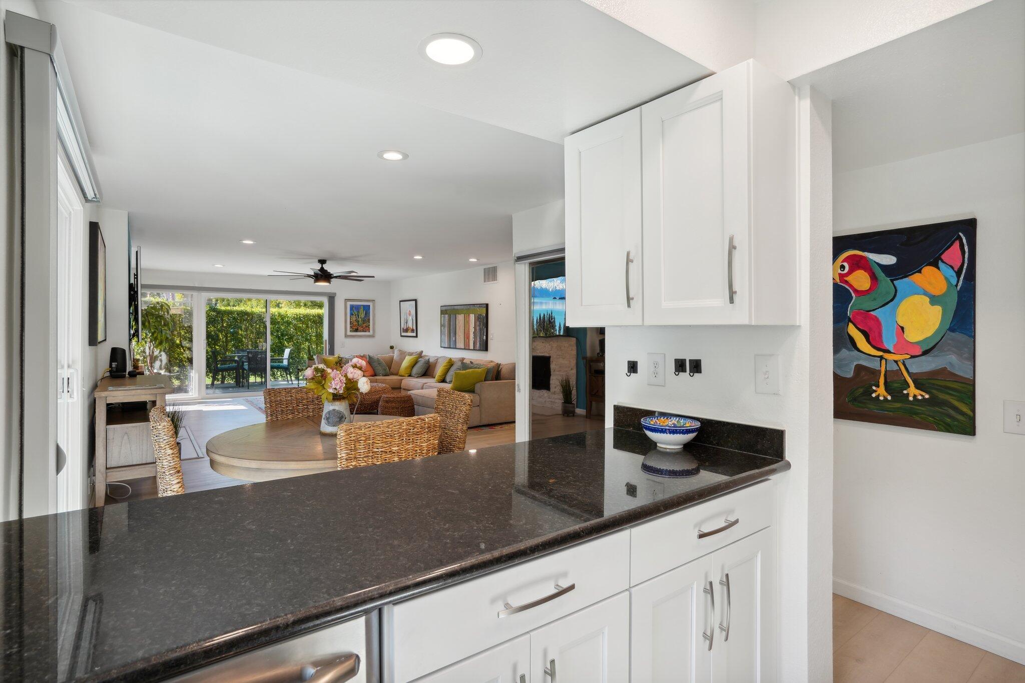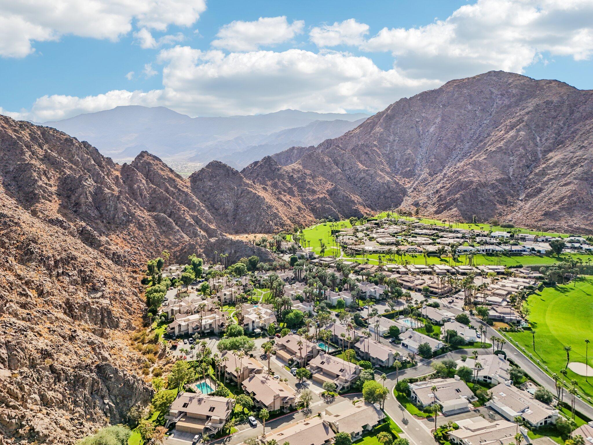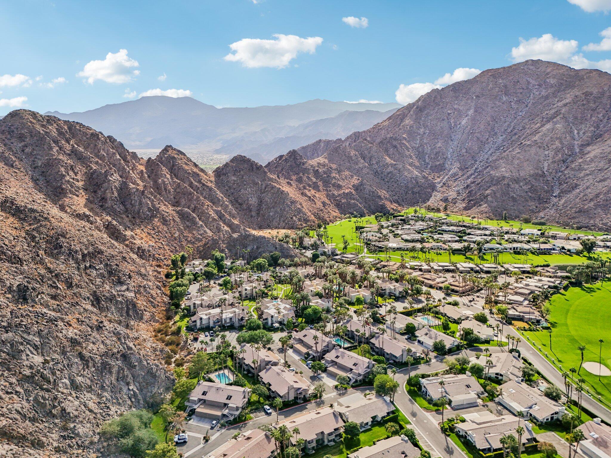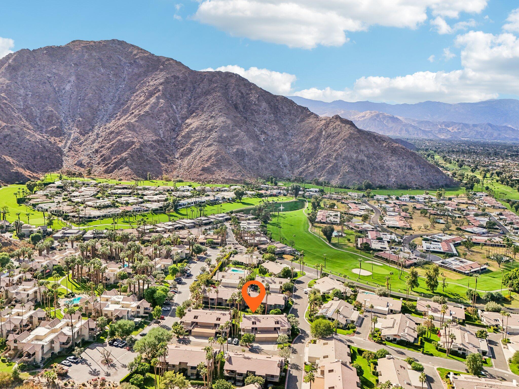 BEST BARGAIN IN ALL OF INDIAN WELLS!! Hurry to see this stunning property before it's gone! The gated community of Mountain Cove is a park-like retreat that offers such stunning mountain views, it feels as if you could reach out and touch them. Within its gates, this 2 bedroom, 2 bath, FULLY RENOVATED condo is being offered at a STEAL. Now on the market far below market value, don't miss out on this fantastic opportunity! Immediately upon entering, you see the modern vinyl plank flooring that runs throughout the entire property. The fireplace in the living room has been refreshed with a neutral stacked stone design and tile hearth. All of the slider doors are brand new and feature custom Hunter Douglas window coverings. The living room pops with a vibrant color palette and high end furnishings that are included with the property! In the kitchen you'll find stainless steel appliances and stone slab countertops. The brand new picture window gives plenty of light and offers lovely mountain views! The primary suite is spacious and relaxing with direct access to the back patio and community pool beyond, a walk-in closet and a primary bathroom that has been newly renovated with a walk-in shower and ample storage. Outside, you'll be able to enjoy the peaceful sounds of birds chirping from your private patio. Mature Ficus trees enclose the extended outdoor space and allow you to enjoy the fresh air and lovely views while shielding you from passersby. This home would make an exceptional seasonal rental or vacation property.Interested in this Listing?