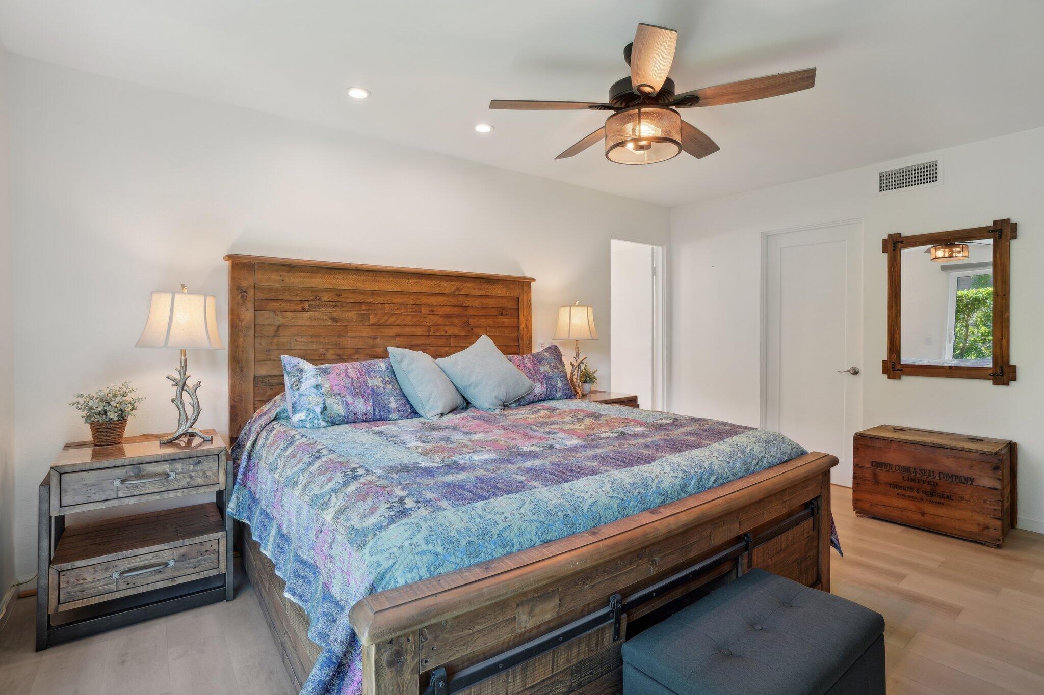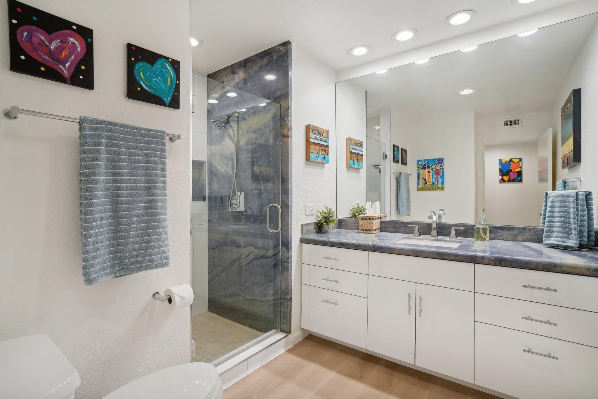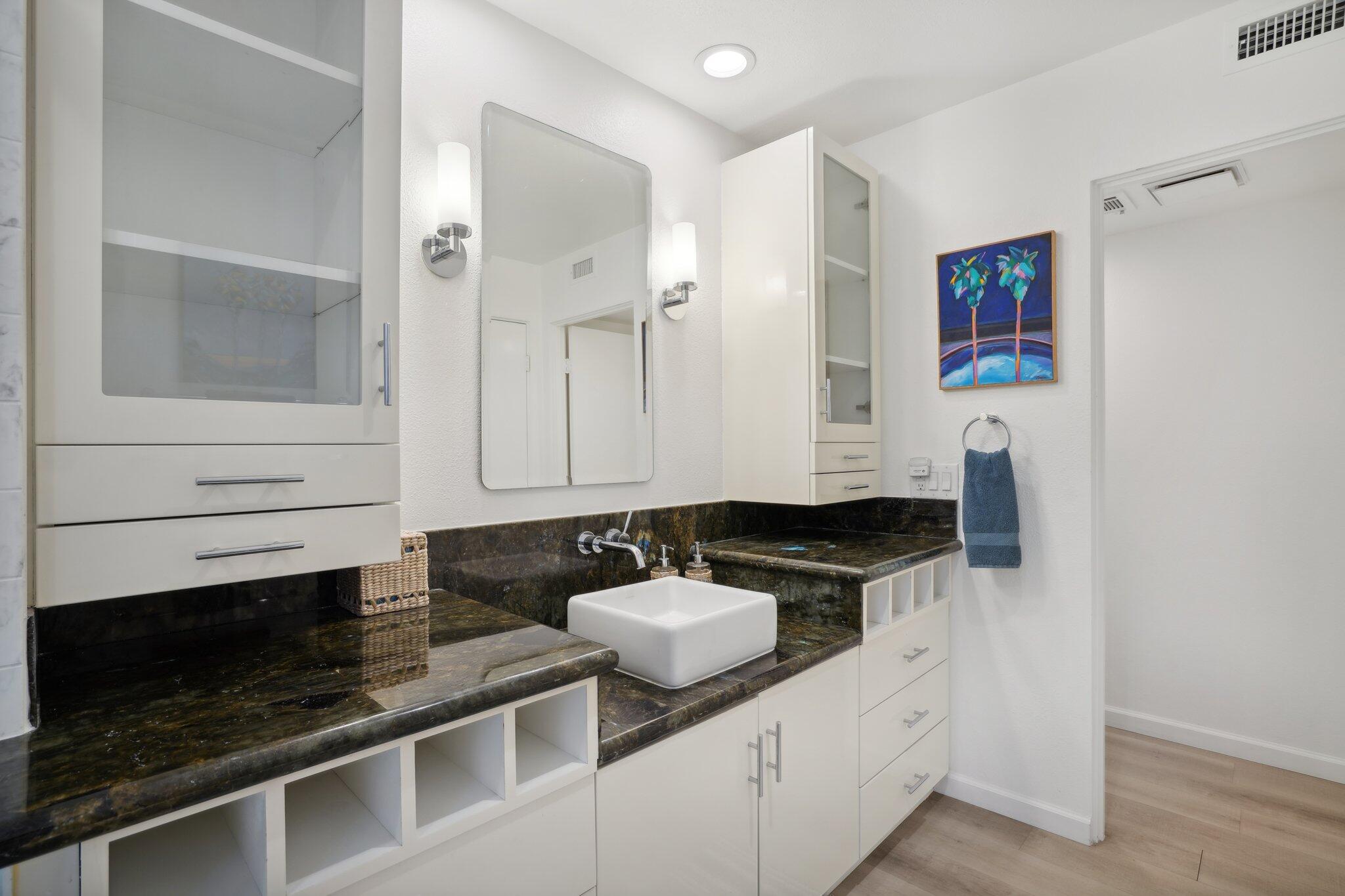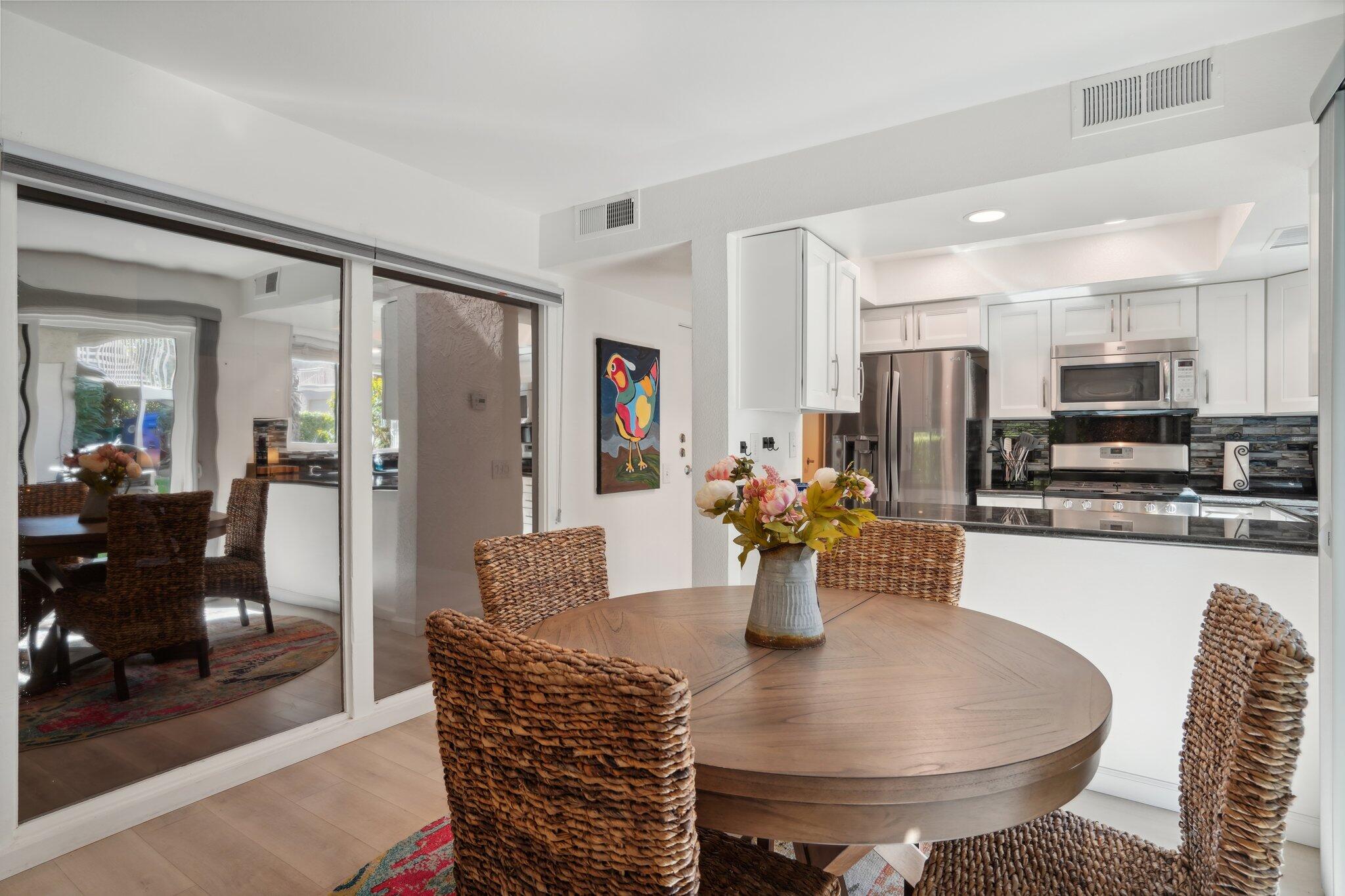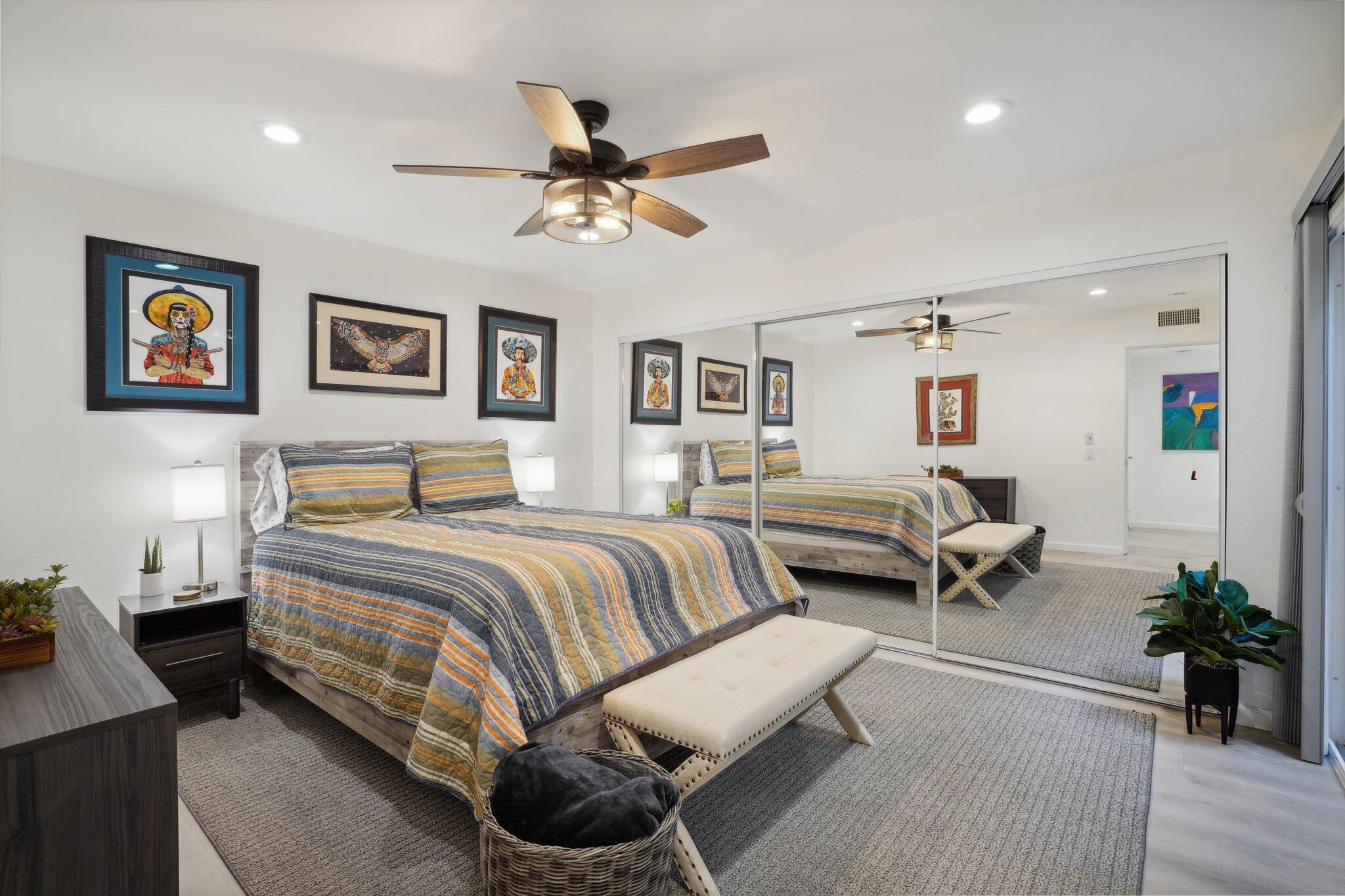 BEST BARGAIN IN ALL OF INDIAN WELLS!! Hurry to see this stunning property before it's gone! The gated community of Mountain Cove is a park-like retreat that offers such stunning mountain views, it feels as if you could reach out and touch them. Within its gates, this 2 bedroom, 2 bath, FULLY RENOVATED condo is being offered at a STEAL. Now on the market far below market value, don't miss out on this fantastic opportunity! Immediately upon entering, you see the modern vinyl plank flooring that runs throughout the entire property. The fireplace in the living room has been refreshed with a neutral stacked stone design and tile hearth. All of the slider doors are brand new and feature custom Hunter Douglas window coverings. The living room pops with a vibrant color palette and high end furnishings that are included with the property! In the kitchen you'll find stainless steel appliances and stone slab countertops. The brand new picture window gives plenty of light and offers lovely mountain views! The primary suite is spacious and relaxing with direct access to the back patio and community pool beyond, a walk-in closet and a primary bathroom that has been newly renovated with a walk-in shower and ample storage. Outside, you'll be able to enjoy the peaceful sounds of birds chirping from your private patio. Mature Ficus trees enclose the extended outdoor space and allow you to enjoy the fresh air and lovely views while shielding you from passersby. This home would make an exceptional seasonal rental or vacation property.Interested in this Listing?