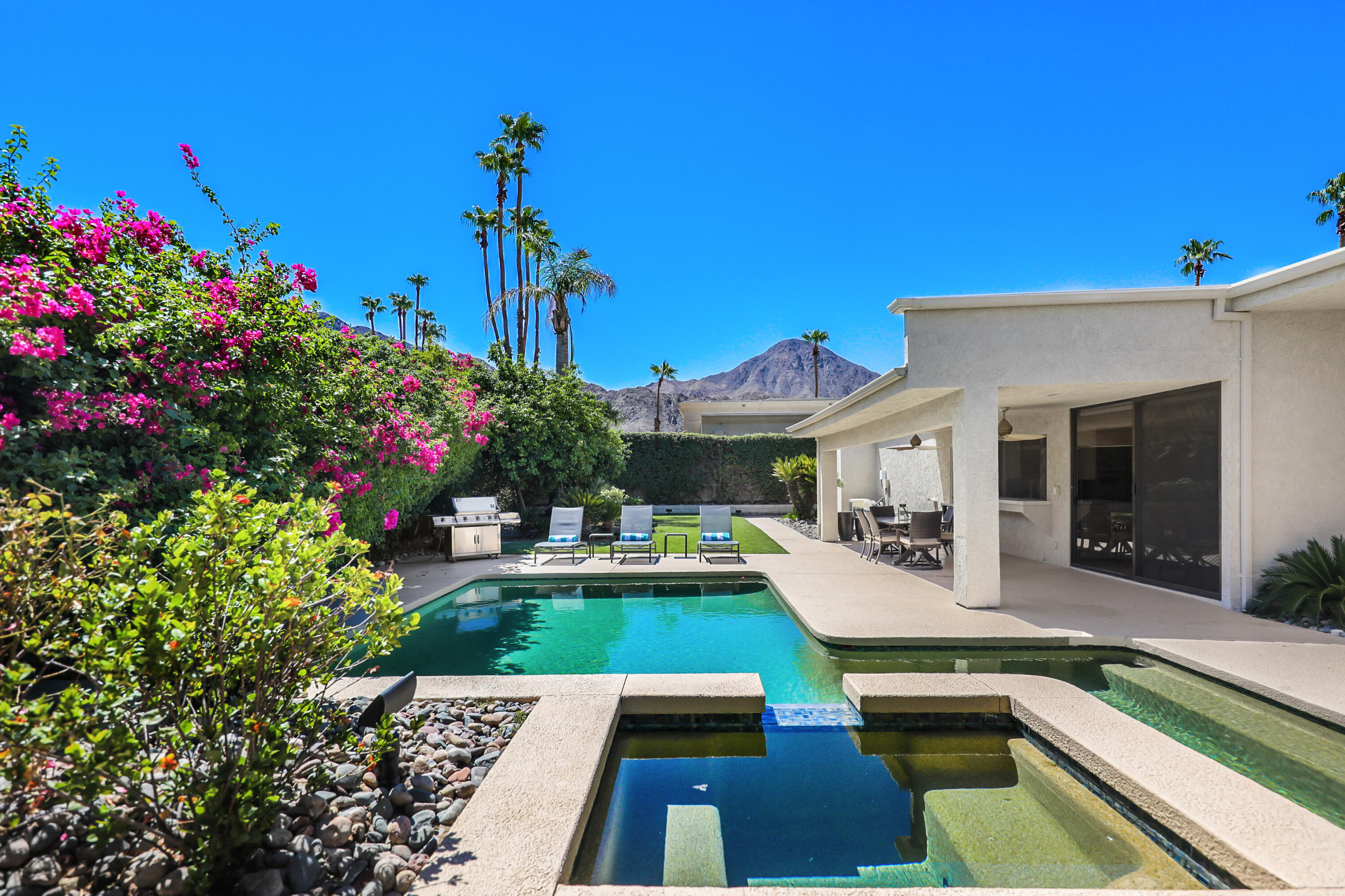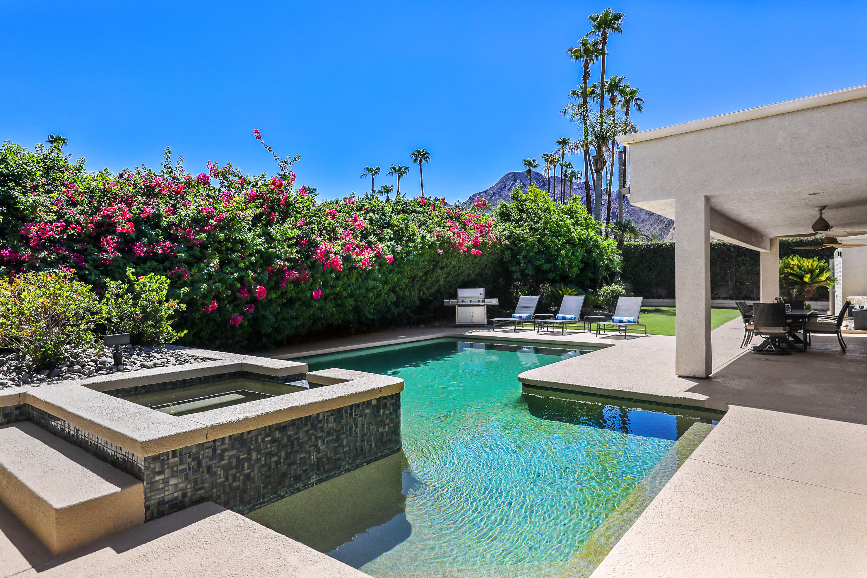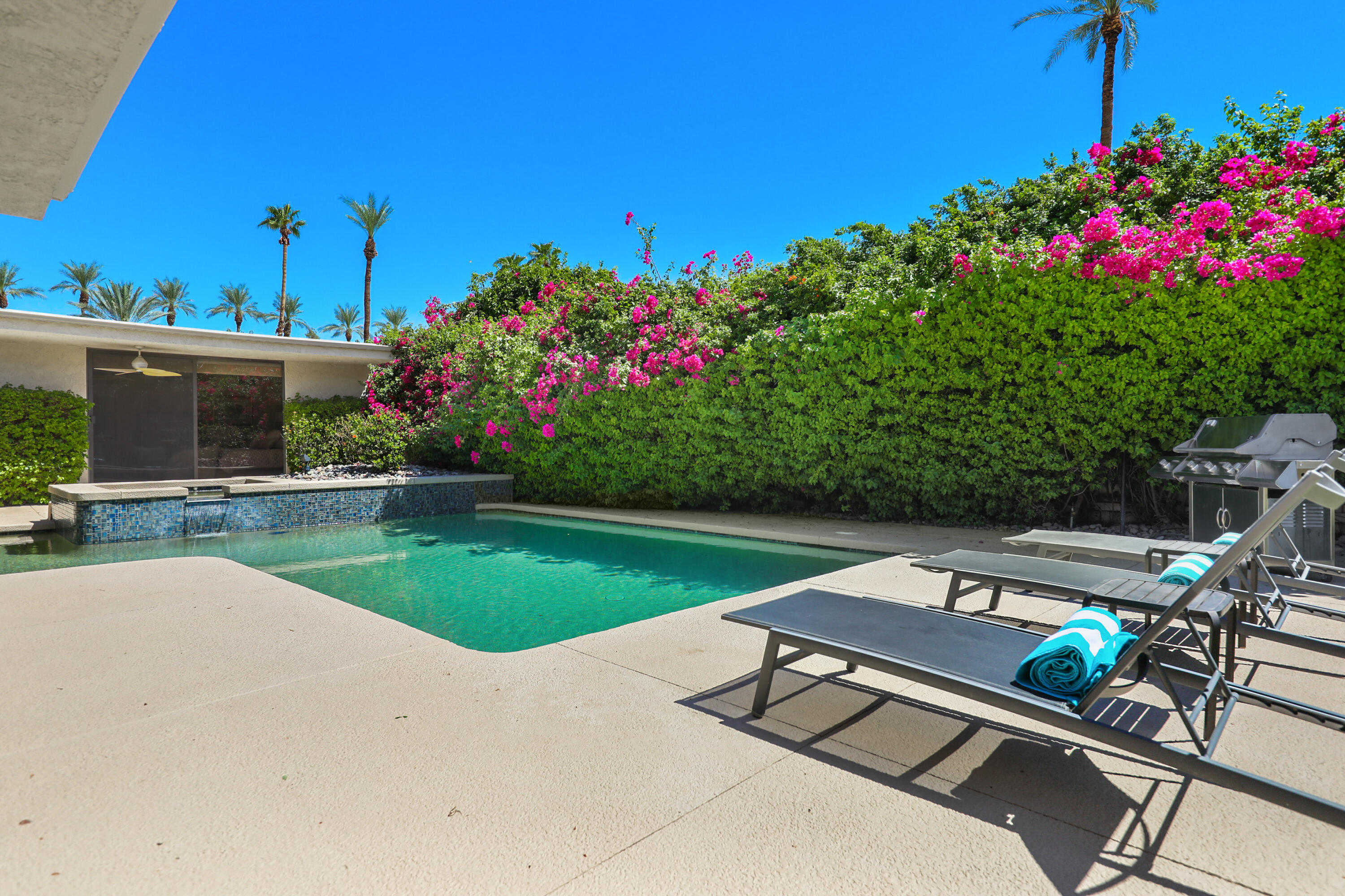 Located in the quiet neighborhood between El Dorado Street and Indian Wells Country Club sits this beautiful contemporary home, completely turn key furnished, for your 2023-2024 Seasonal visit to the Desert. One of the bedrooms is used as a office/study and the other two are large, primary bedrooms with ensuite bathrooms. The spacious elegant living room has high ceilings in a light filled space, lite from floor to ceiling from glass sliders across the back overlooking a large backyard. An entertainers delight, the yard features a large pebble tech pool and spa with lounge and sitting areas and an outdoor dining space. Also included, is a large gas BBQ and an outdoor fire pit for your enjoyment with beautiful mountain view. The well outfitted kitchen, dining room and adjacent den are all located on a separate side of the house. Shopping and dining in Palm Desert is located a short 10 minutes away. Come make this your Winter getaway this year!Interested in this Listing?