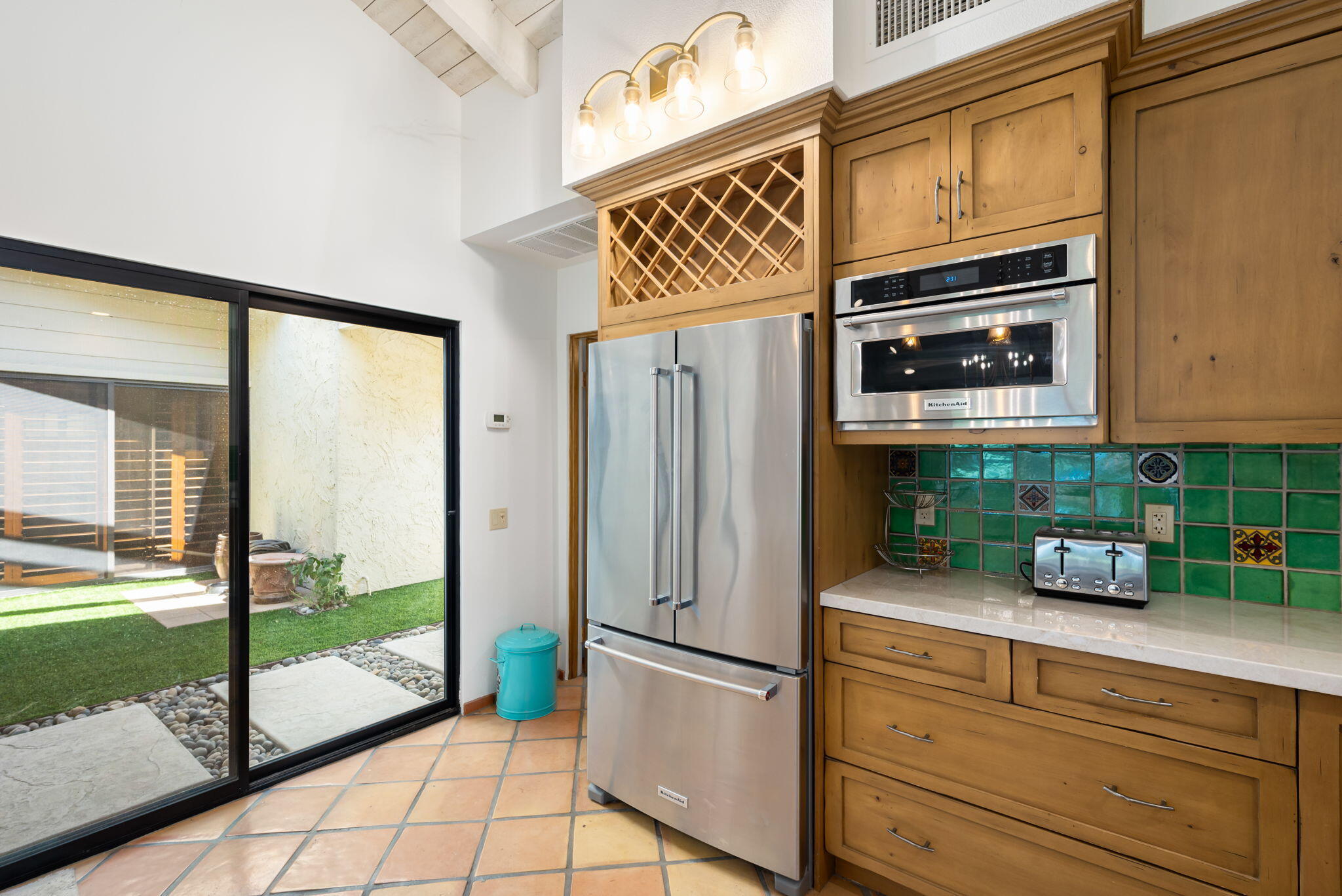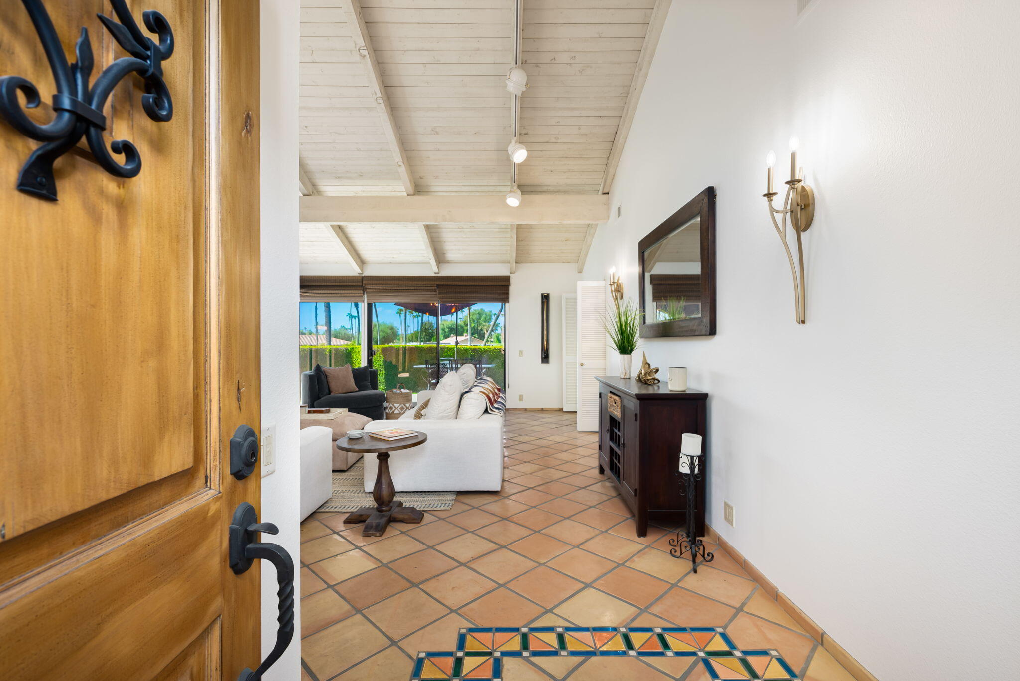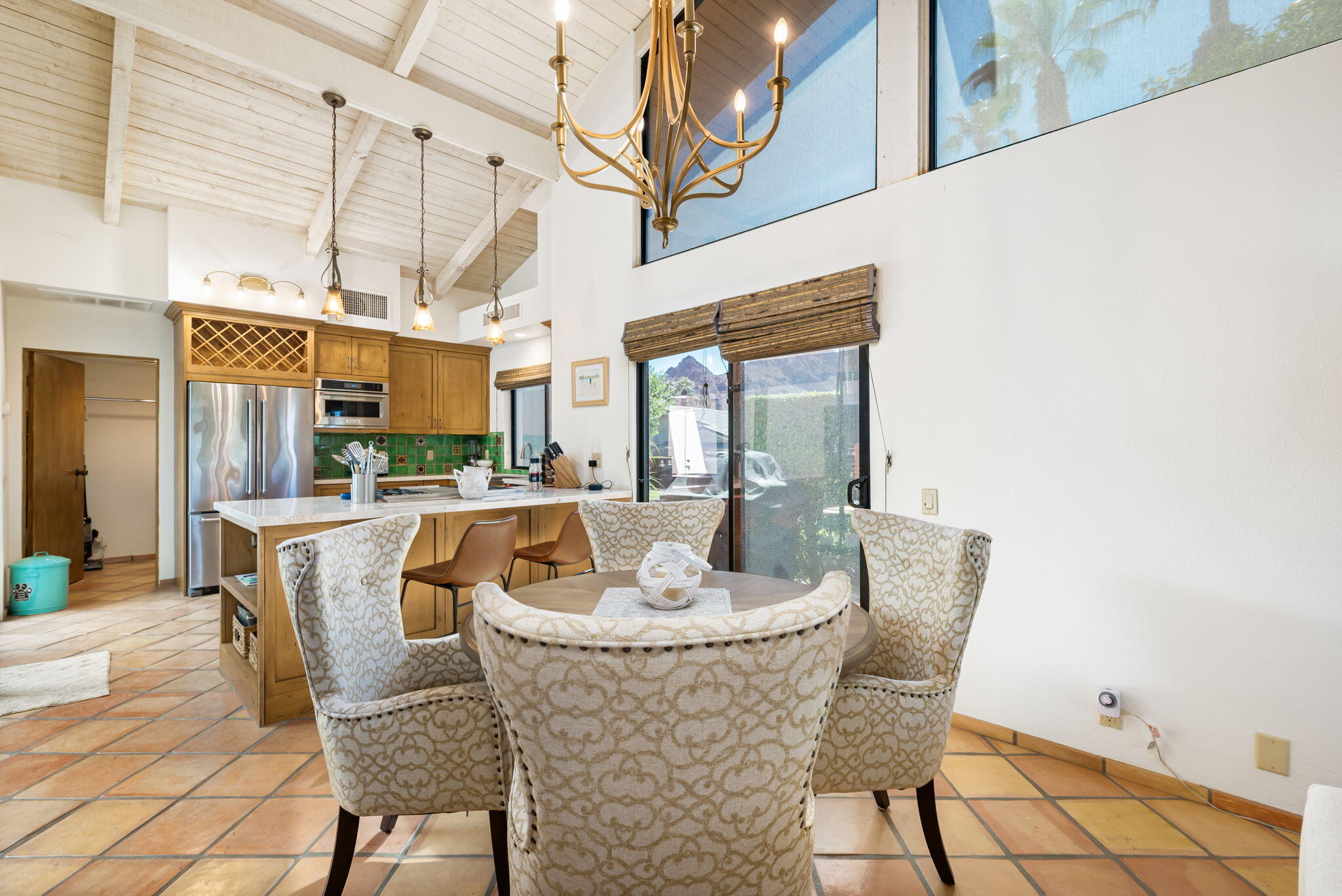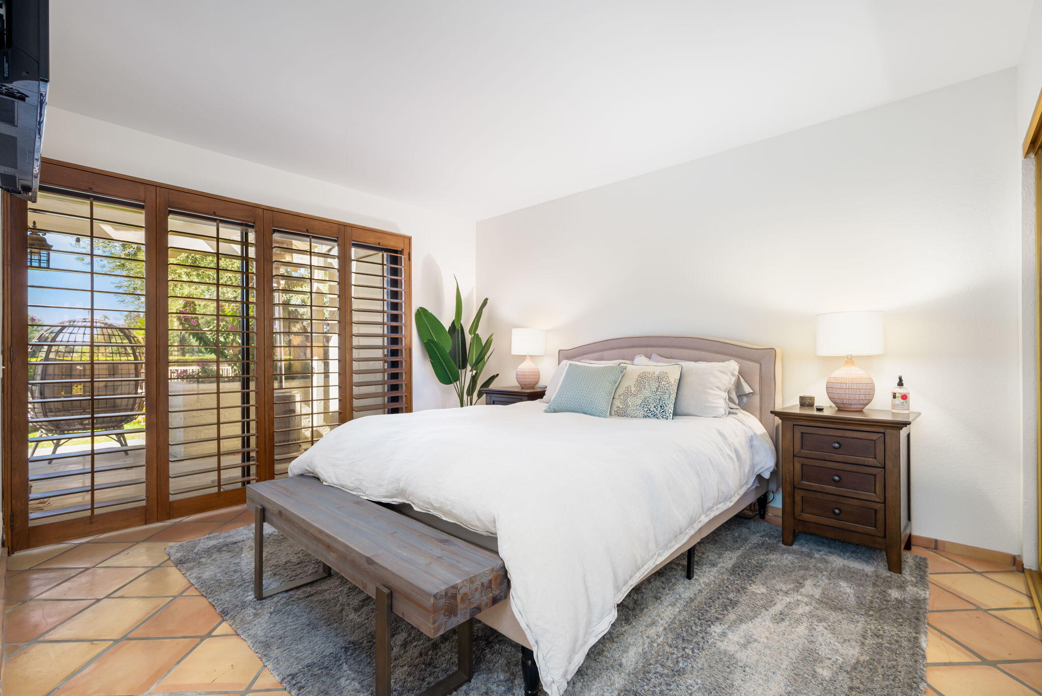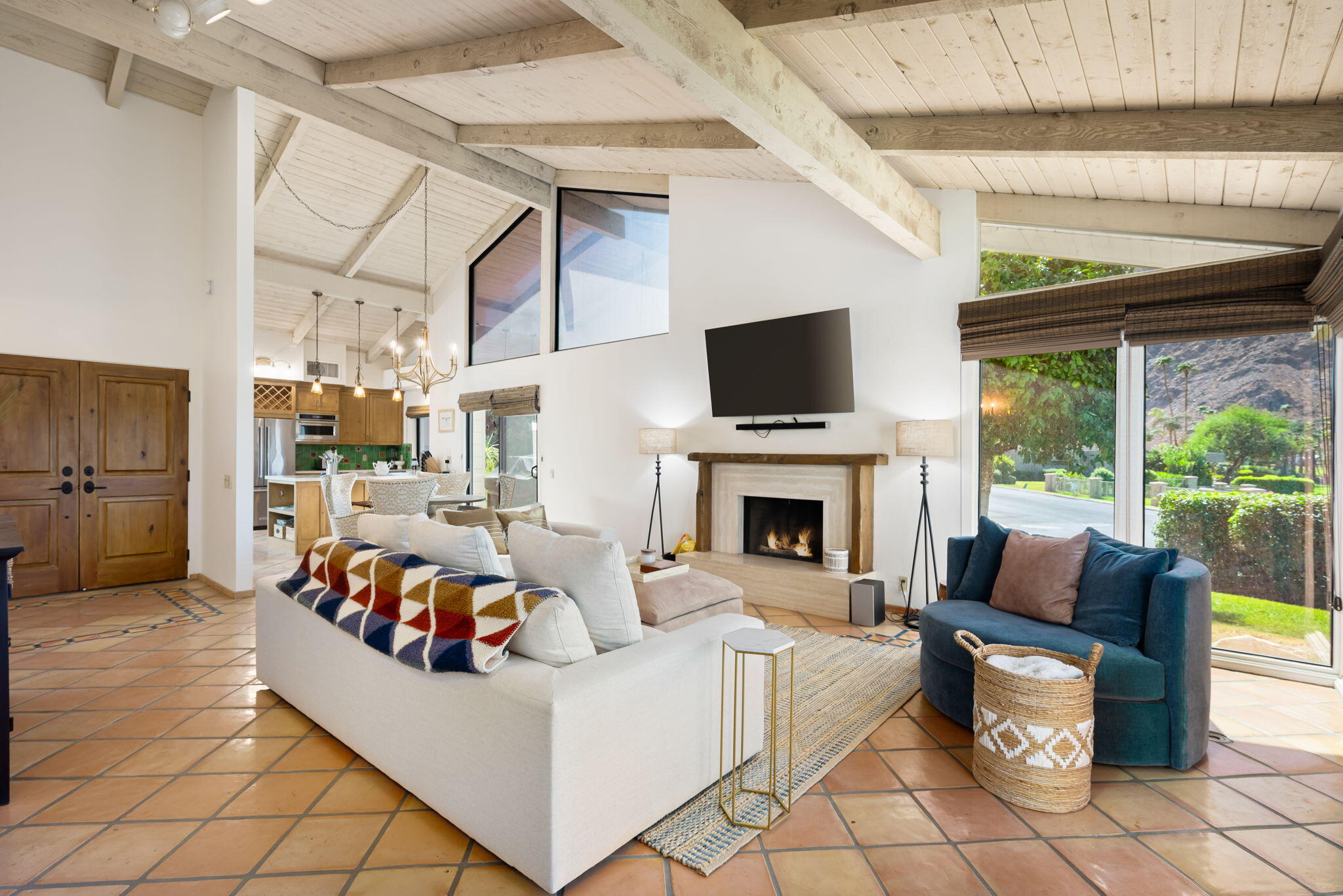 Available for November 2025 through January 2026. Welcome to this charming 3-bedroom, 3-bath home nestled in Mountain Cove of Indian Wells where the Mountains provide a stunning backdrop. As you enter through the private courtyard patio, you'll immediately feel the warmth and charm. The interior features wood beam ceilings and a wall of windows looking out to the views offering loads of natural light. The Saltillo tile flooring adds a touch of rustic elegance complemented by a cozy wood-burning fireplace, a flat-screen TV & blinds for added privacy. The Chef's Kitchen is a culinary delight with Quartz Counters, equipped with Stainless Steel Appliances including a Wolf Gas Stove. Sliders from the Kitchen out to the Patio where you have a Gas BBQ. The Primary bedroom features a king-sized bed, plantation shutters, TV and an en-suite bathroom with a glass-enclosed tiled shower, dual vanities, and a generous walk-in closet. The 2nd Guest room includes a Queen bed with its own en-suite bath ~ a private retreat for visitors. The versatile 3rd Guest room/office boasts a Queen pullout sofa, a desk, Wet bar with an Ice maker, and en-suite bath, making it perfect for guests or as a home office.A two-car garage complete the home. Step out to your private patio and enjoy al fresco dining while taking in breathtaking sunsets. Enjoy the community pool just steps from your back patio. Minutes to BNP Paribas Tennis Open, Indian Wells Golf Resort and El Paseo for Shopping and Dining options.Interested in this Listing?