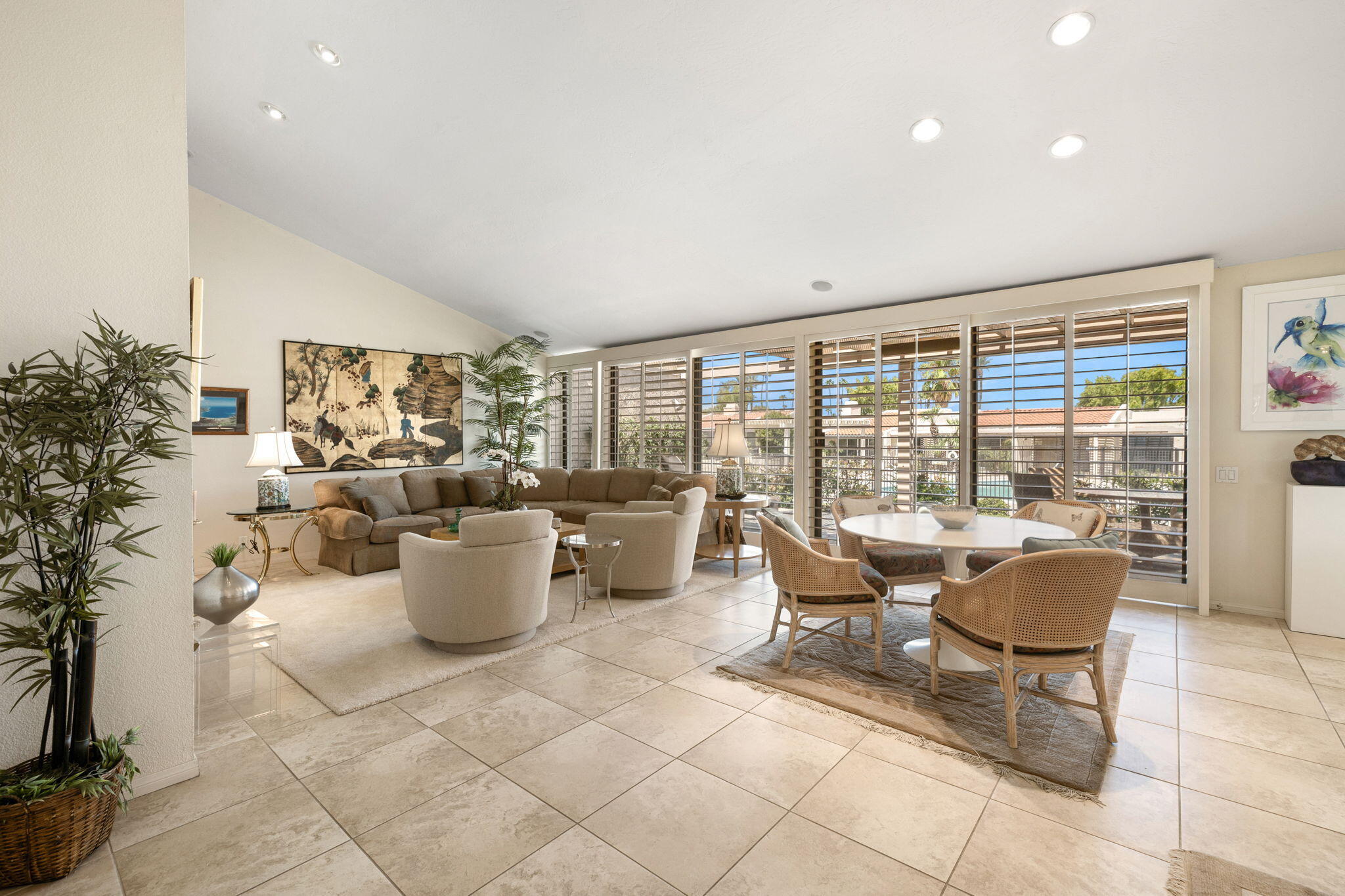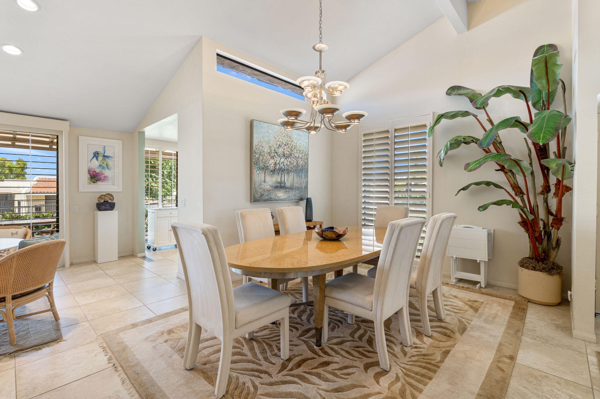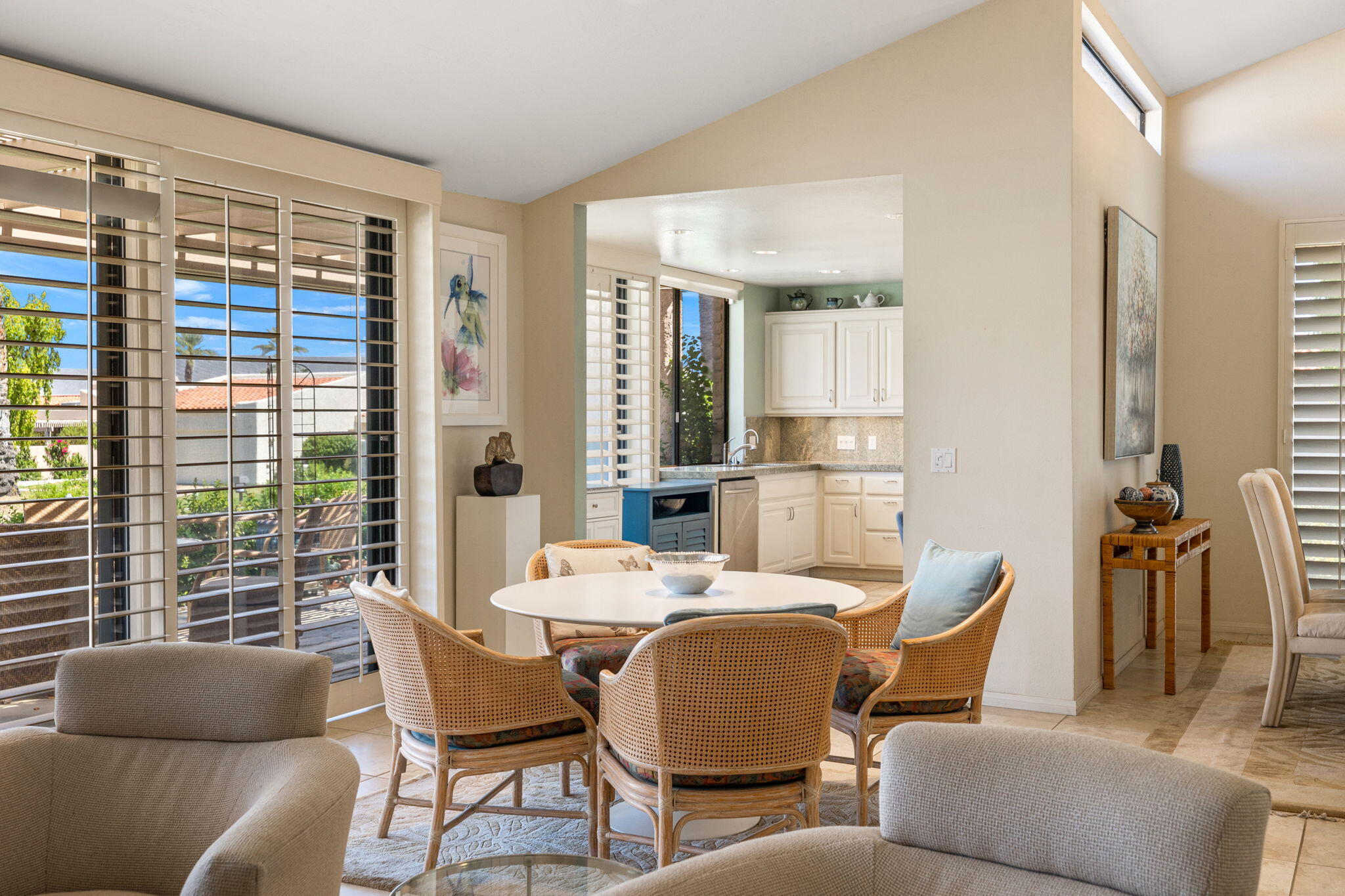 The Indian Wells Lifestyle awaits. The serene gated community of Dorado Villas has 9 pools & spas, and 10 tennis courts - one of which converts into a pickleball court. The home's corner location is ideal and offers close proximity to one of the pool areas. Vaulted ceilings, tile floors, and wide blade shutters create a lovely ambiance in the Eldorado Plan. Tastefully updated throughout, featuring a kitchen which opens to the living and dining areas, large master suite with office area, two en-suite guest bedrooms, and finished two-car garage. Enjoy warm afternoons on the hedged patio with elevated mountain views. This home is offered completely furnished. Offered as a 3-month minimum seasonal lease.Interested in this Listing?