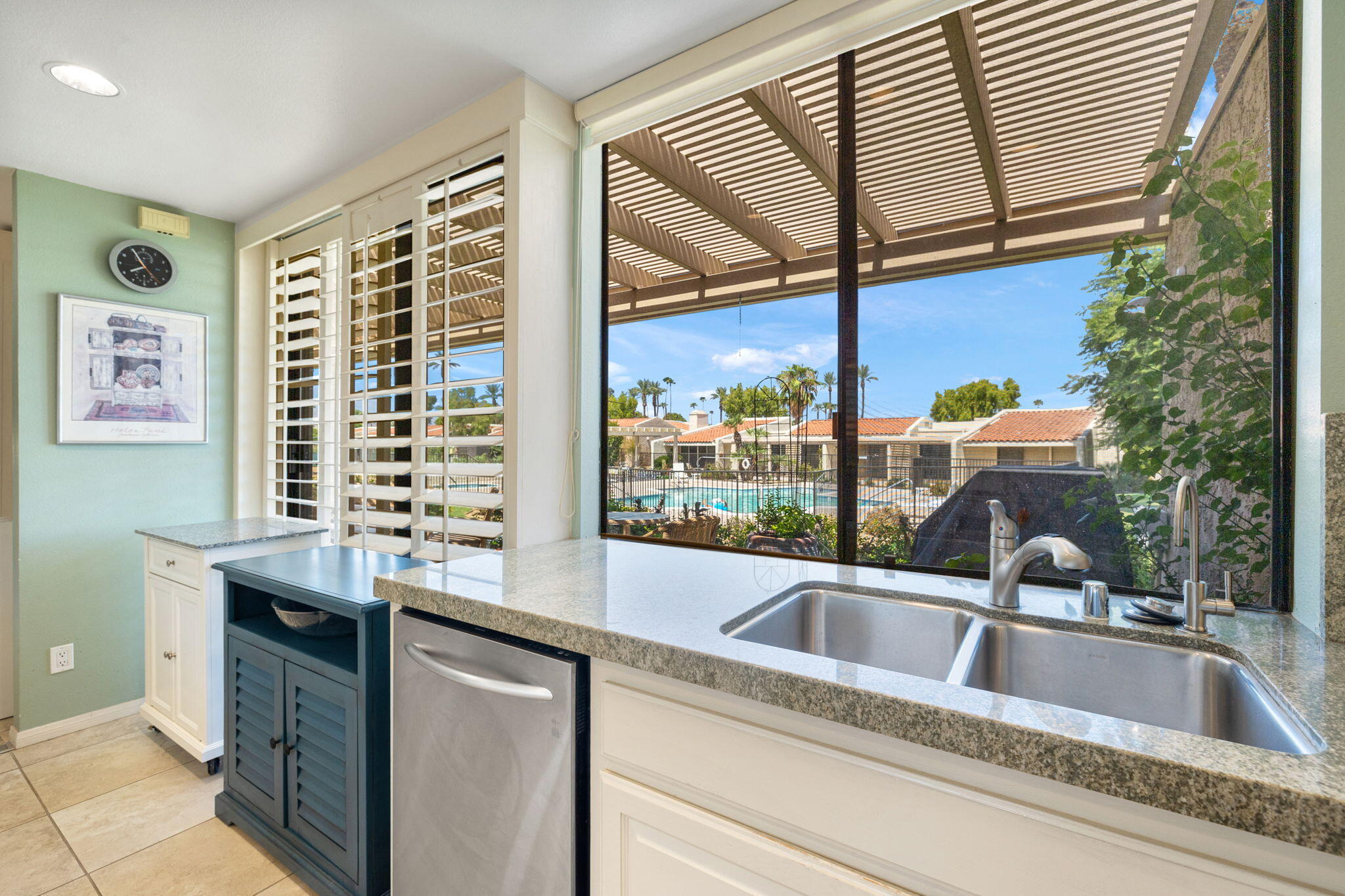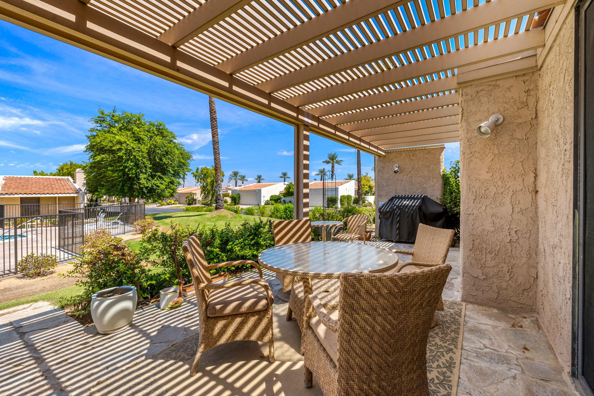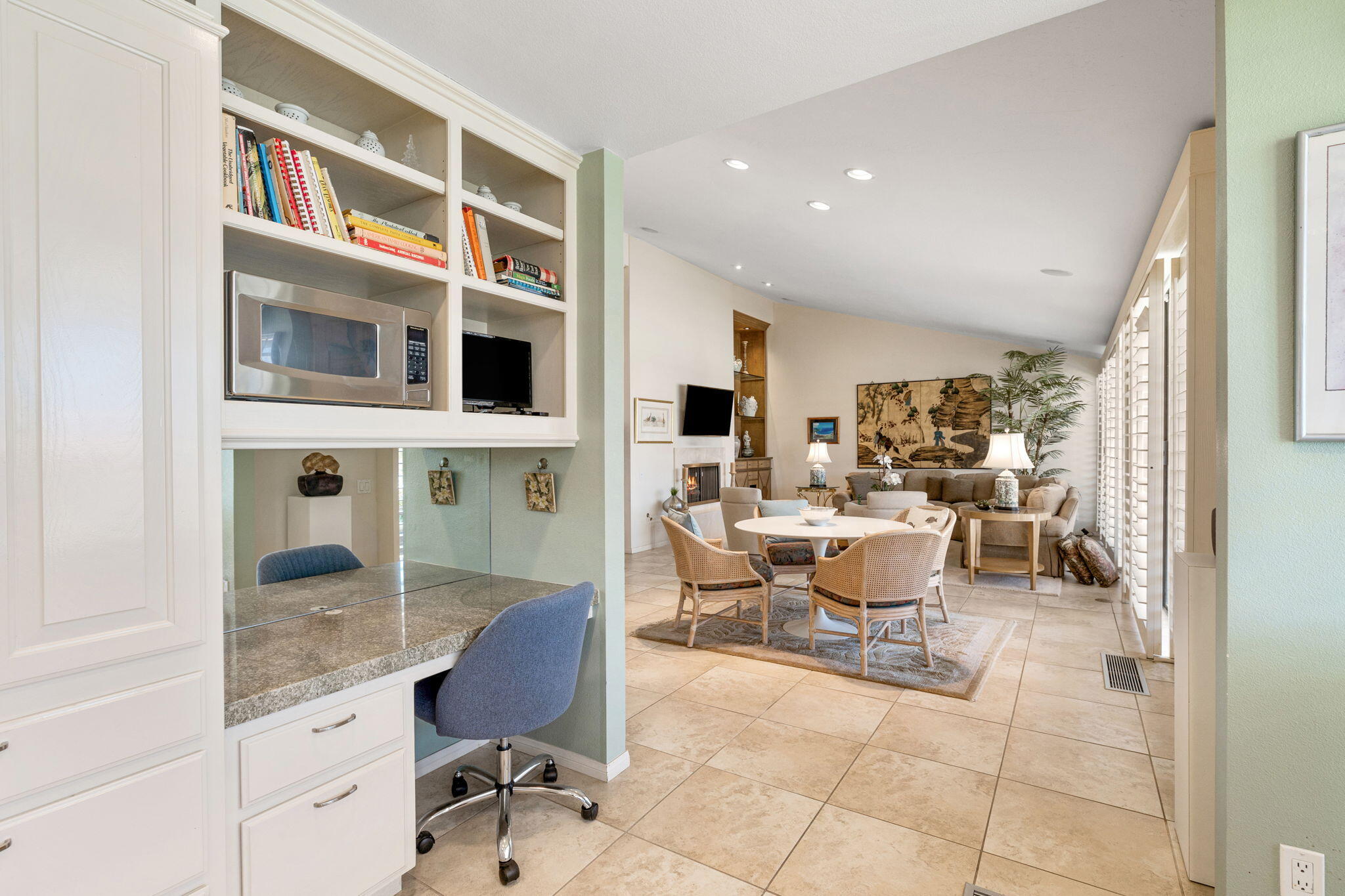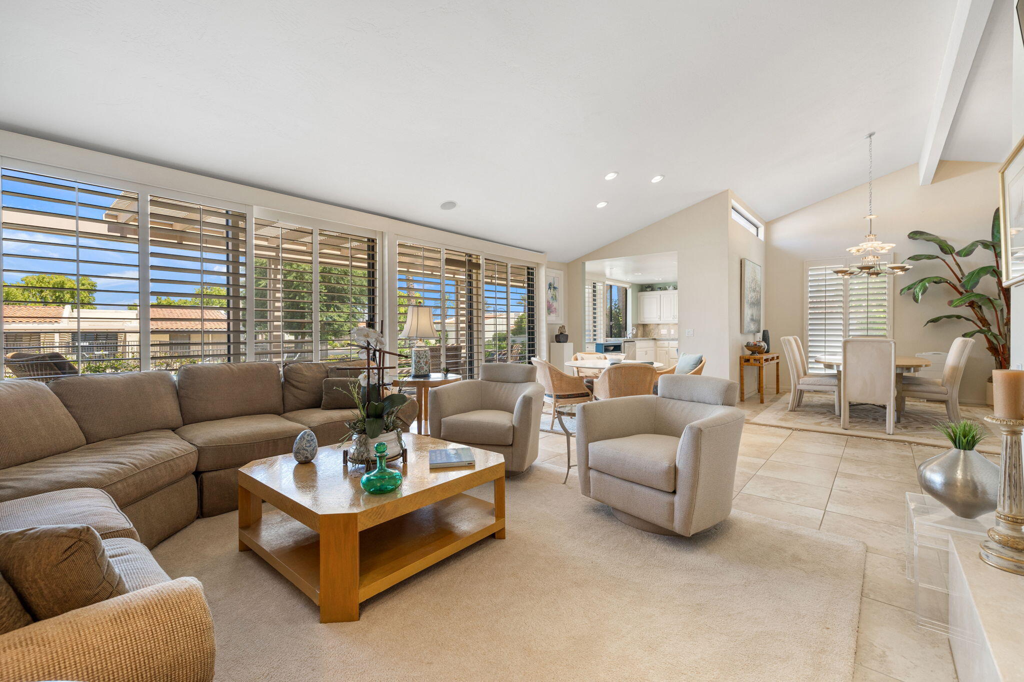 The Indian Wells Lifestyle awaits. The serene gated community of Dorado Villas has 9 pools & spas, and 10 tennis courts - one of which converts into a pickleball court. The home's corner location is ideal and offers close proximity to one of the pool areas. Vaulted ceilings, tile floors, and wide blade shutters create a lovely ambiance in the Eldorado Plan. Tastefully updated throughout, featuring a kitchen which opens to the living and dining areas, large master suite with office area, two en-suite guest bedrooms, and finished two-car garage. Enjoy warm afternoons on the hedged patio with elevated mountain views. This home is offered completely furnished. Offered as a 3-month minimum seasonal lease.Interested in this Listing?