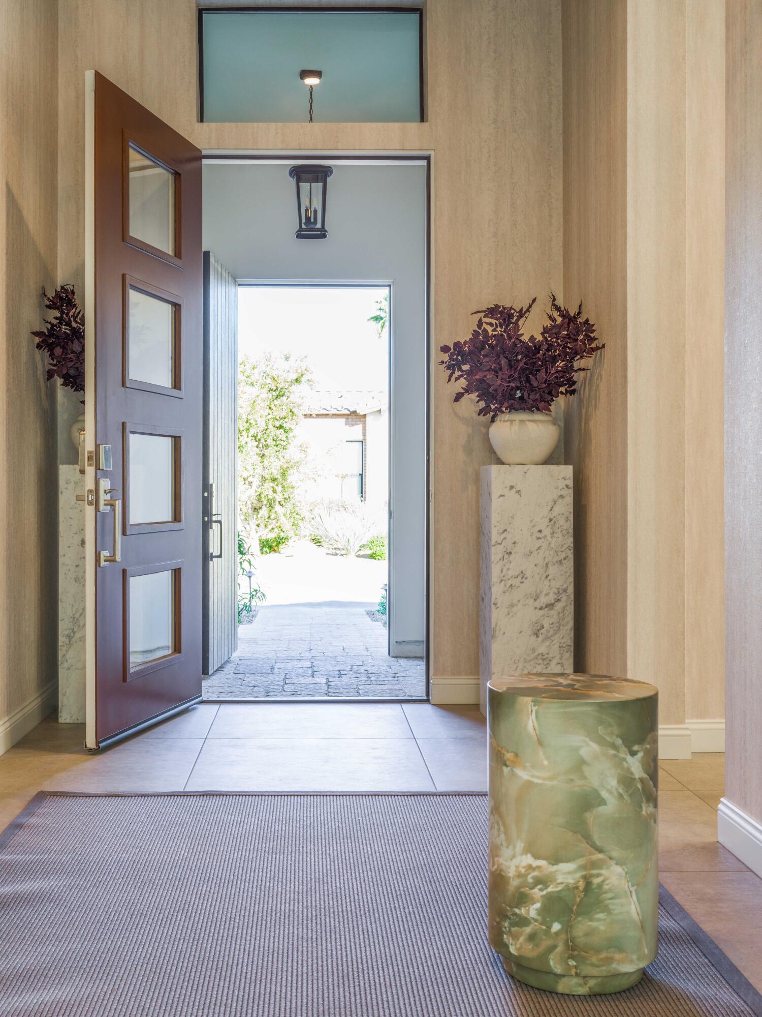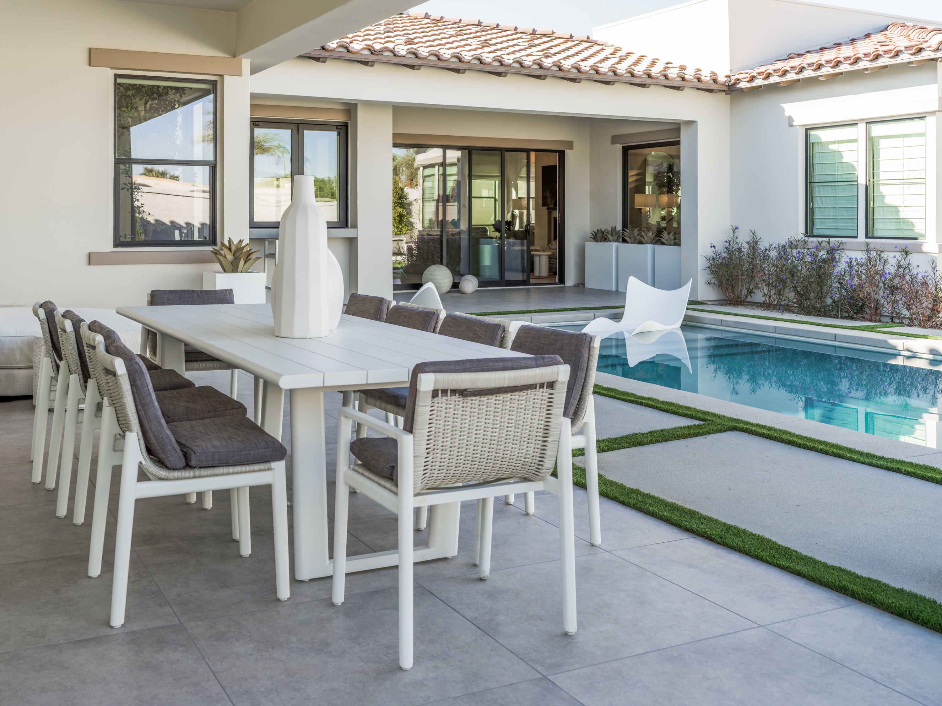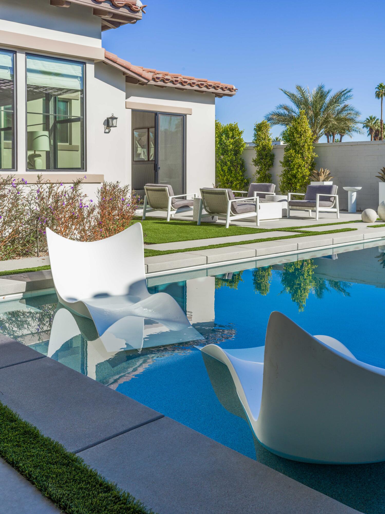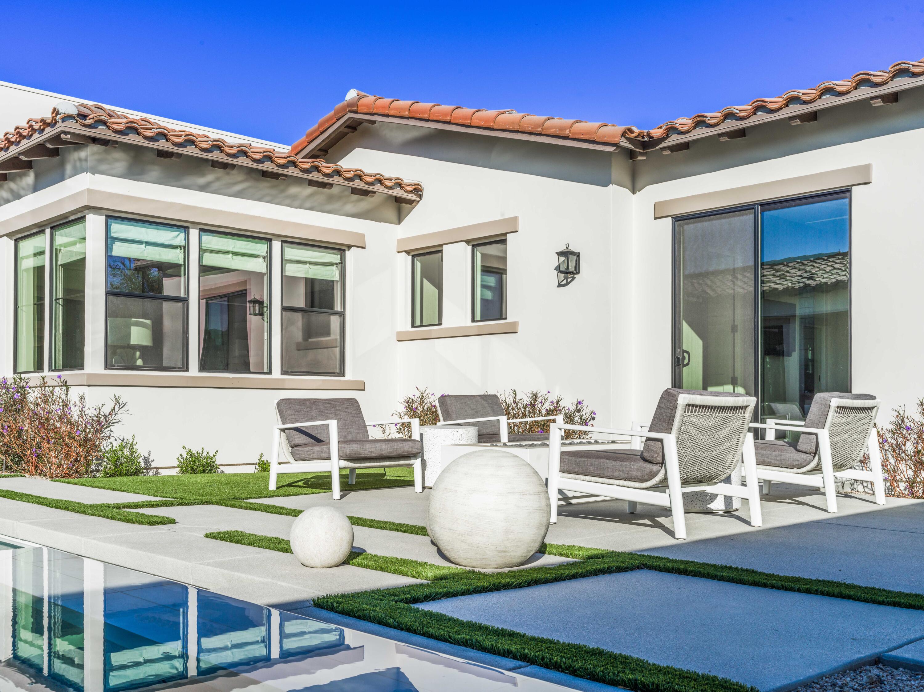 Discover your ultimate desert oasis, built in 2023 with luxurious design and impeccable attention to detail. This stunning home features soaring 12-ft ceilings and light-filled spaces throughout. The chef's gourmet kitchen is a dream, outfitted with Dacor appliances, a Sub-Zero refrigerator, two ovens, a six-burner stove, dishwasher, and a butler's pantry. Designer furnishings, including a custom dining table for 10, elevate the space further. The home offers indoor-outdoor living at its finest, with a large pocket door that seamlessly connects the spacious interior to the private backyard. Entertain effortlessly with a custom pool and spa, outdoor kitchen featuring a pizza oven, a fire pit, and alfresco dining for 10. The attached casita, complete with its own private entrance, makes for a perfect guest retreat. Additional highlights include a dedicated office, two spacious guest suites with en-suites, dual walk-in closets with built-ins in the primary suite, a private security system, and a two-car garage. Designer landscaping enhances the private setting, while the modern amenities like smart TVs throughout ensure convenience and style. A true masterpiece of desert living awaits!Interested in this Listing?