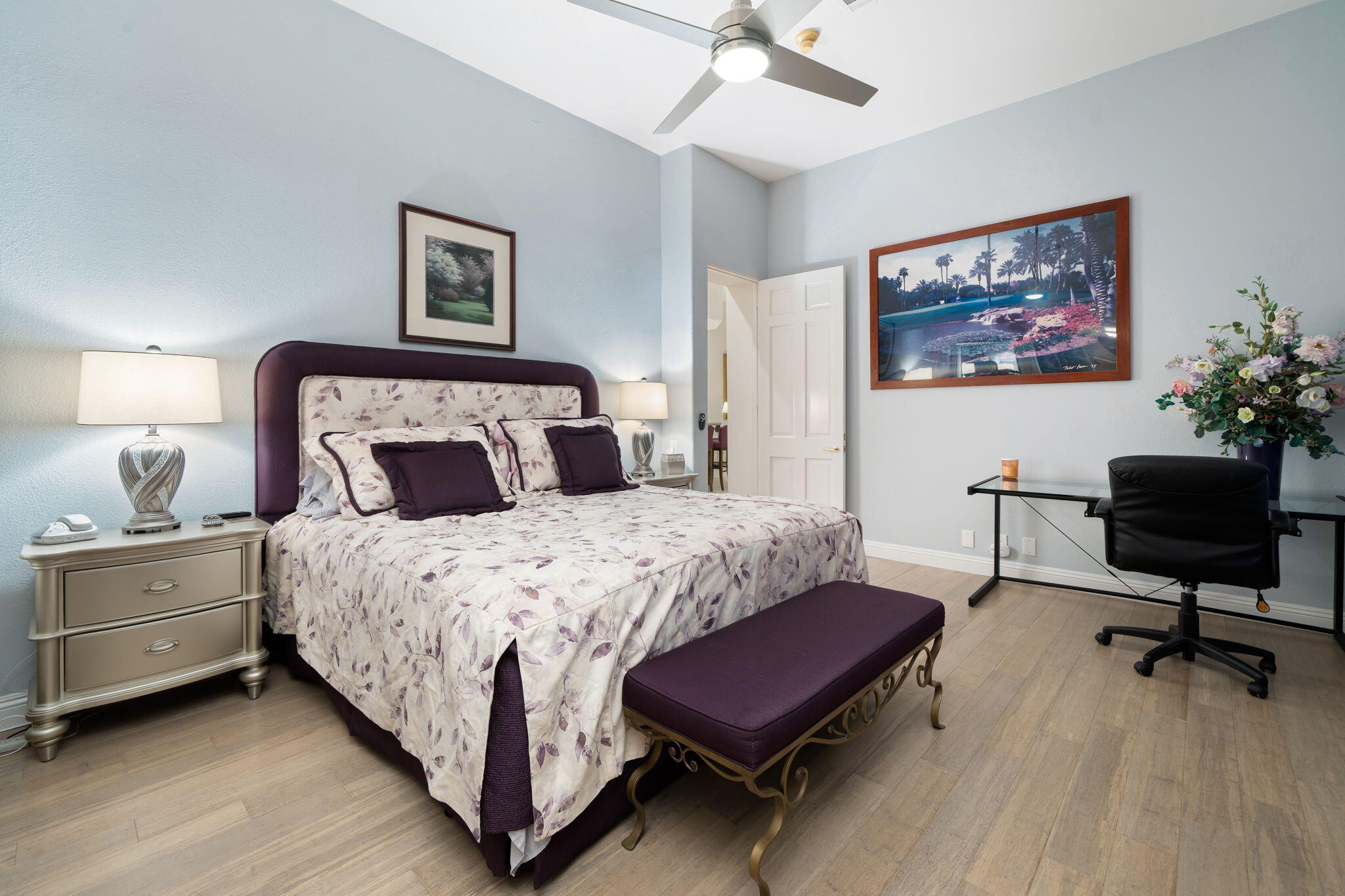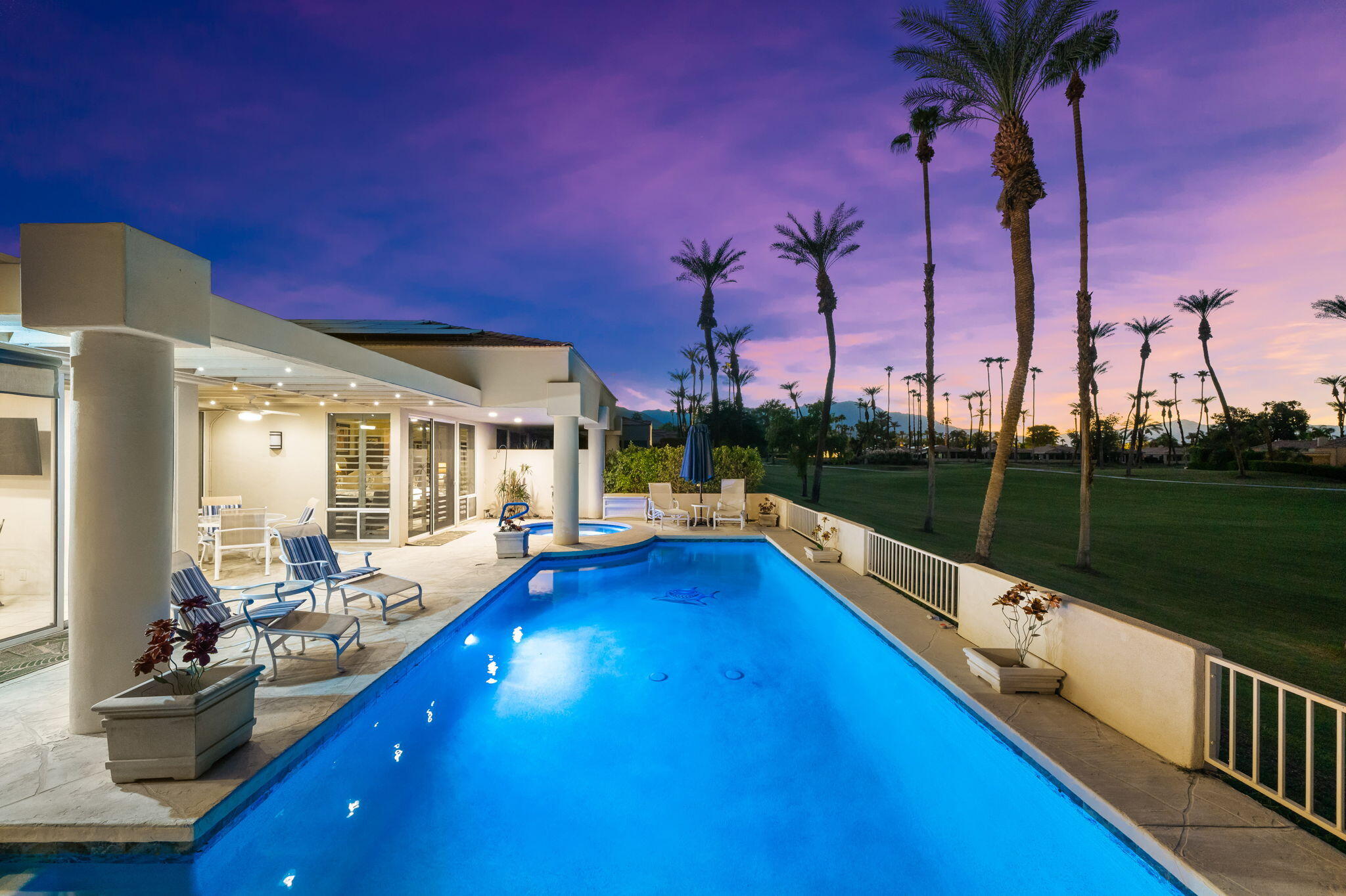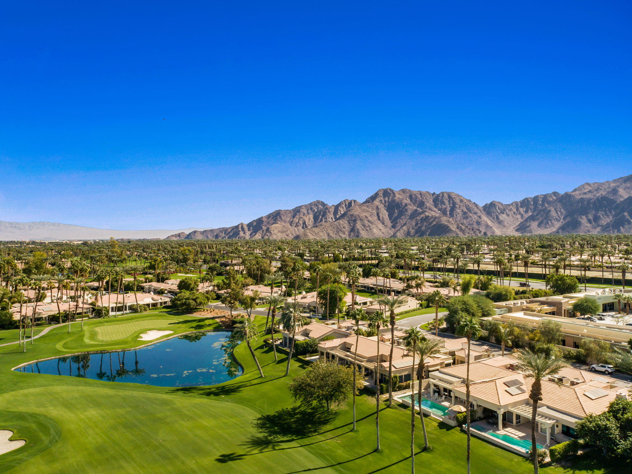 Leased Jan. - April 2025. Available Dec 2024. Gorgeous Fairway, Lake and Mountain Views are yours from this beautifully maintained Desert Horizons Pool home. As you enter the gated courtyard you are welcomed into this ever popular Troon floor plan offering 2 Master Suites and a Home Office. An open floor plan perfect for entertaining and lots of natural light from the walls of windows that overlook the Pool and Fairway. Features; Tile and Wood flooring throughout the home, ceiling fans in each room and plantation shutters. Living room has a cozy fireplace, Family Room has a Flat Screen TV with an adjacent Wet Bar with stools and a bar refrigerator. Dining area for 6. The Chef's Kitchen has rich wood Cabinetry, updated Appliances, harmonizing granite countertops, a wine cooler and a Breakfast Nook with a flat screen TV. Spacious Master Suite with spa-style bath, dual vanities, King bed with TV and a generously sized custom walk-in closet. 2nd Guest Master Suite features a King bed with TV and has its own private patio, en-suite bath and walk-in closet. The Home Office offers a custom built-in Desk and cabinets with views out to the Courtyard. An additional 3/4 bath, spacious laundry room and a 3 car garage complete the home. What a better way to entertain on your back Patio enjoying the beautiful sunsets and your own private sparking Pool and Spa, awnings and BBQ or watch the golfers go by on the beautiful #17 Fairway at this premiere Indian Wells location.Interested in this Listing?