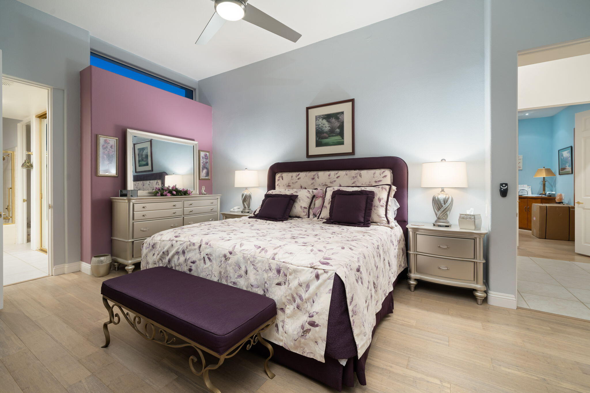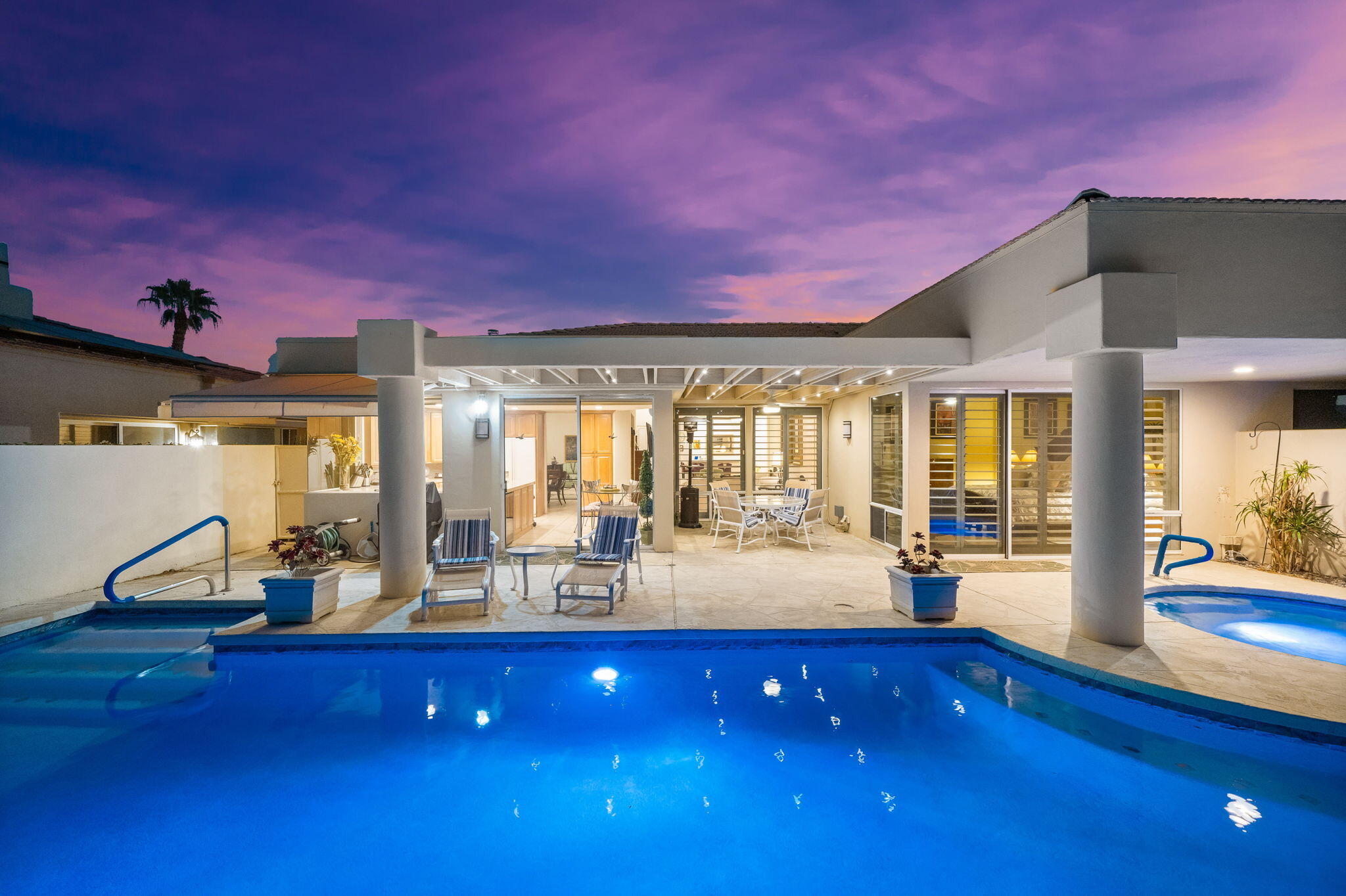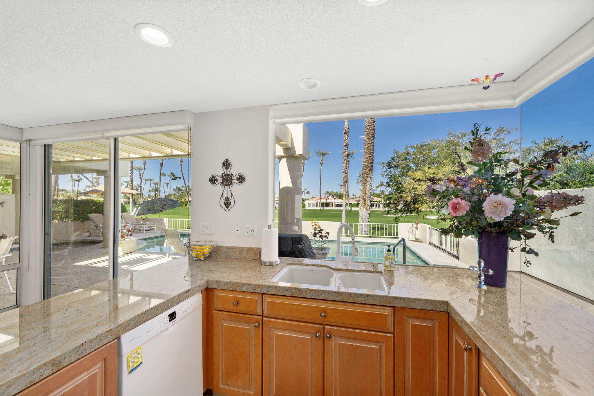 Leased Jan. - April 2025. Available Dec 2024. Gorgeous Fairway, Lake and Mountain Views are yours from this beautifully maintained Desert Horizons Pool home. As you enter the gated courtyard you are welcomed into this ever popular Troon floor plan offering 2 Master Suites and a Home Office. An open floor plan perfect for entertaining and lots of natural light from the walls of windows that overlook the Pool and Fairway. Features; Tile and Wood flooring throughout the home, ceiling fans in each room and plantation shutters. Living room has a cozy fireplace, Family Room has a Flat Screen TV with an adjacent Wet Bar with stools and a bar refrigerator. Dining area for 6. The Chef's Kitchen has rich wood Cabinetry, updated Appliances, harmonizing granite countertops, a wine cooler and a Breakfast Nook with a flat screen TV. Spacious Master Suite with spa-style bath, dual vanities, King bed with TV and a generously sized custom walk-in closet. 2nd Guest Master Suite features a King bed with TV and has its own private patio, en-suite bath and walk-in closet. The Home Office offers a custom built-in Desk and cabinets with views out to the Courtyard. An additional 3/4 bath, spacious laundry room and a 3 car garage complete the home. What a better way to entertain on your back Patio enjoying the beautiful sunsets and your own private sparking Pool and Spa, awnings and BBQ or watch the golfers go by on the beautiful #17 Fairway at this premiere Indian Wells location.Interested in this Listing?