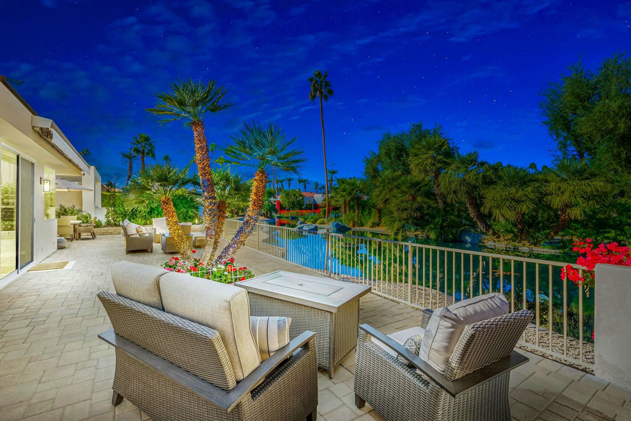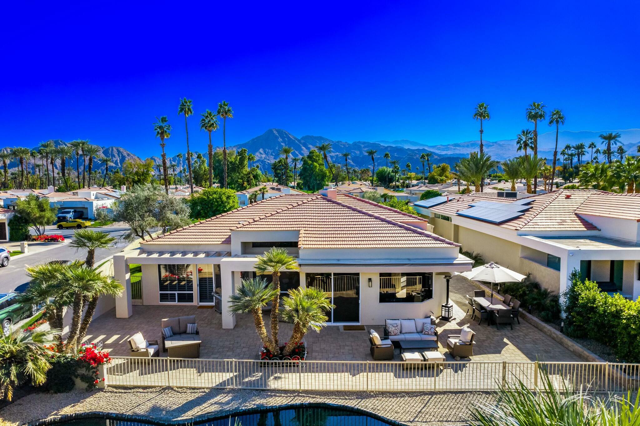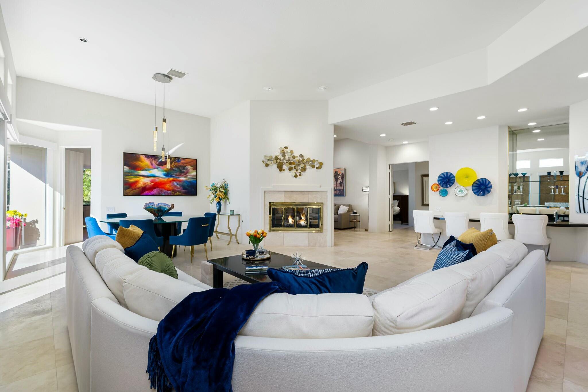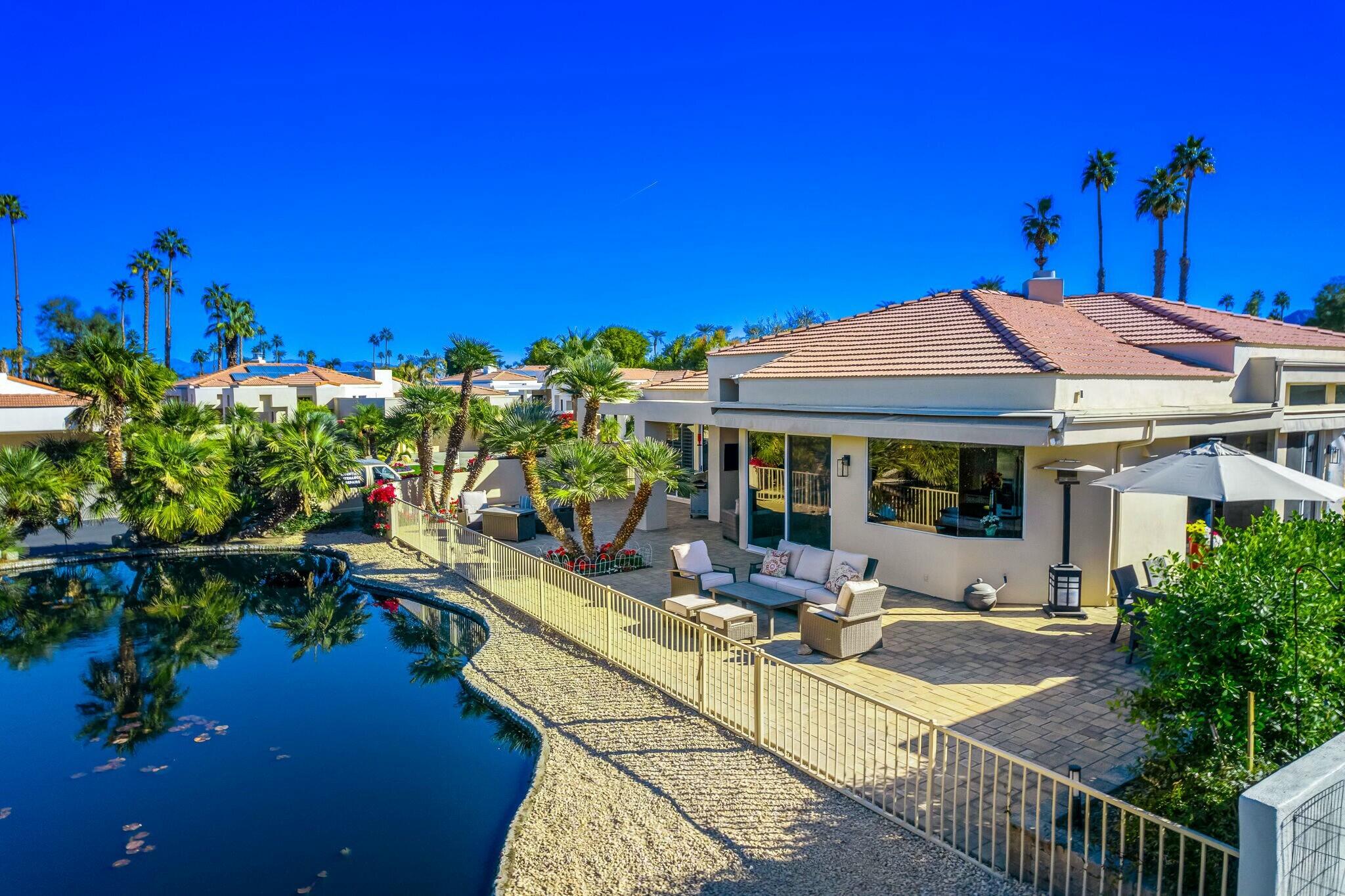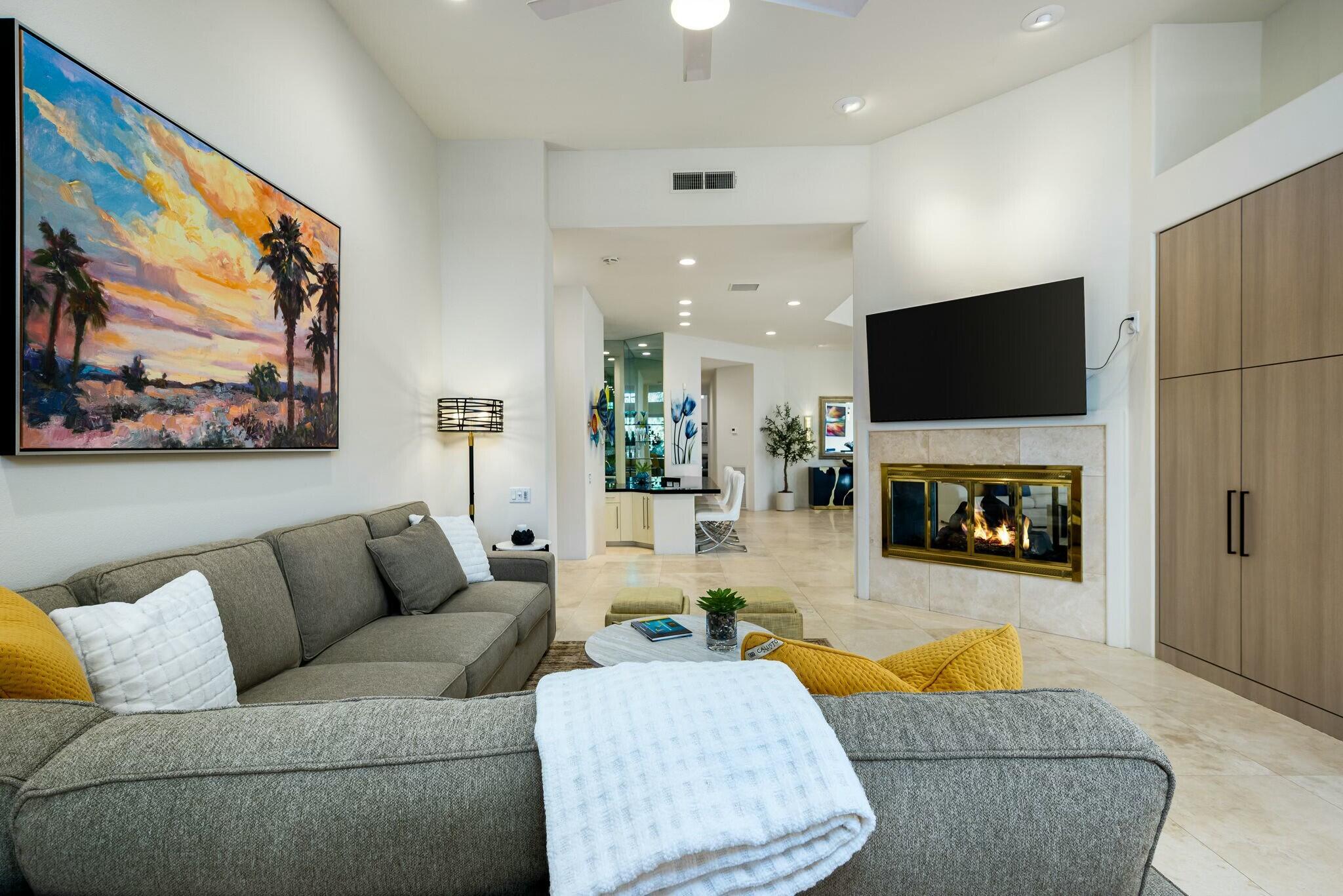 Lease Available for $4500 per month June til October. LEASED Nov- May 2026 This lovely Furnished 3 Bedroom Home is situated in a cul-de-sac within the prestigious community of Desert Horizons Country Club. With only one neighboring home, the peaceful surroundings enhance the allure of this property. Upon entering, you are greeted by a private pavered Courtyard and a beautiful landscaped yard. This custom Doral floor plan has an Open-concept layout, enhanced by a striking double-sided fireplace, which is a focal point for both the Living Room and Family Room. The Family Room offers a large Flat Screen TV and Sofa. For those who work from home, the Office features custom built-in cabinets and a slider that leads out to a 3rd Patio area and large side yard. The Primary Suite boasts a King Bed, spa-style bath with dual vanities and a spacious walk-in closet. The comfortable 2nd Bedroom offers a Queen Bed with an en-suite bath and the versatile 3rd bedroom which serves as a Den has a Flat Screen TV, enhancing the home's functionality. Step outside to the patio with TV, where you will enjoy stunning evening sunsets overlooking the serene pond view, all while listening to the soothing sounds of a waterfall. In addition, there is an impressive 1500 sq ft of enclosed landscaped yard. Completing this exceptional home is a 2-car Garage w/ Golf Cart Garage. Community Pool & Spa are just steps away. Cleaning Service included every 2 weeks. Golf Cart Available with proof of insurance.Interested in this Listing?